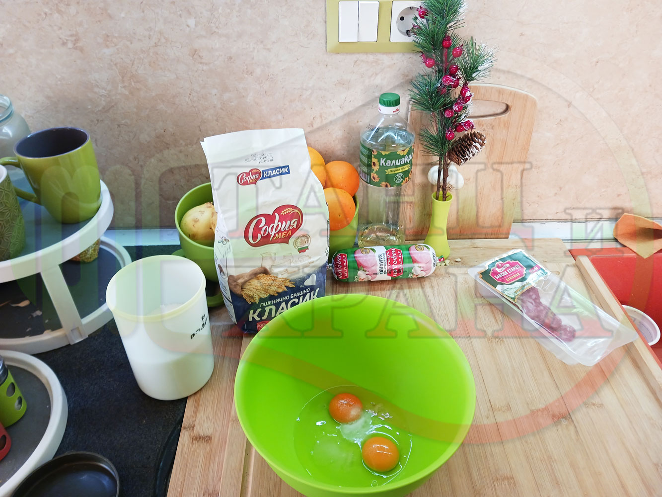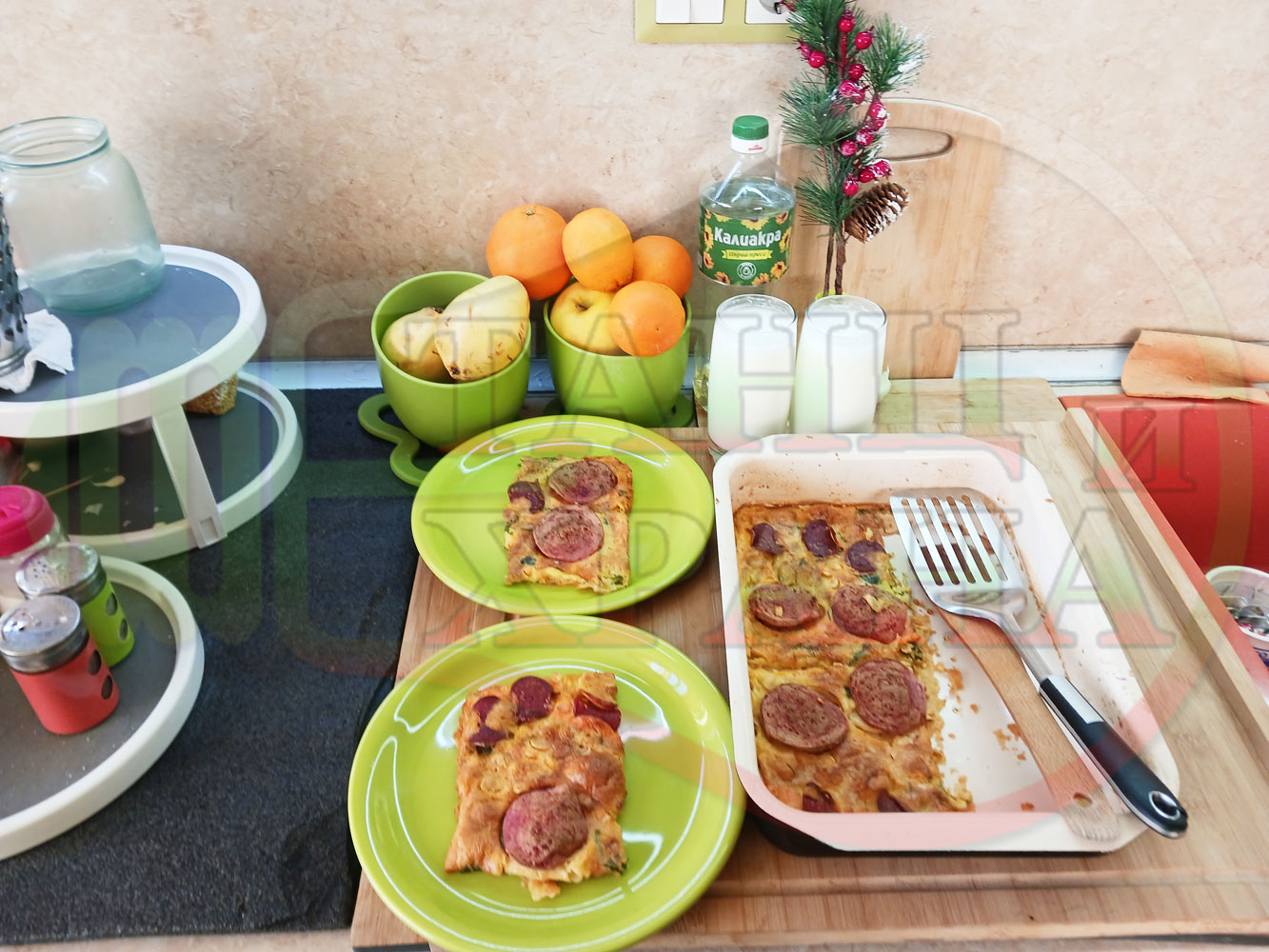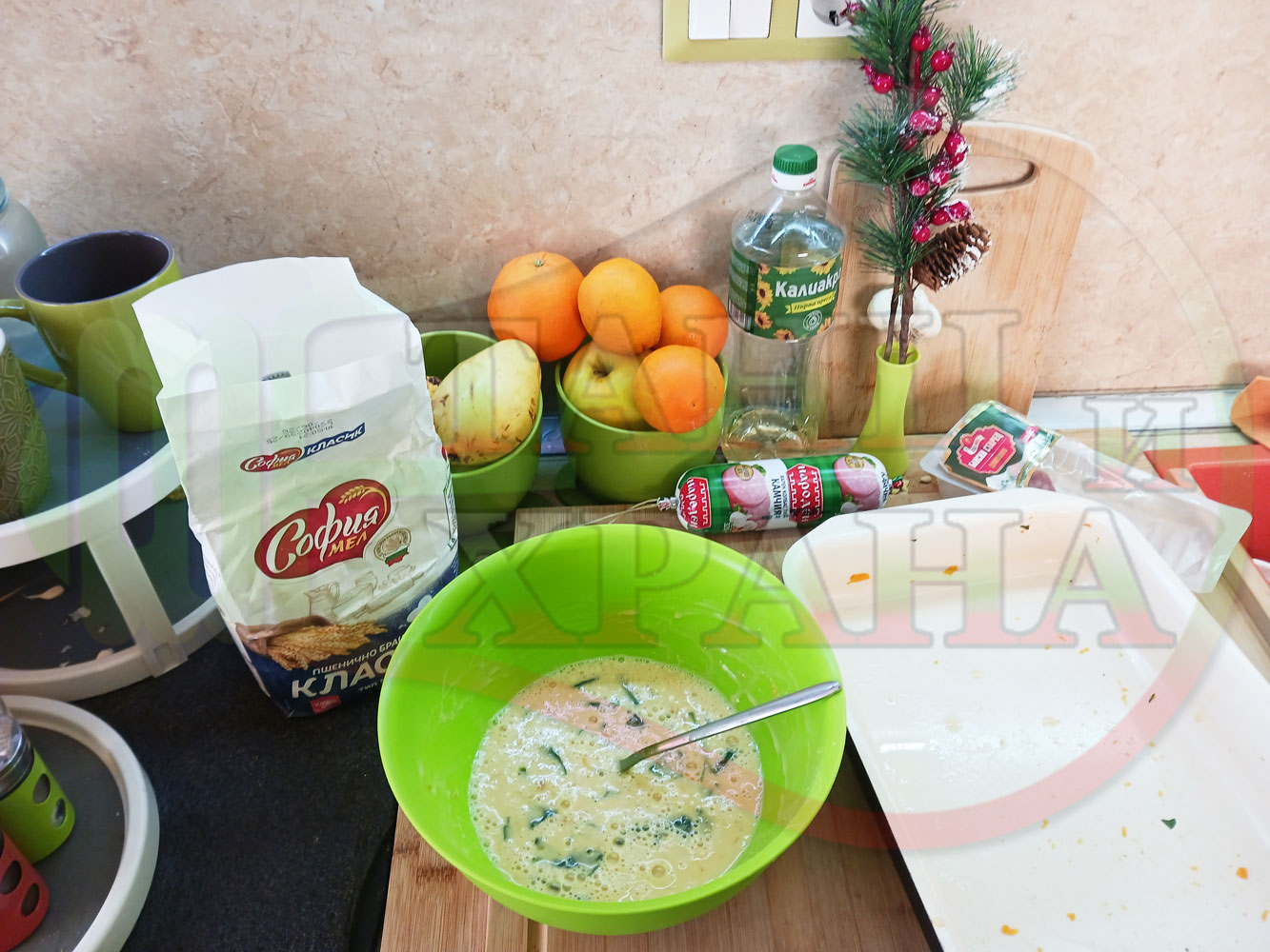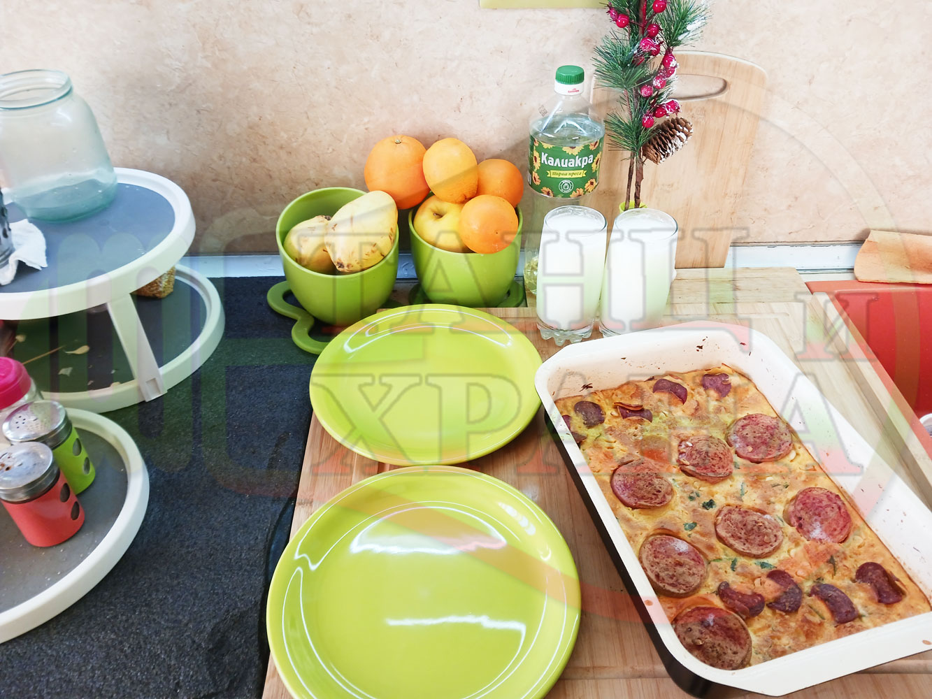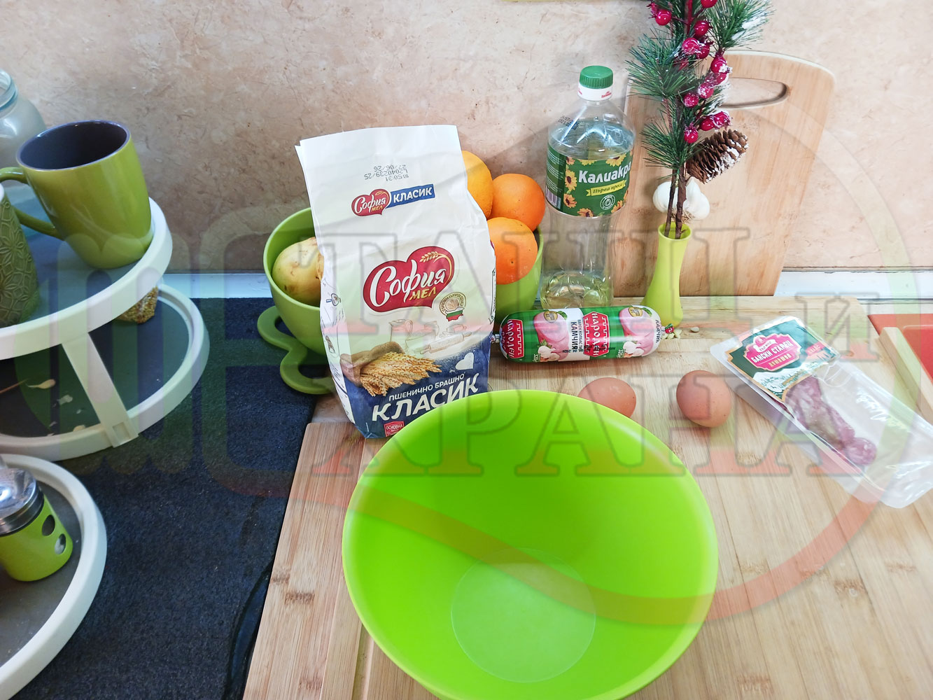 След коледните и новогодишни гозби все се чудим как да оползотворим останалата ни храна... laughing Замесих бухтена пита с останал сос от сварената на фурна българска тиквена яхния "Кренвиршова тиквеноспаначена". Добавих тиквения сос към разбитите със захар и сол яйца и прибавих 5 супени лъжици брашно за бухтеното тесто. Гарнирах питата с останала от празниците луканка и любимият ни салам "Камчия"...   Ммммм, отново спретнах невероятна вкусно, вкусна, вкусотия (вкуснотия) за закуска с изключително малко продукти. laughing