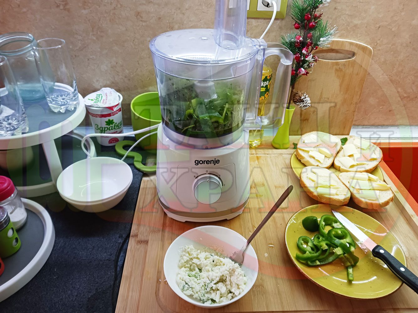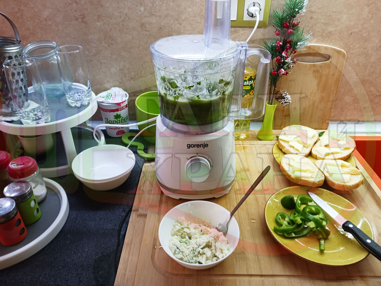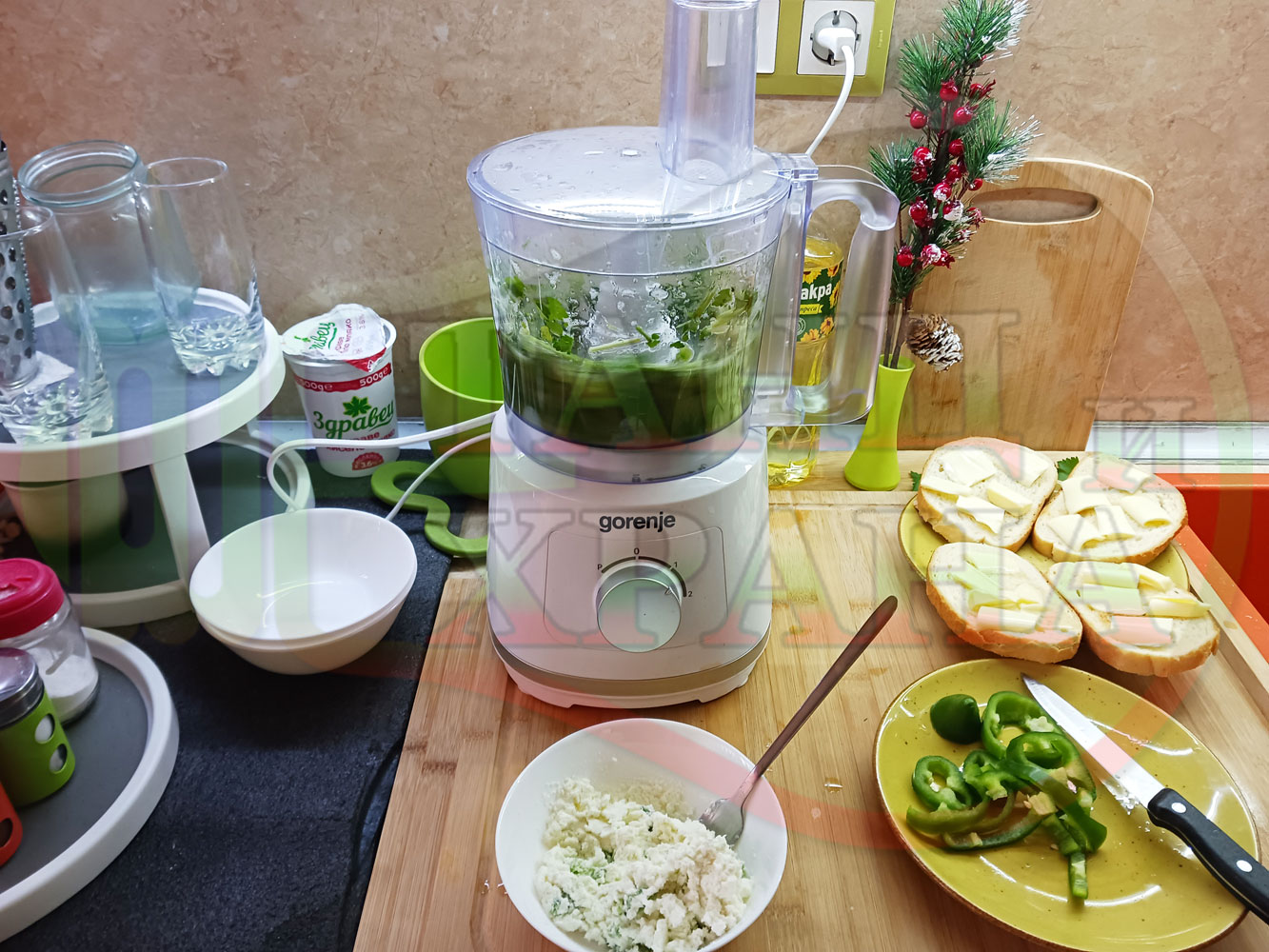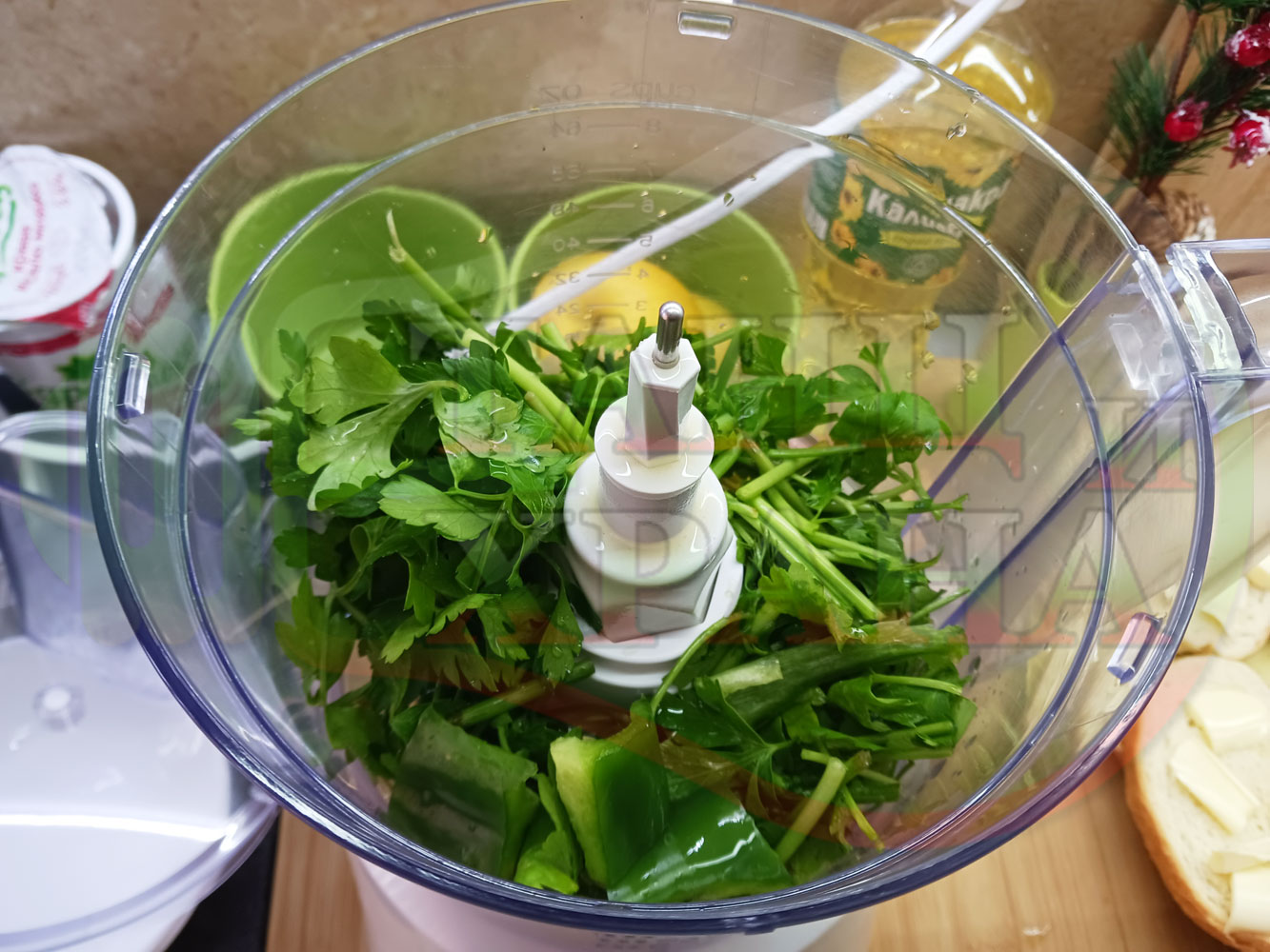 ПРОДУКТИ: Приблизителни количества за българска магданозена сурова супа "Зеленочушкова зеленочайна с БГсирене" приготвена със свеж магданоз, зелени пресни чушки и зелен чай гарнирана с топчета от сиреново зеленочушков крем с краве бяло сирене (българско, саламурено) - двукомпонентна
