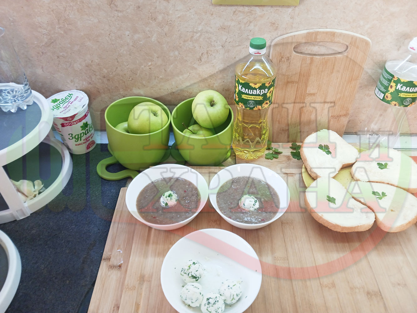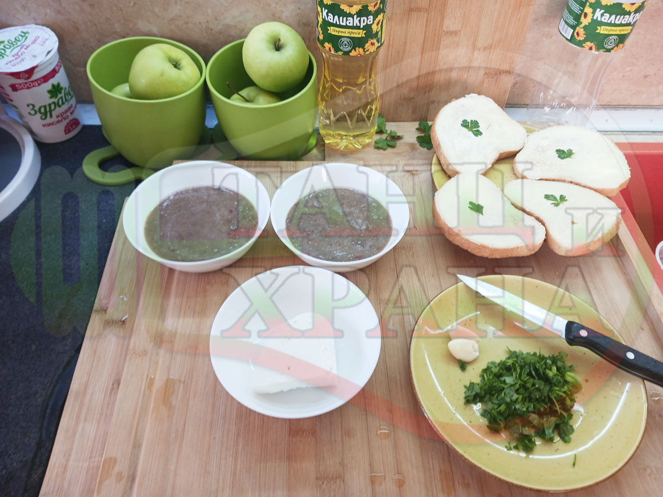 ПРИГОТВЯНЕ НА СИРЕНОВИЯ МАГДАНОЗЕНО ЧЕСНОВ КРЕМ (ВАРИРАЩ КОМПОНЕНТ ЗА 2 ПОРЦИИ)