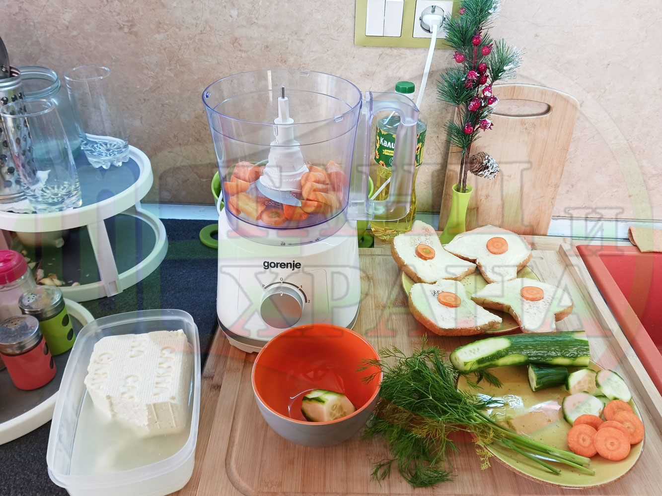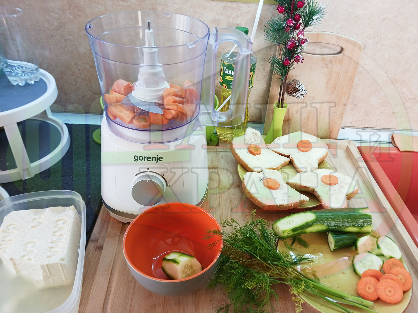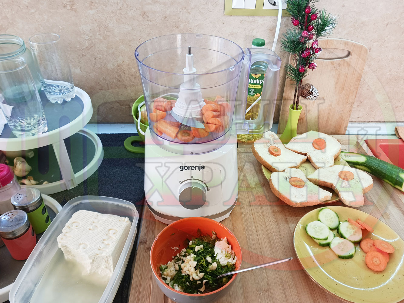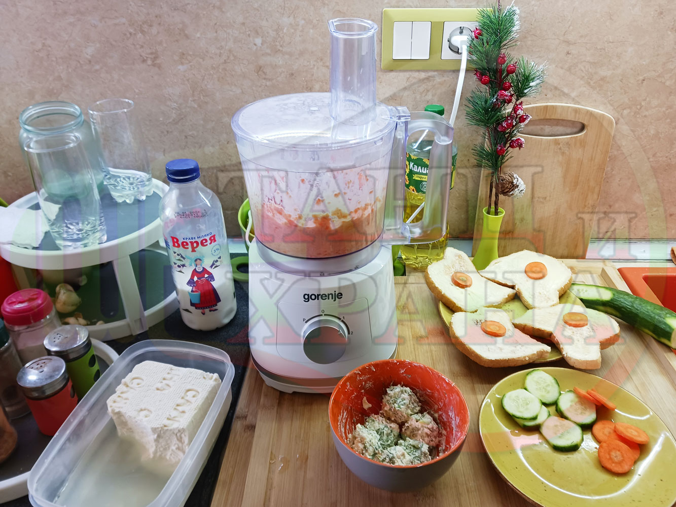 ПРОДУКТИ: Приблизителни количества за българска сурова гъста супа "Морковена прясномлечна краставичнокопърова с БГсирене" приготвена от моркови и прясно мляко гарнирана с топчета от сиренов крем с копър, краставици, чесън и краве бяло сирене (българско, саламурено) - двукомпонентна