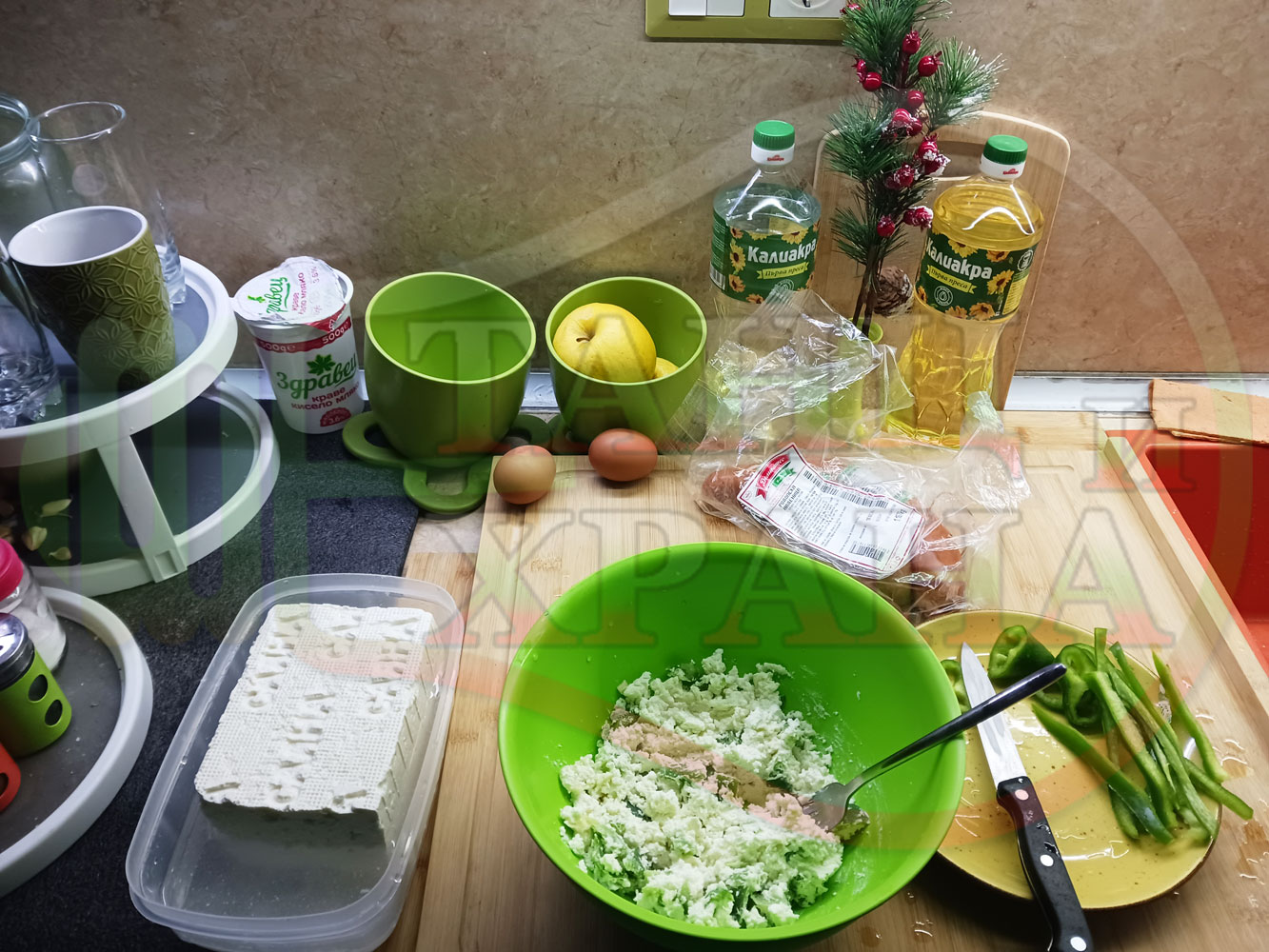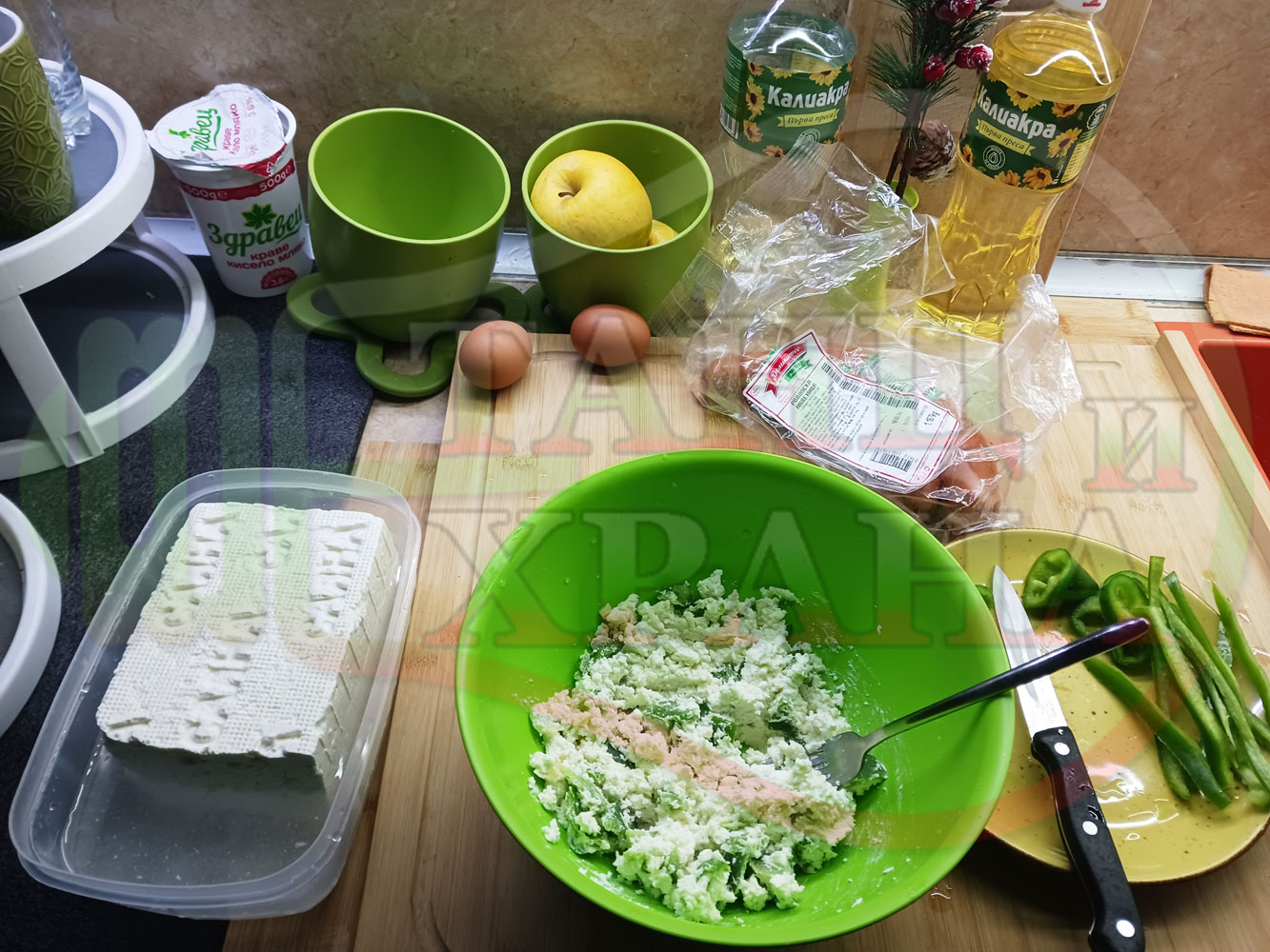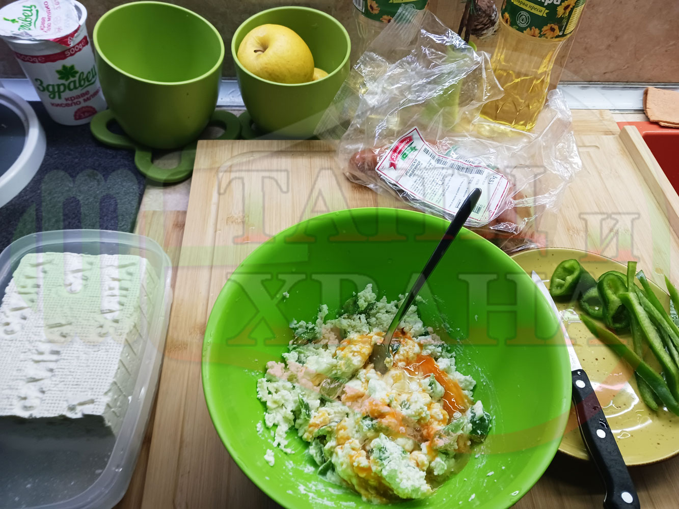 ПРИГОТВЯНЕ НА ЯЙЧЕНО СИРЕНОВАТА ЗЕЛЕНОЧУШКОВА ОСНОВА