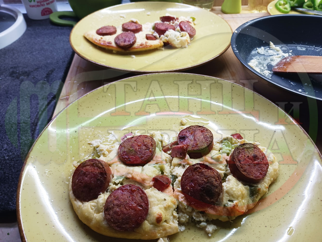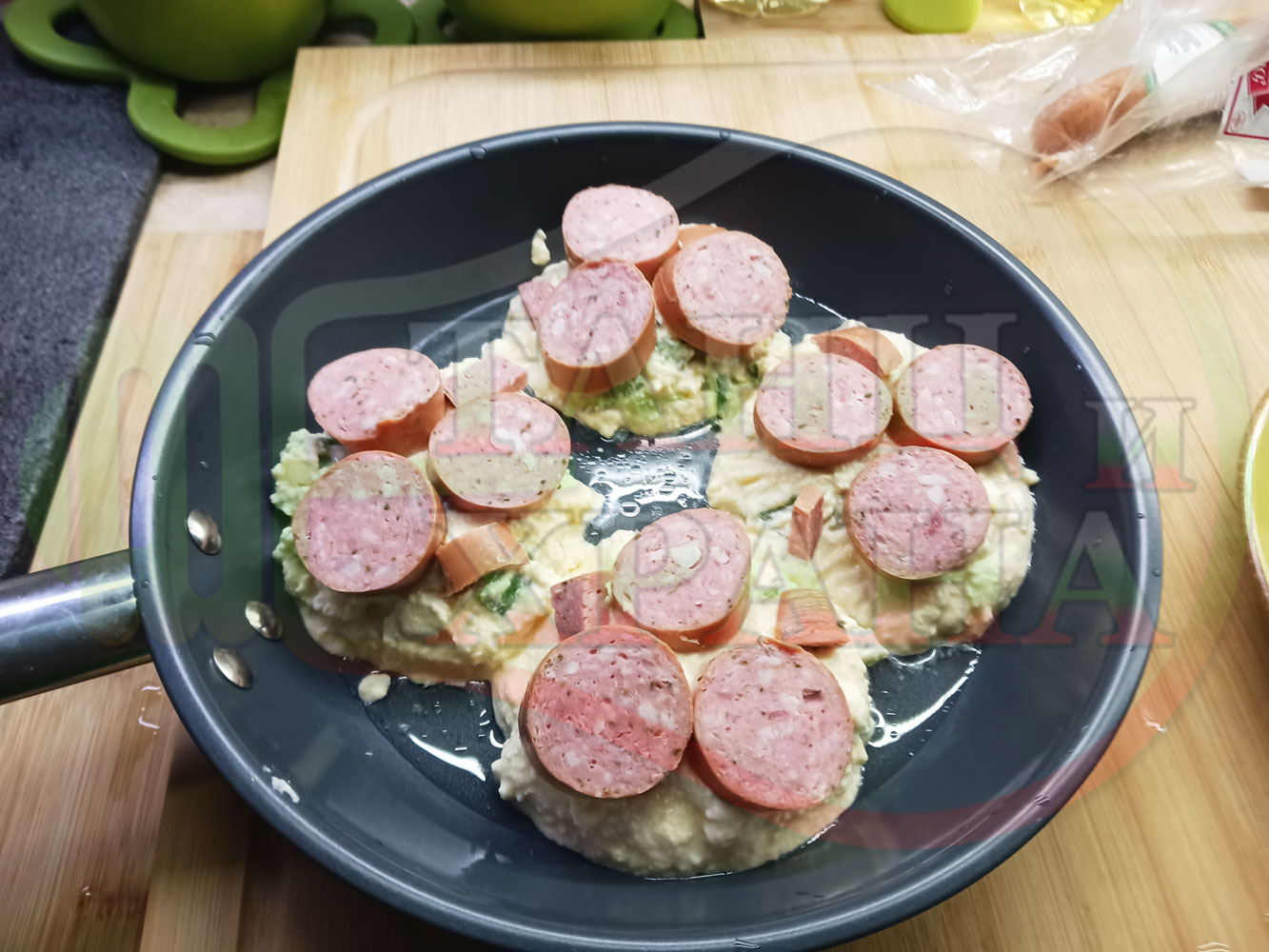 В "Свързани продукти" вижте рецептите на други видове яйчени пити, ястия с яйца, ястия с наденици, колбаси и техни"ТЕ" производни.