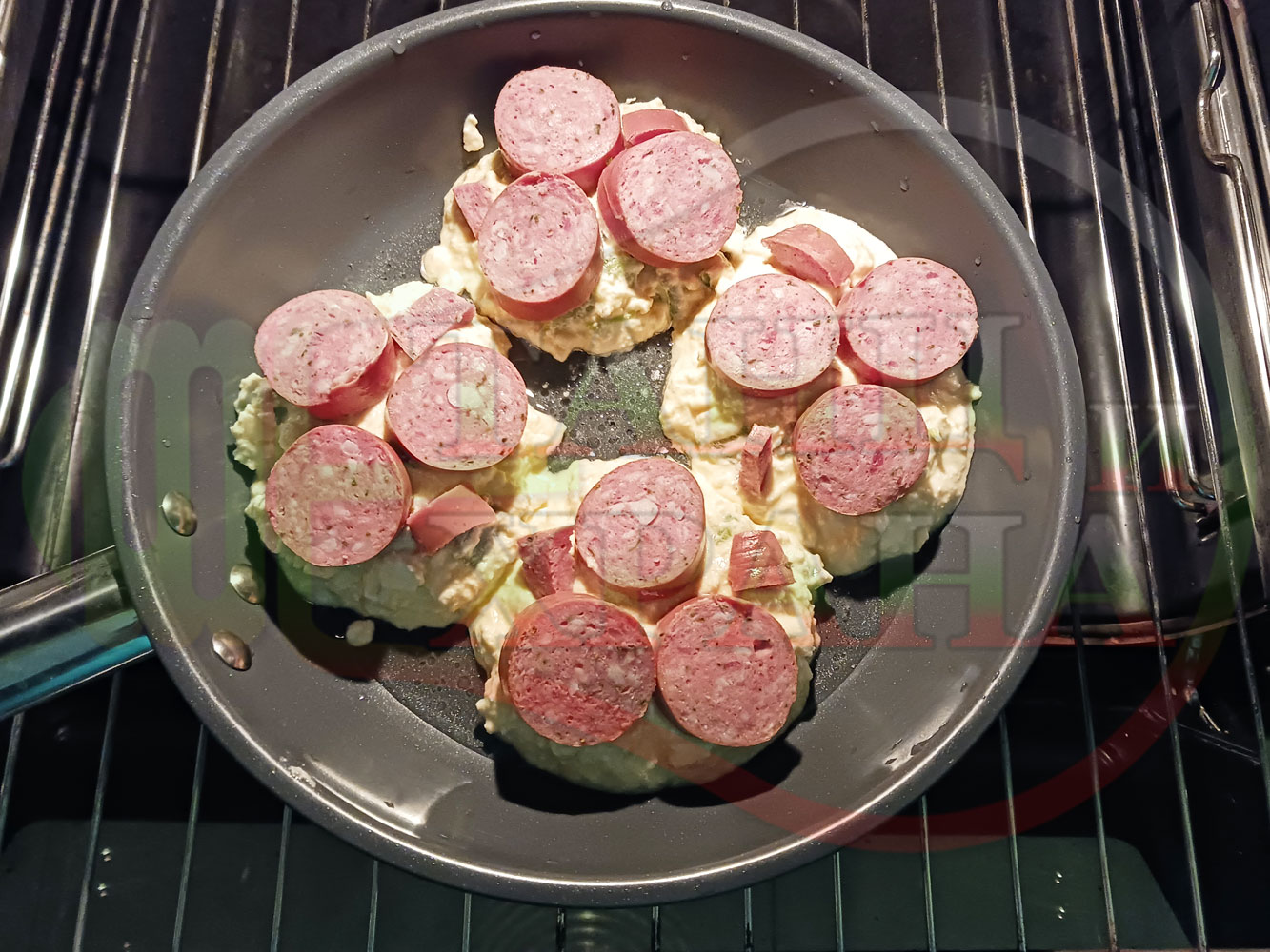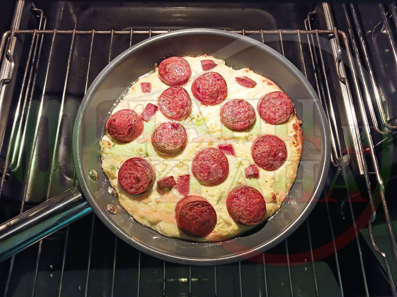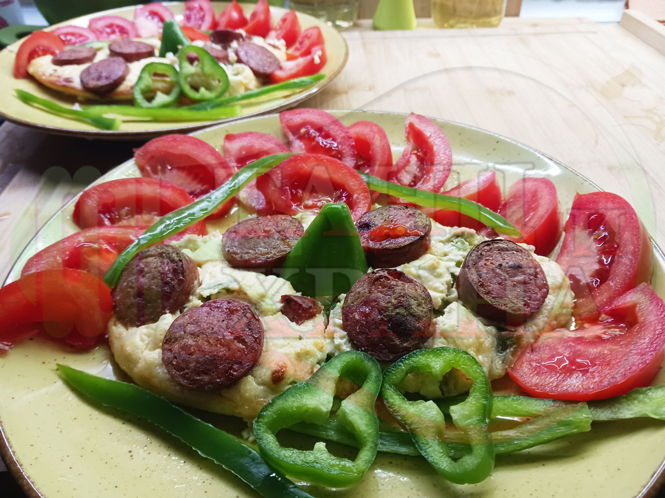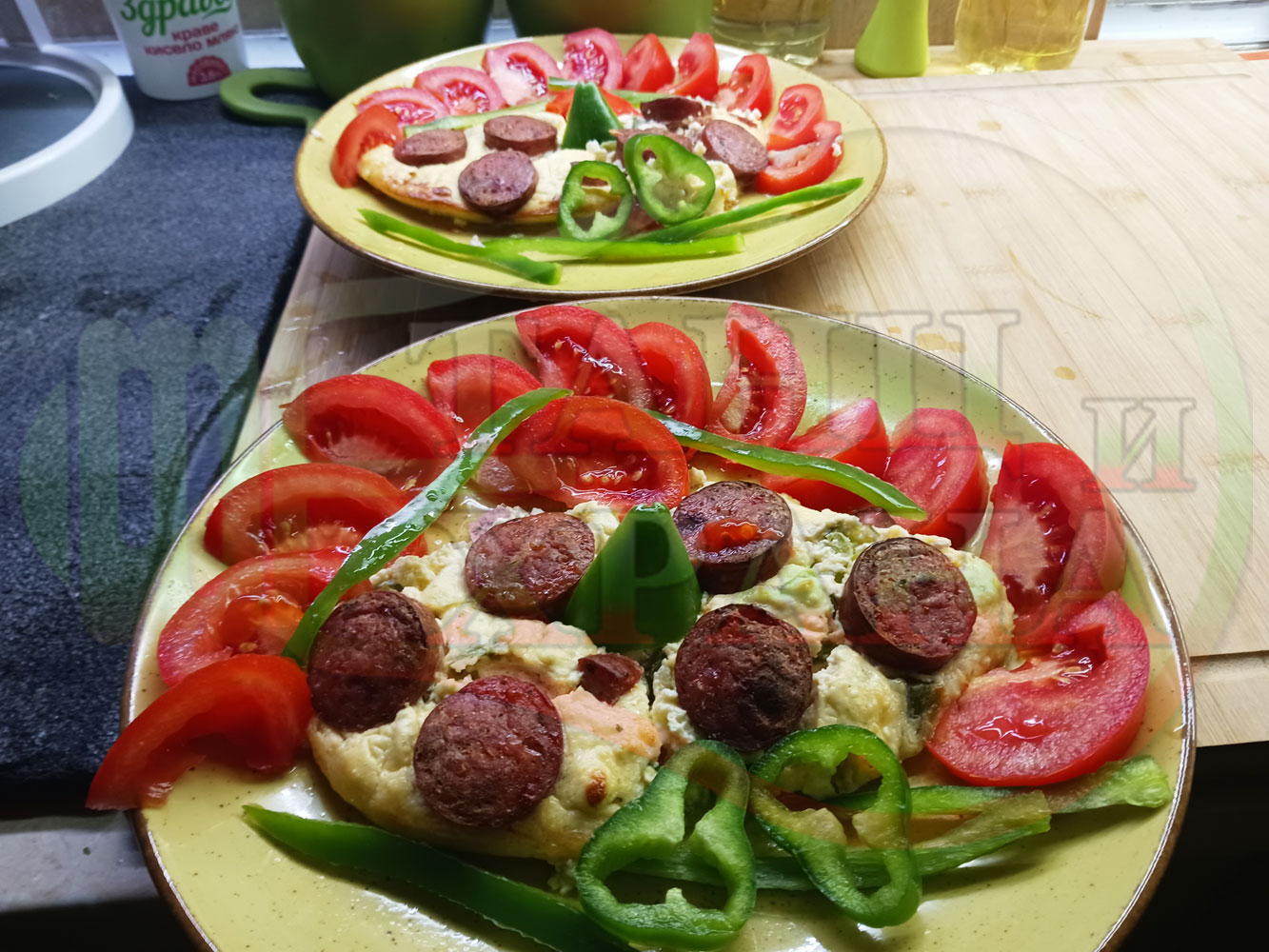 Толкова протеини, толкова вкус, толкова полезни съставки, включени в набързо спретнатата яйчена пита, запечена с родопска наденица върху яйчено сиренова зеленочушкова основа. Приготвих яйчената основа с яйца, зелени пресни чушки, стар чесън и българско караве бяло саламурено сирене. Ммммм... в кухнята се носи аромат на запечени пиперки и наденица и отново се получи голяма вкусно, вкусна, вкусотия (вкуснотия). laughing