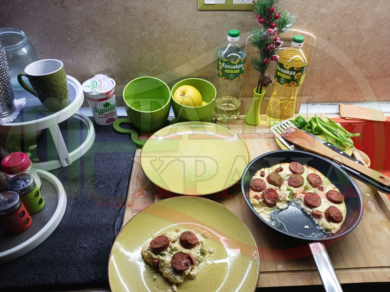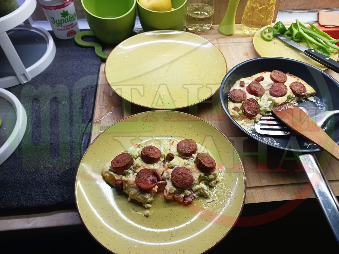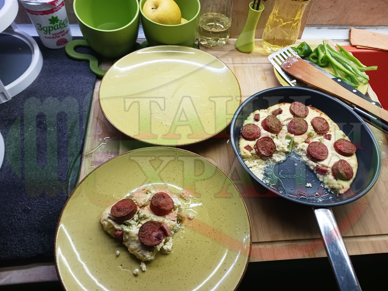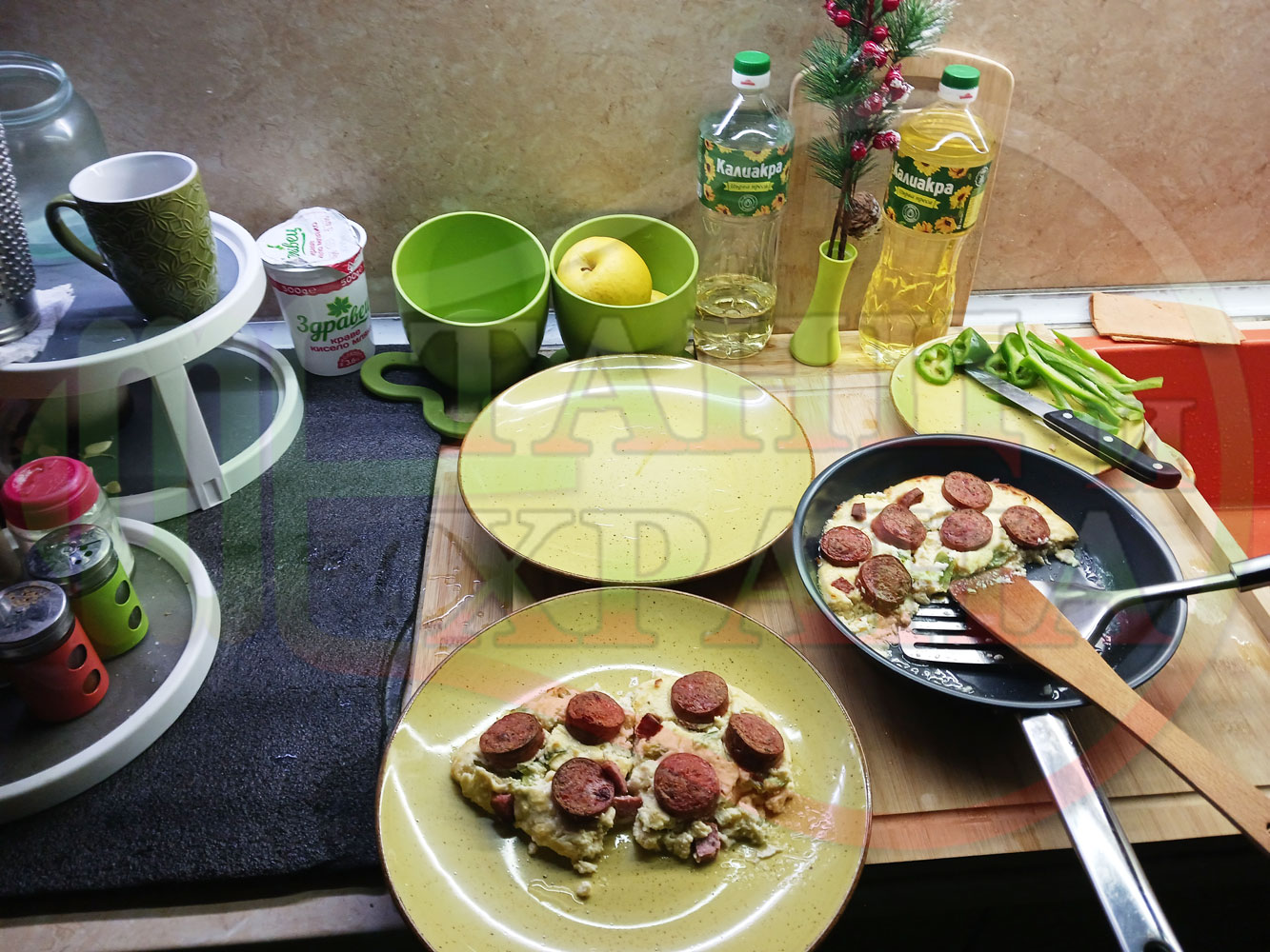 Толкова протеини, толкова вкус, толкова полезни съставки, включени в набързо спретнатата яйчена пита, запечена с родопска наденица върху яйчено сиренова зеленочушкова основа. Приготвих яйчената основа с яйца, зелени пресни чушки, стар чесън и българско караве бяло саламурено сирене. Ммммм... в кухнята се носи аромат на запечени пиперки и наденица и отново се получи голяма вкусно, вкусна, вкусотия (вкуснотия). laughing