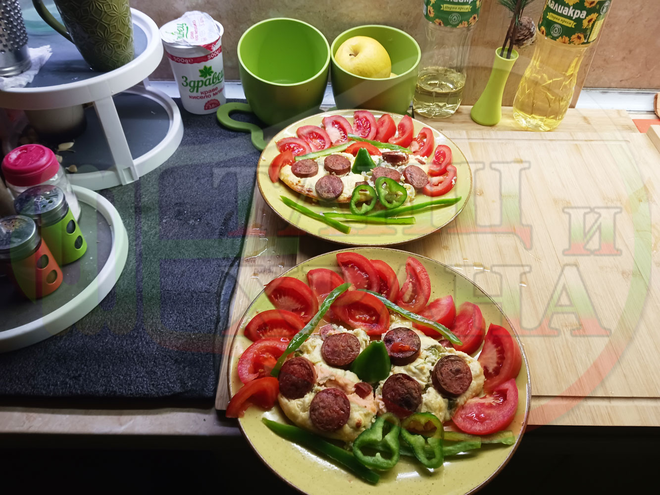 1. Домати - 2 бр. (пресни, големи)