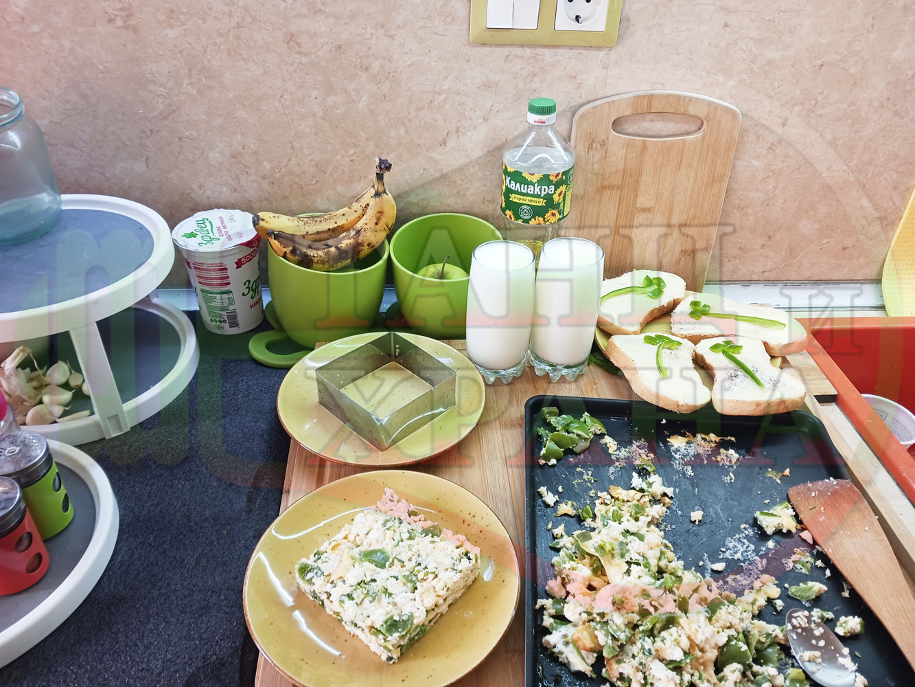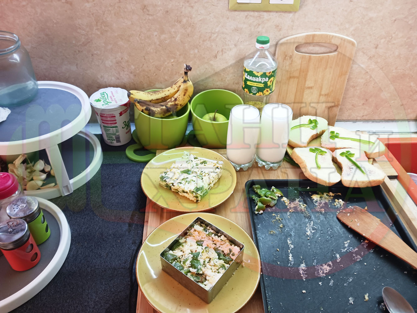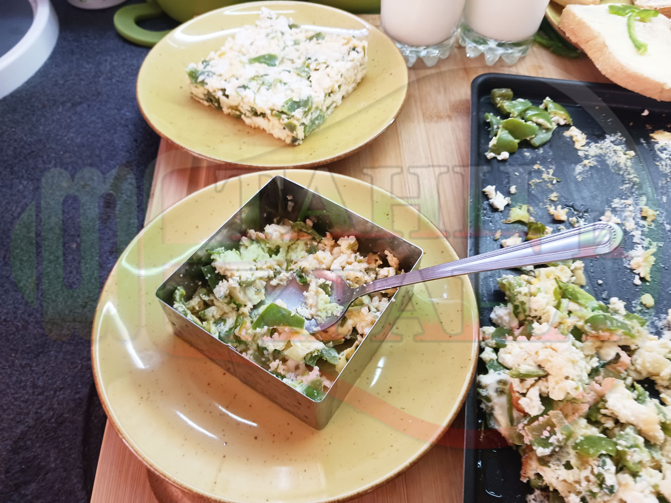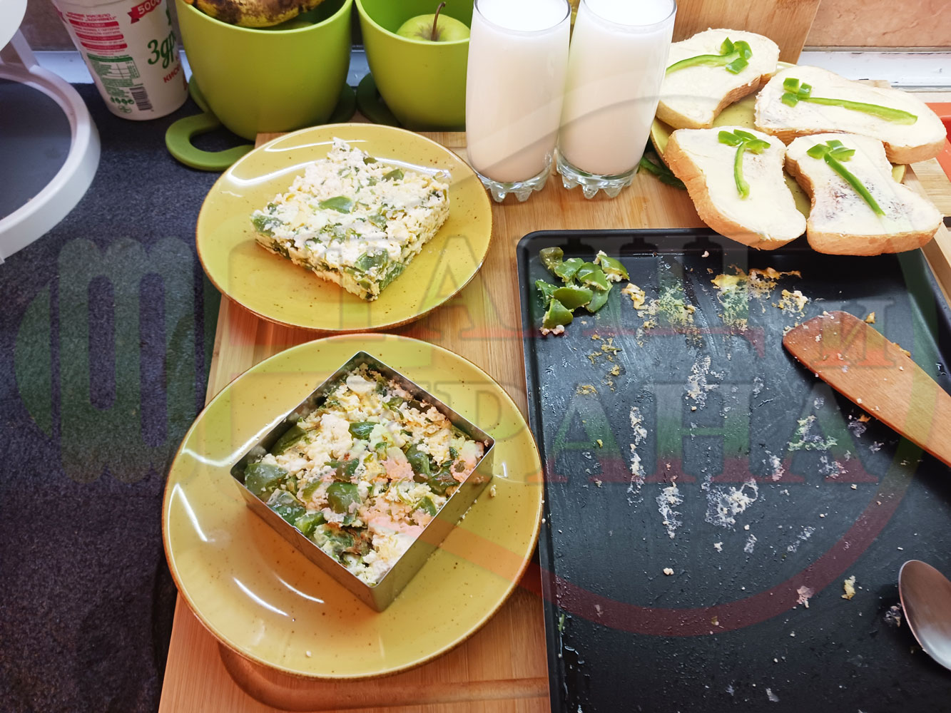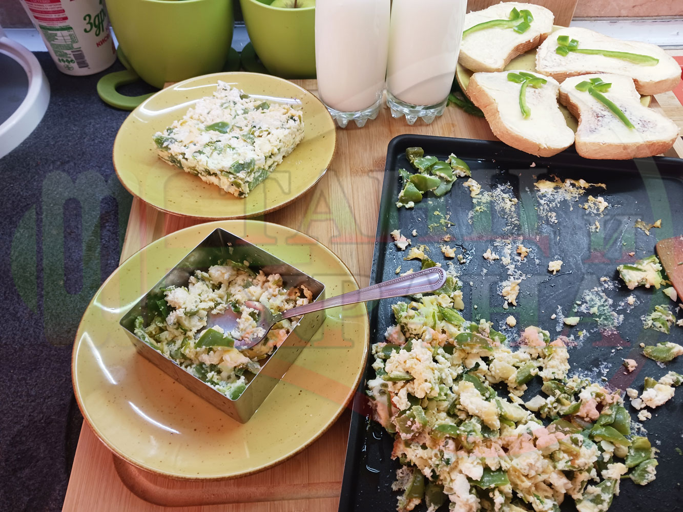 Спретнах изключително вкусен български зеленочушков лютиковочеснов миш маш със зелени пресни чушки, стар чесън, яйца и българско краве бяло саламурено сирене. Ммммм... в кухнята се носи аромат на запечени и леко карамелизирани зелени чушки, напоени и овкусени от саламурата на българското сирене в идеална хармония с яйцата, едва доловимата пикантна нотка на стария чесън и свежестта на пресния магданоз и отново се получи невероятна вкусно, вкусна, вкусотия (вкуснотия). laughing