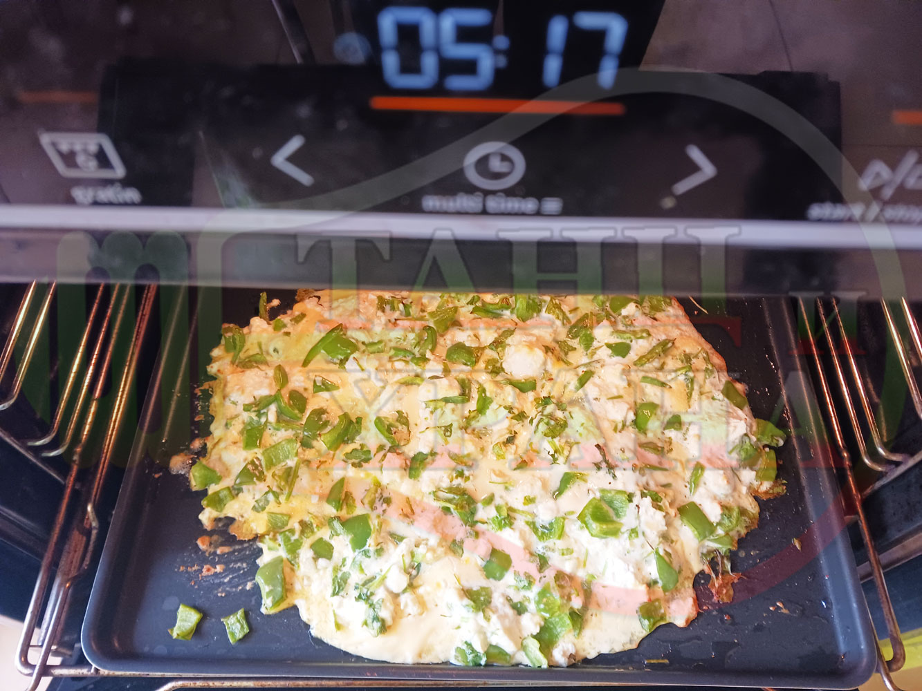 ВНИМАНИЕ: Фурните са различни и съответно времето за запичане е ориентировъчно. Наблюдавайте процеса на запичане и при необходимост, покрийте с хартия или фолио за печене. Разбърквайте чушките с яйцата и сиренето за да не се "споят" и да станат на яйчена пита.