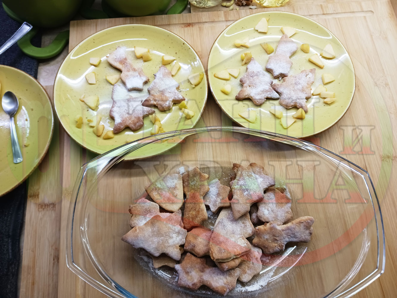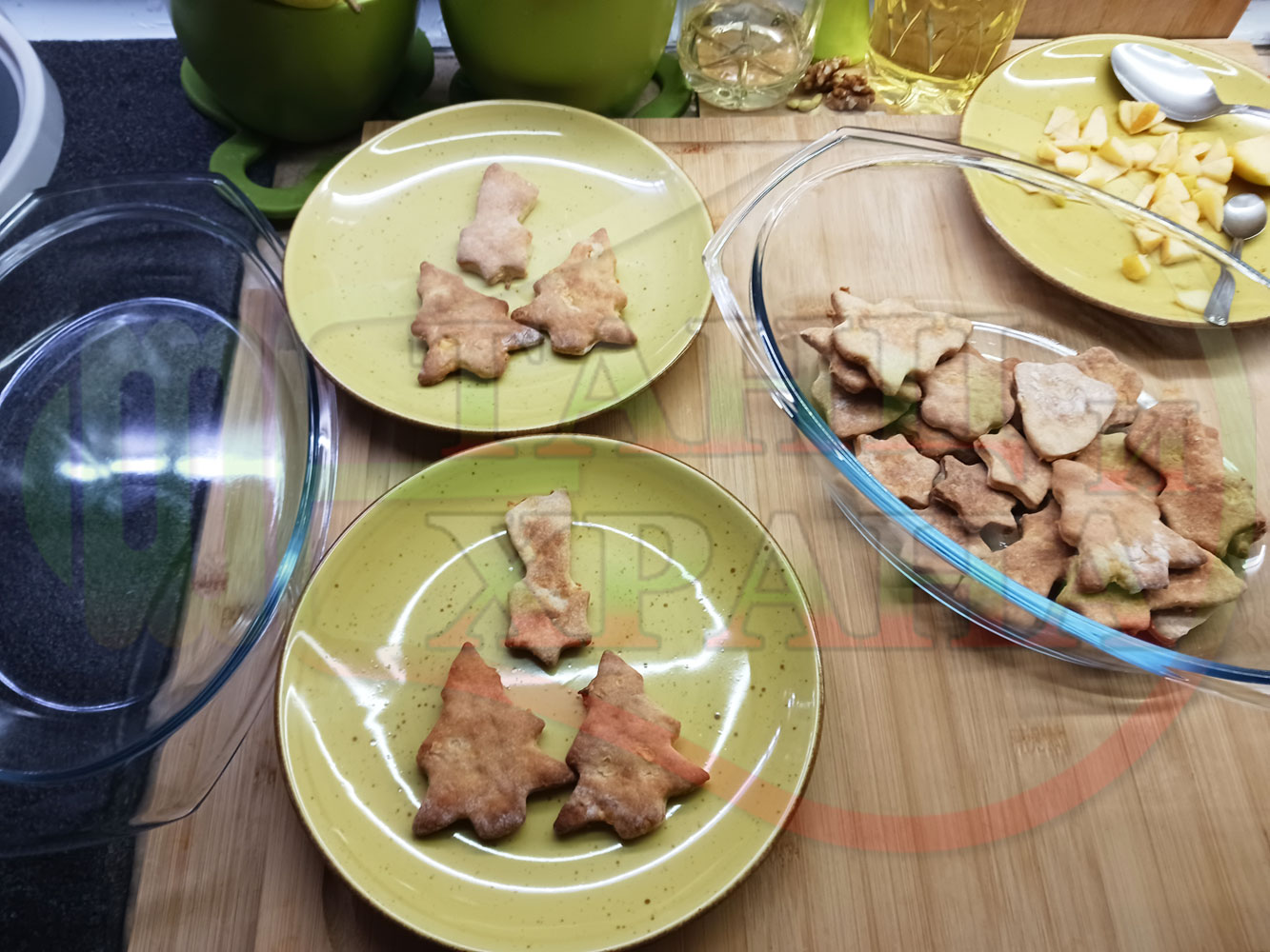 Български класически коледни курабийки "Ябълкови канелени" приготвени с пресни ябълки и канела за Коледа 2025 г. омесени с брашно, яйца и кристална захар