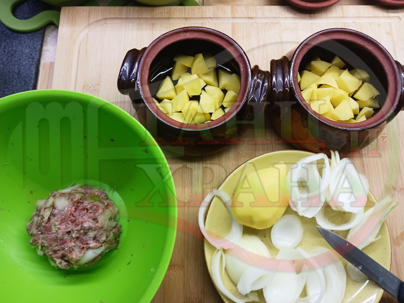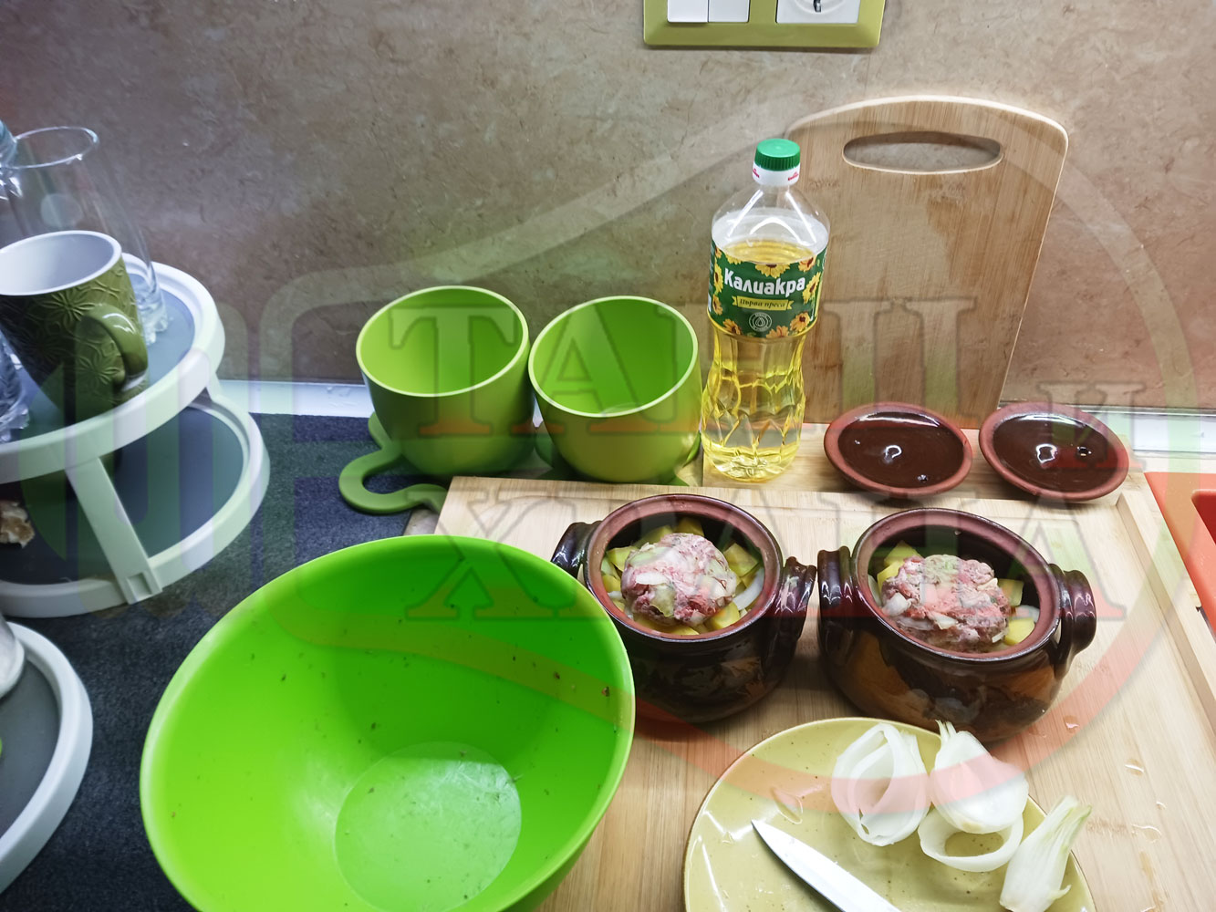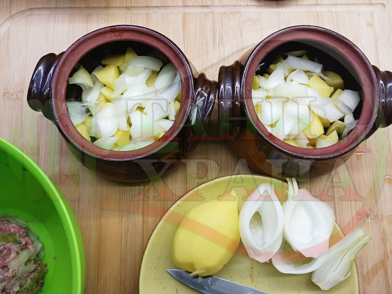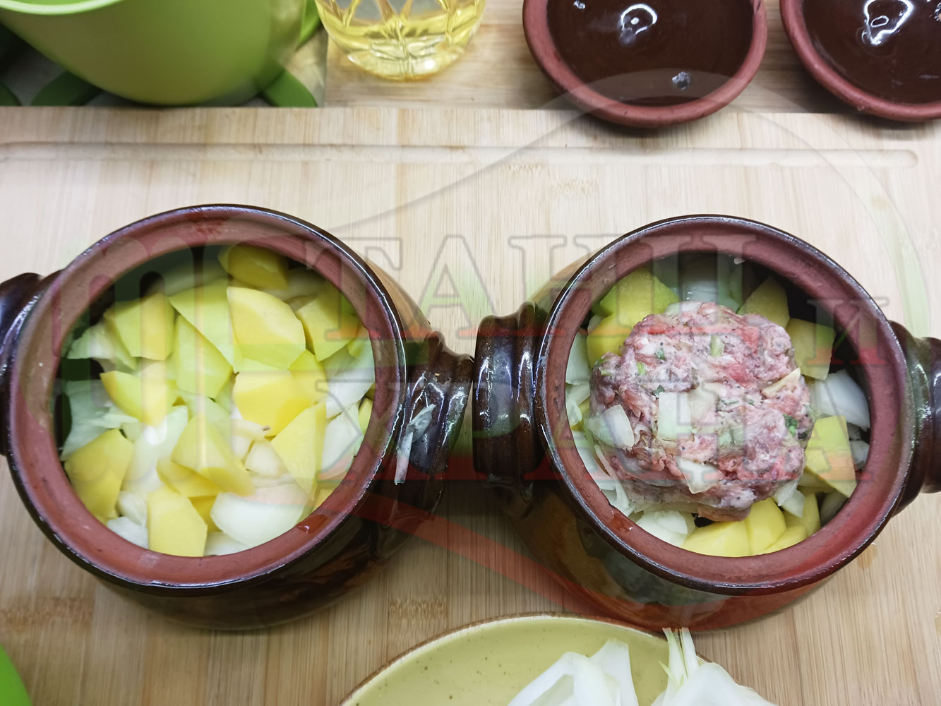ВНИМАНИЕ: Фурните са различни и съответно времето за сваряване и леко запичане е ориентировъчно. Наблюдавайте процеса на запичане и при необходимост, открехнете капачетата на гювечетата или ги отстранете от фурната. Разбърквайте от време на време картофите и лука и при желание обърнете кюфтетата поне 1 път за да се запекат равномерно от 2-те страни (обърнете ги, в случай че желаете да са по-запечени).