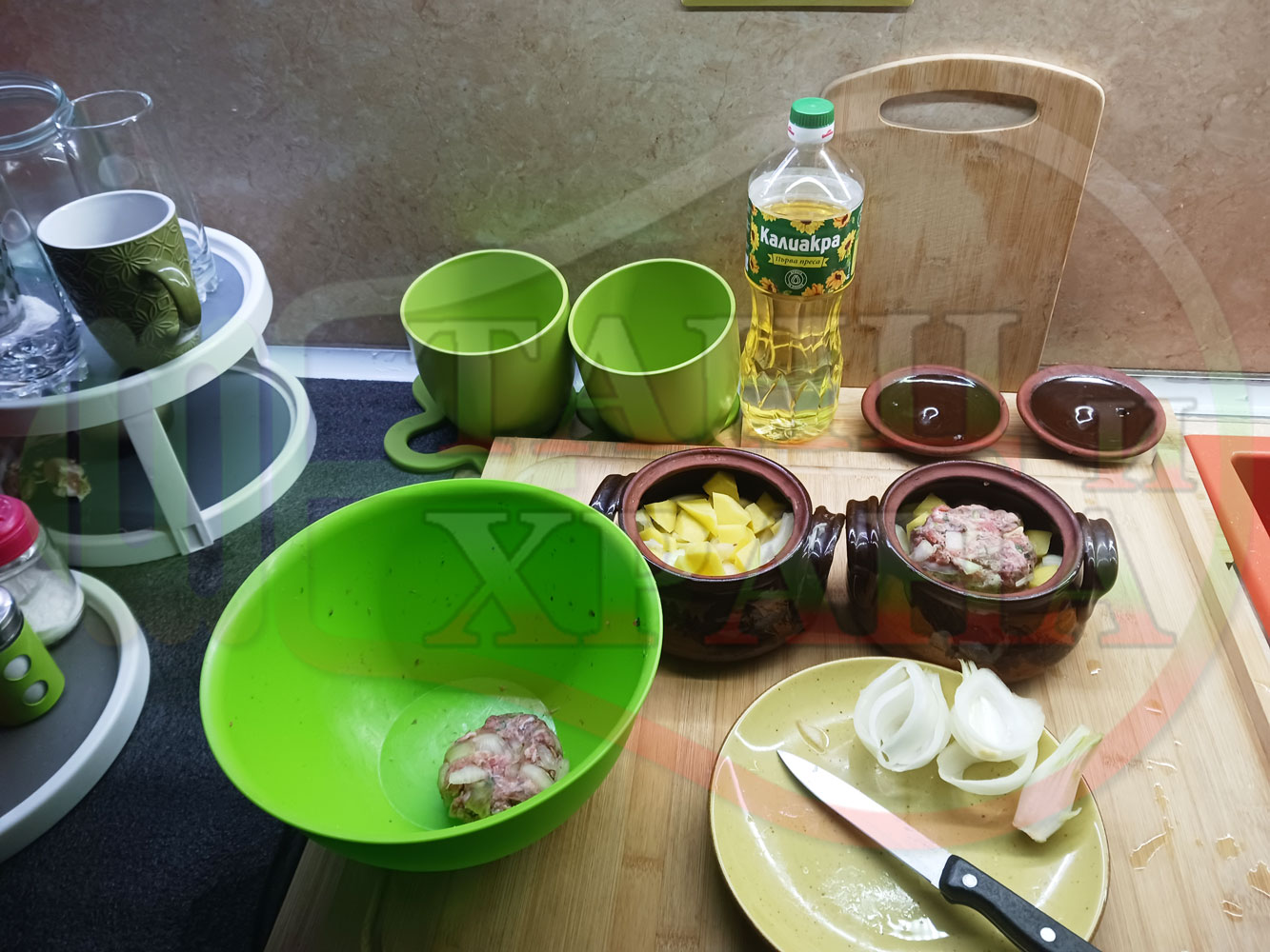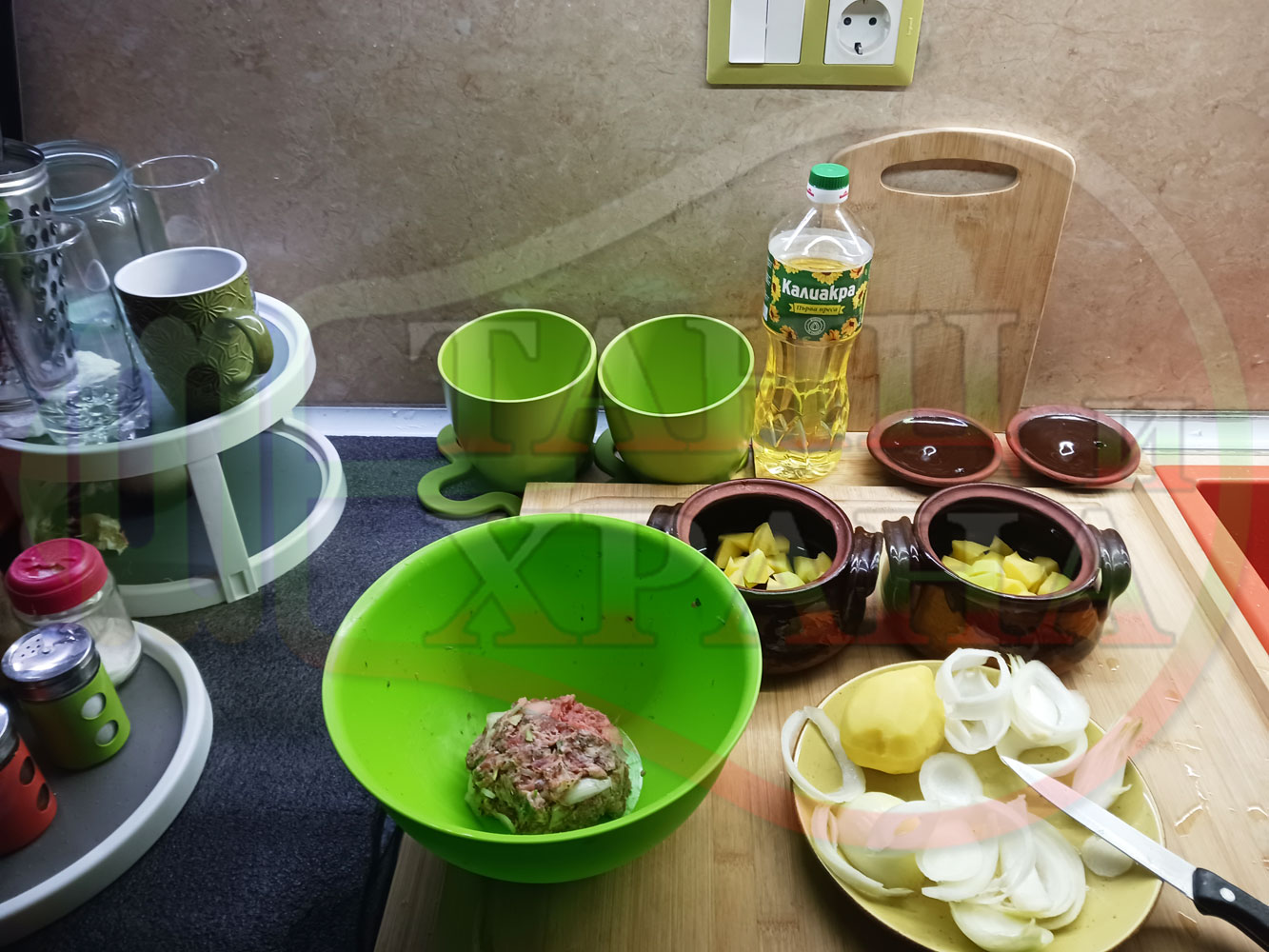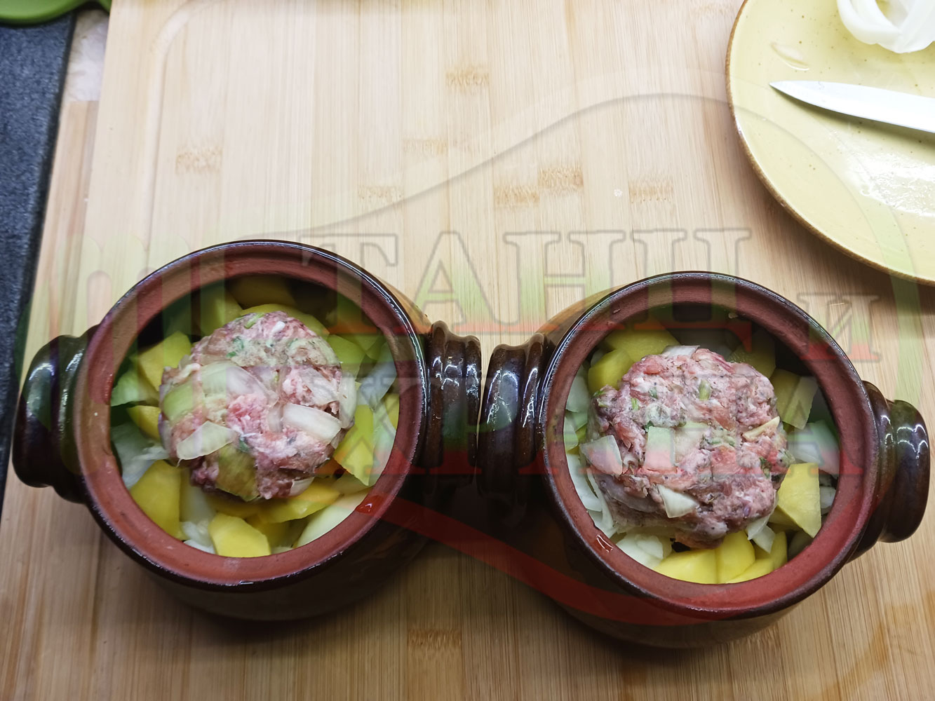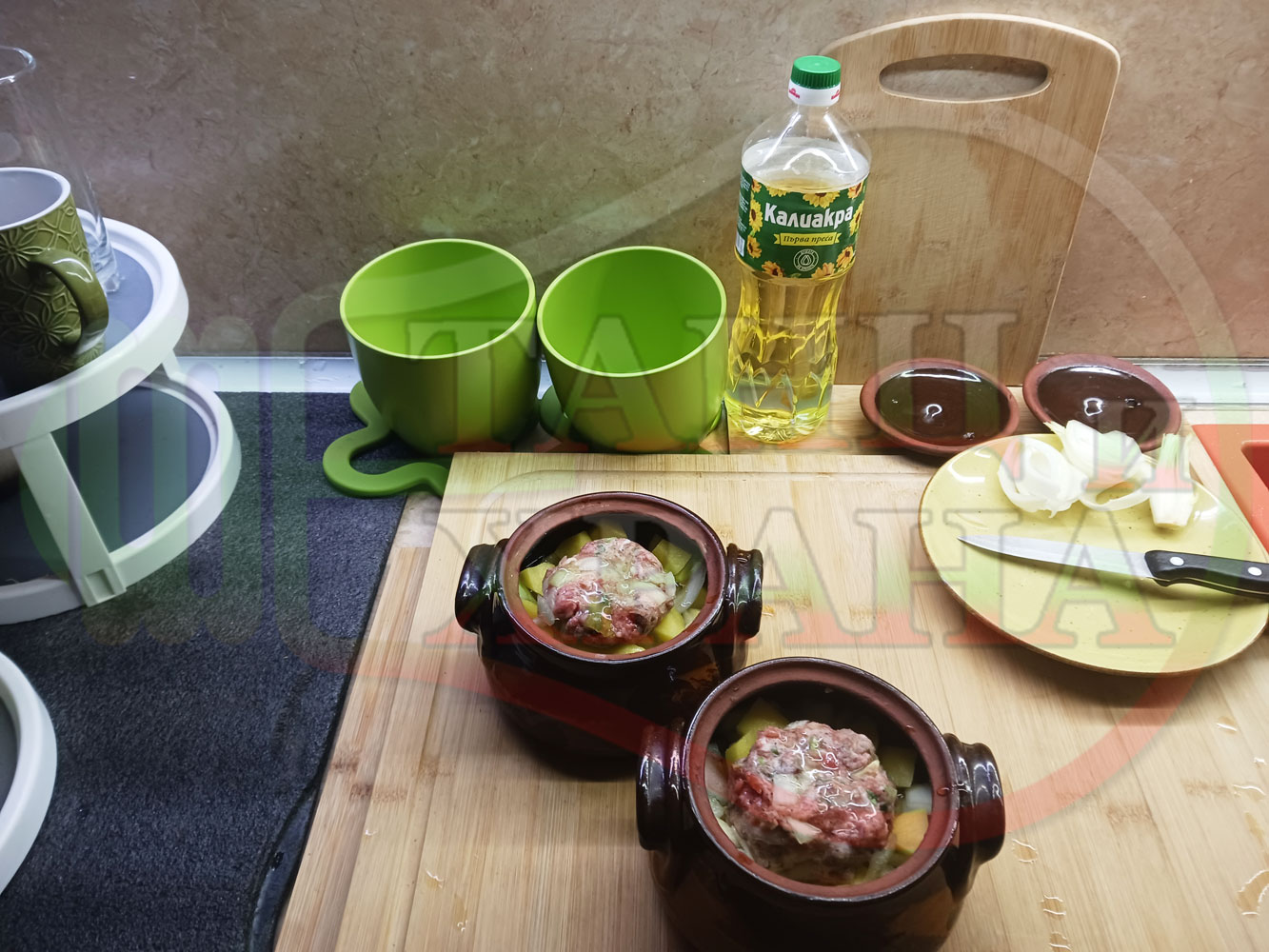 ВНИМАНИЕ: Фурните са различни и съответно времето за сваряване и леко запичане е ориентировъчно. Наблюдавайте процеса на запичане и при необходимост, открехнете капачетата на гювечетата или ги отстранете от фурната. Разбърквайте от време на време картофите и лука и при желание обърнете кюфтетата поне 1 път за да се запекат равномерно от 2-те страни (обърнете ги, в случай че желаете да са по-запечени).