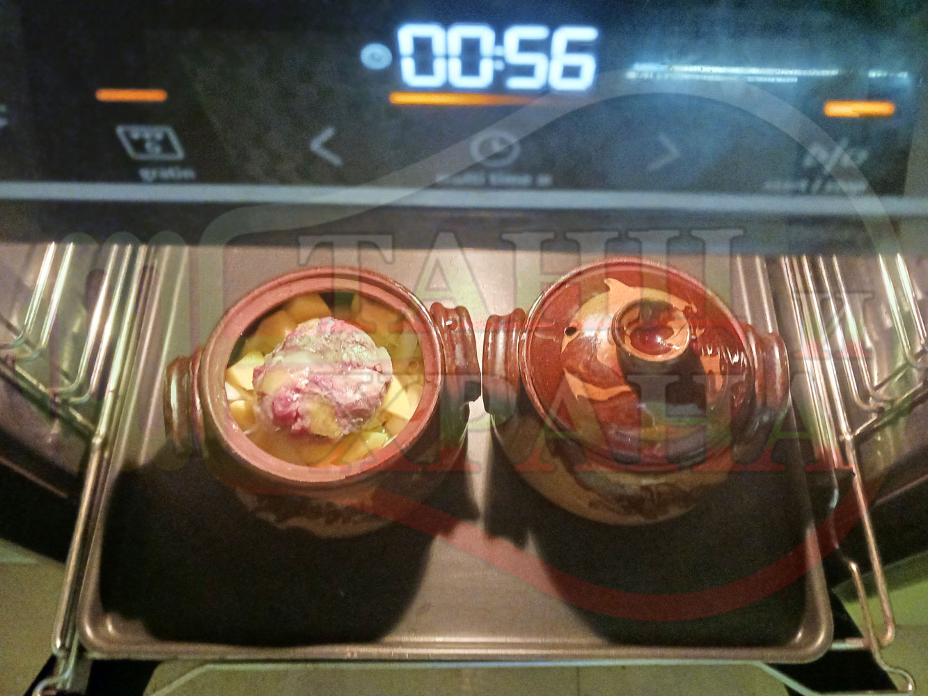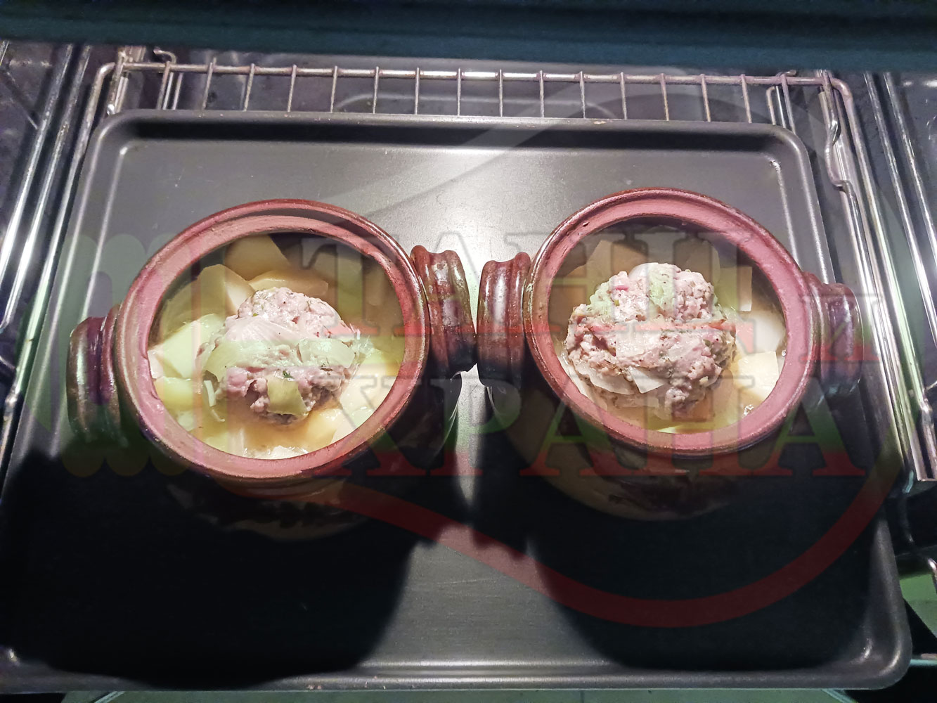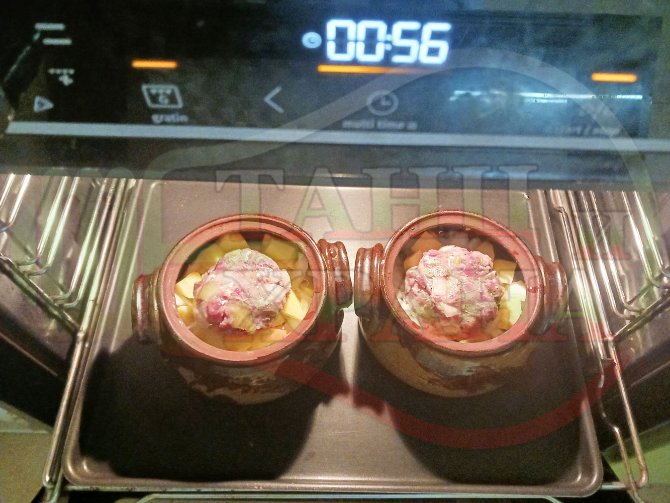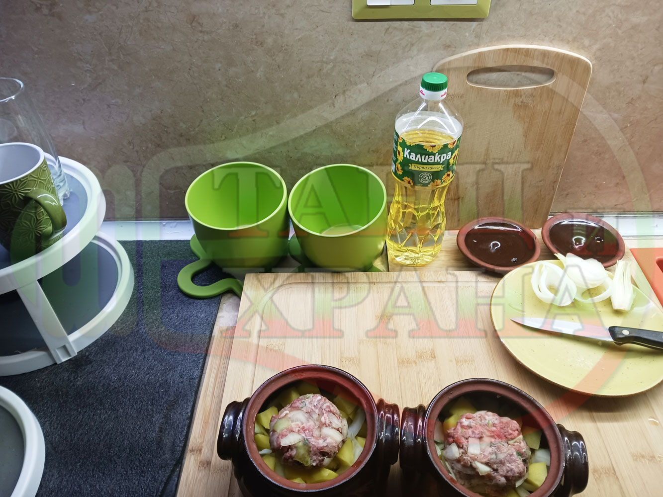 ВНИМАНИЕ: Фурните са различни и съответно времето за сваряване и леко запичане е ориентировъчно. Наблюдавайте процеса на запичане и при необходимост, открехнете капачетата на гювечетата или ги отстранете от фурната. Разбърквайте от време на време картофите и лука и при желание обърнете кюфтетата поне 1 път за да се запекат равномерно от 2-те страни (обърнете ги, в случай че желаете да са по-запечени).
