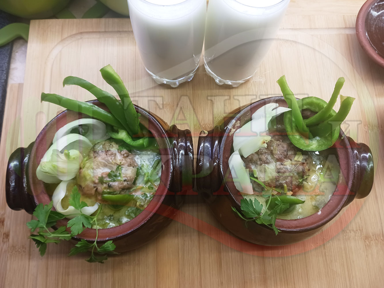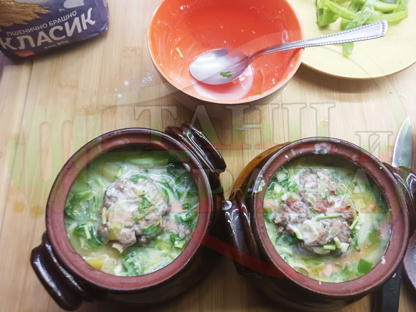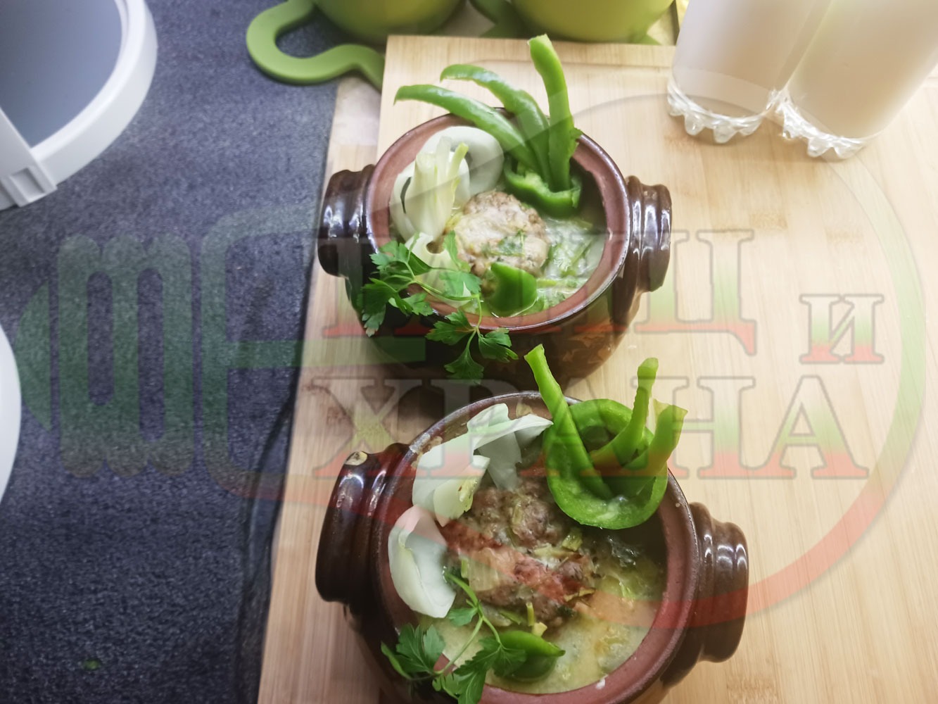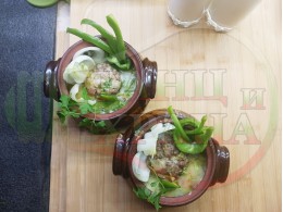 Спретнах неимоверно вкусни гювечета с кюфтета от заделена, домашно овкусена кайма, която овкусих за изпичането на български каймяни филийки "Каймяни зеленочушкови кромидлученомагданозени" (снимките от овкусяването на каймата са към рецептата за филийките). Сварих и запекох гювечетата на фурна с картофи и кромид лук без да добавям допълнително зеленчуци и ги дозапекох с млечен сос, приготвен със свеж магданоз, стар чесън, зелени пресни чушки, брашно и прясно мляко. Млечният сос дообогати вкуса на картофите, лука и кюфтетата с копринена мекота и отново се получи невероятна вкусно, вкусна, вкусотия (вкуснотия), че думите са малко и е най-добре да си приготвите по някое гювече с кюфтета от домашно овкусена кайма и млечен сос. ![]()