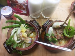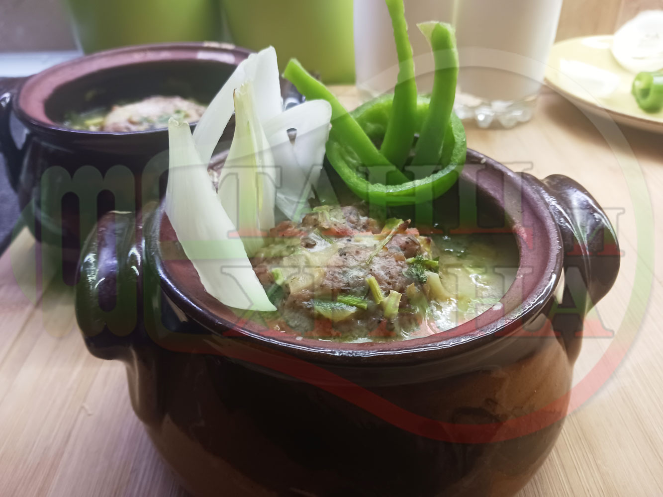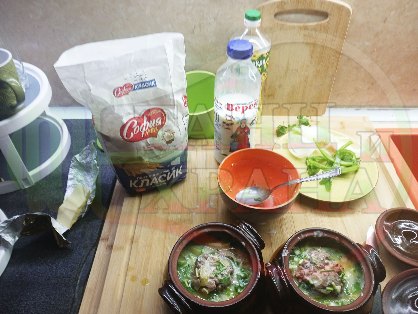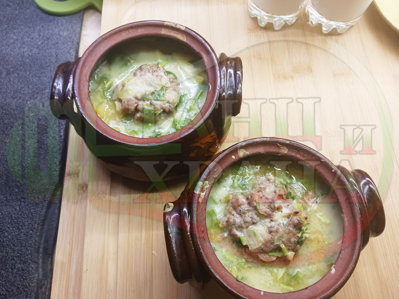Спретнах неимоверно вкусни гювечета с кюфтета от заделена, домашно овкусена кайма, която овкусих за изпичането на български каймяни филийки "Каймяни зеленочушкови кромидлученомагданозени" (снимките от овкусяването на каймата са към рецептата за филийките). Сварих и запекох гювечетата на фурна с картофи и кромид лук без да добавям допълнително зеленчуци и ги дозапекох с млечен сос, приготвен със свеж магданоз, стар чесън, зелени пресни чушки, брашно и прясно мляко. Млечният сос дообогати вкуса на картофите, лука и кюфтетата с копринена мекота и отново се получи невероятна вкусно, вкусна, вкусотия (вкуснотия), че думите са малко и е най-добре да си приготвите по някое гювече с кюфтета от домашно овкусена кайма и млечен сос. ![]()
