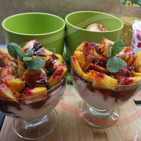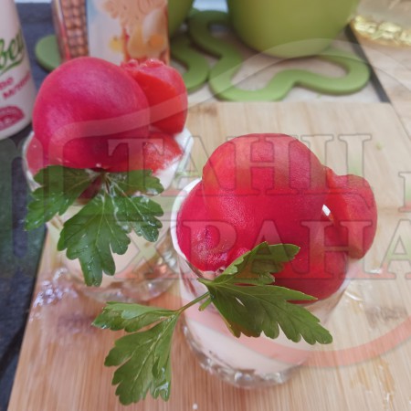 СОСОВЕ ОТ БЪЛГАРСКИ ПРОДУКТИ РАЗЯДКИ СЛАДКИШИ И СЛАДКИ ЛАКОМСТВА В тази сладка категория ще откриете рецепти както за традиционни сладкиши, така и за различни видове сладки лакомства по авторски рецепти, които съм измислила в процеса на готвене. СЛАДКА, КОНФИТЮРИ И МАРМАЛАДИ ДОМАШНО ПРИГОТВЕНИ МЛЕЧНИ ДЕСЕРТИ С КИСЕЛО ИЛИ ПРЯСНО МЛЯКО ПРОИЗВЕДЕНО В БЪЛГАРИЯ Покажи: 5 10 15 20 25 30 50 100 Всички Български класически коледни курабийки "Ябълкови канелени" приготвени с пресни ябълки и канела за Коледа 2025 г. омесени с брашно, яйца и кристална захар Български курабиен плодов млечен десерт "Крушов халвяноорехов киселомлечен" приготвен с готови курабии, кисело мляко от България и халвян крем с пресни круши и биологична орехова тахан халва Мандаринова кексова торта "Мандариновобелтъчна" изпечена на фурна с белтъчен крем и пресни мандарини приготвена с кексово тесто с яйца, брашно с набухвател, слънчогледово олио и прясно мляко Белтъчен кремообразен плодов десерт "Мандаринов белтъчнозахарен" приготвен с яйчени белтъци, кристална захар и щипка готварска сол запечен с пресни мандарини Бисквитен плодов млечен десерт "Ябълков малиновосиропен киселомлечен" приготвен с обикновени бисквити, кисело мляко от България и пресни, жълти ябълки гарниран с малинов сироп Боровинков плодов млечен суров десерт "Боровинковомеден киселомлечен пчелноцветен" приготвен с крем от кисело мляко от България и пчелен цветен прашец гарниран с пресни боровинки и ароматен мед Български ягодов млечен десерт "Какаовонескафеен киселопрясномлечен" приготвен от домашен течен шоколад с какао, пудра и кристална захар, прясно мляко и нес кафе сурово реден с кисело мляко от България гарниран с пресни ягоди Бисквитени мини топчести торти "Боровинкови пресномлечни" приготвена с обикновени бисквити, прясно мляко и пресни боровинки оформени като топки поръсени с пудра захар Плодов десерт "Боровинков нишестеногорскоплодов сусамено киселомлечен" приготвен със сварено на фурна нишесте от горски плодове овкусено със суров сусам замразено с кисело мляко от България гарниран с пресни боровинки и обикновени бисквити с масло Бисквитен десерт "Нишестеногорскоплодов сусамено киселомлечен" приготвен със сварено на фурна нишесте от горски плодове овкусено със суров сусам нареден с обикновени бисквити с масло и кисело мляко от България гарниран с бисквитено нишестени топки Сладки постни питки "Плодовогорски нишестени сусамени бохчи" изпечен на фурна с плънка от сварено на фурна нишесте от горски плодове овкусено със суров сусам омесени с бяло брашно и суха мая подходящи за постещи хора Пъпешово домашно сладко "Пъпешовокоро златностафидено" сварено на фурна от кори на пъпеш "Медена роса" с кристална захар и златни стафиди Кадаиф "Прясномлечномаслен ореховосуров пъпешов" приготвен с млечен сироп сварен на фурна с прясно мляко, краве масло и кристална захар гарниран и поръсен със сурови орехи и български пъпеш "Медна роса" Ягодов млечен десерт "Ягодовоядков лютивопиперков киселомлечен" приготвен с пресни ягоди, печено кашу и червен лютив пипер сурово реден с кисело мляко от България гарниран със шам фъстък Бисквитен плодов млечен десерт "Прасковенотоников шамфъстъченомеден" приготвен с обикновени бисквити с масло, тоник и пресни праскови гарниран с липов мед и шам фъстък (печен, 