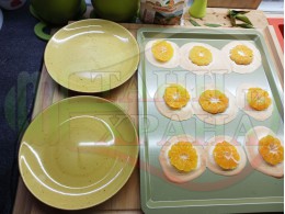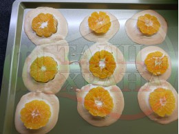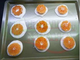 Но се оказа доста трудно да "отлепя" изпечените мини плодови десерти без да се свие белтъчната смес, от която са приготвени. При следващите готвения ще се опитам да намеря оптимума за приготвянето на този и подобни видове десерти. Препоръчвам да не си спестявате слънчогледовото олио за да може да отлепите десертите в някаква по-стабилна форма. Не оставяйте белтъчната смес да изстине, защото няма да може да я отлепите от тавата. Предполагам, че с хартиени кексови форми и поставена хартия върху тавата, десертът ще се отлепя по-лесно без да се разваля формата му. Описах рецептата със слънчогледово олио, въпреки че не сипах такова в плоската тава и съответно почти не успях да отлепя плодовите мини десерти. В кексовата форма сипах олио и в някаква степен отлепих десертите и съответно установих, че са доста различни на вкус. Белтъчните плодови десерти, които изпекох с олио са една идея по-меки и кремообразни от десертите, които са без олио. Плодовите десерти от тавата, които изпекох без олио се получиха по-ронливи, хрупкави и подобни на дъвка. Плодовият сок от мандарините, който пускат при изпичането, овкусява белтъчната смес и се получиха изключително вкусни мини белтъчни плодови десерти. ![]()