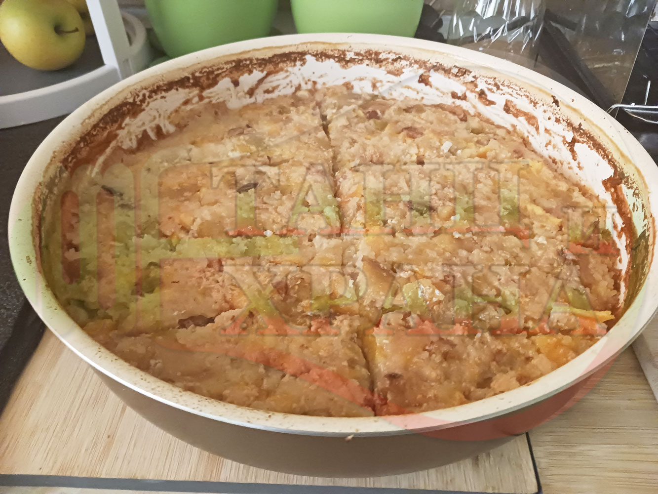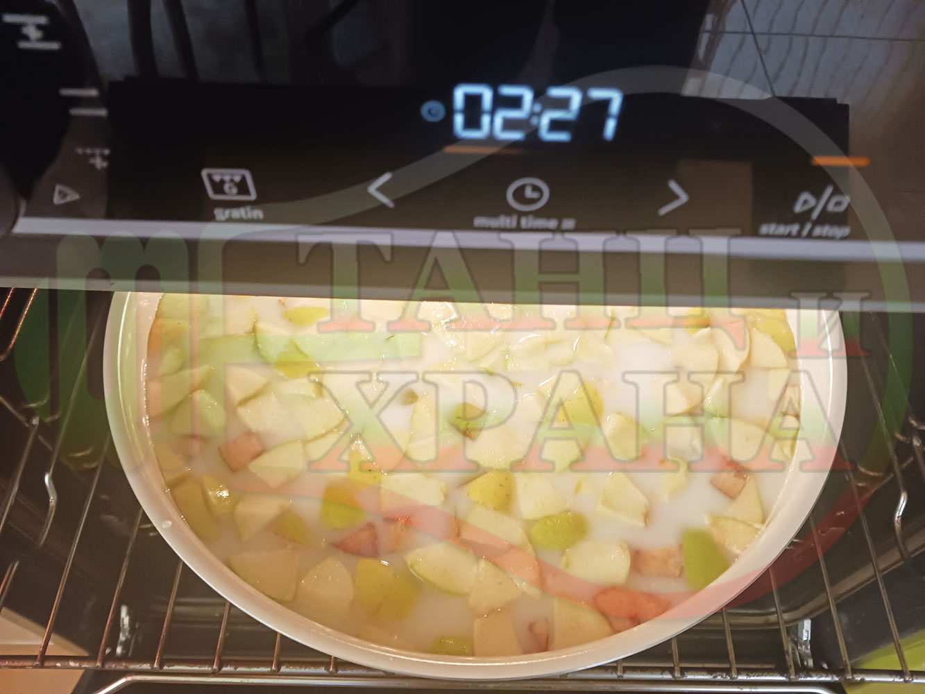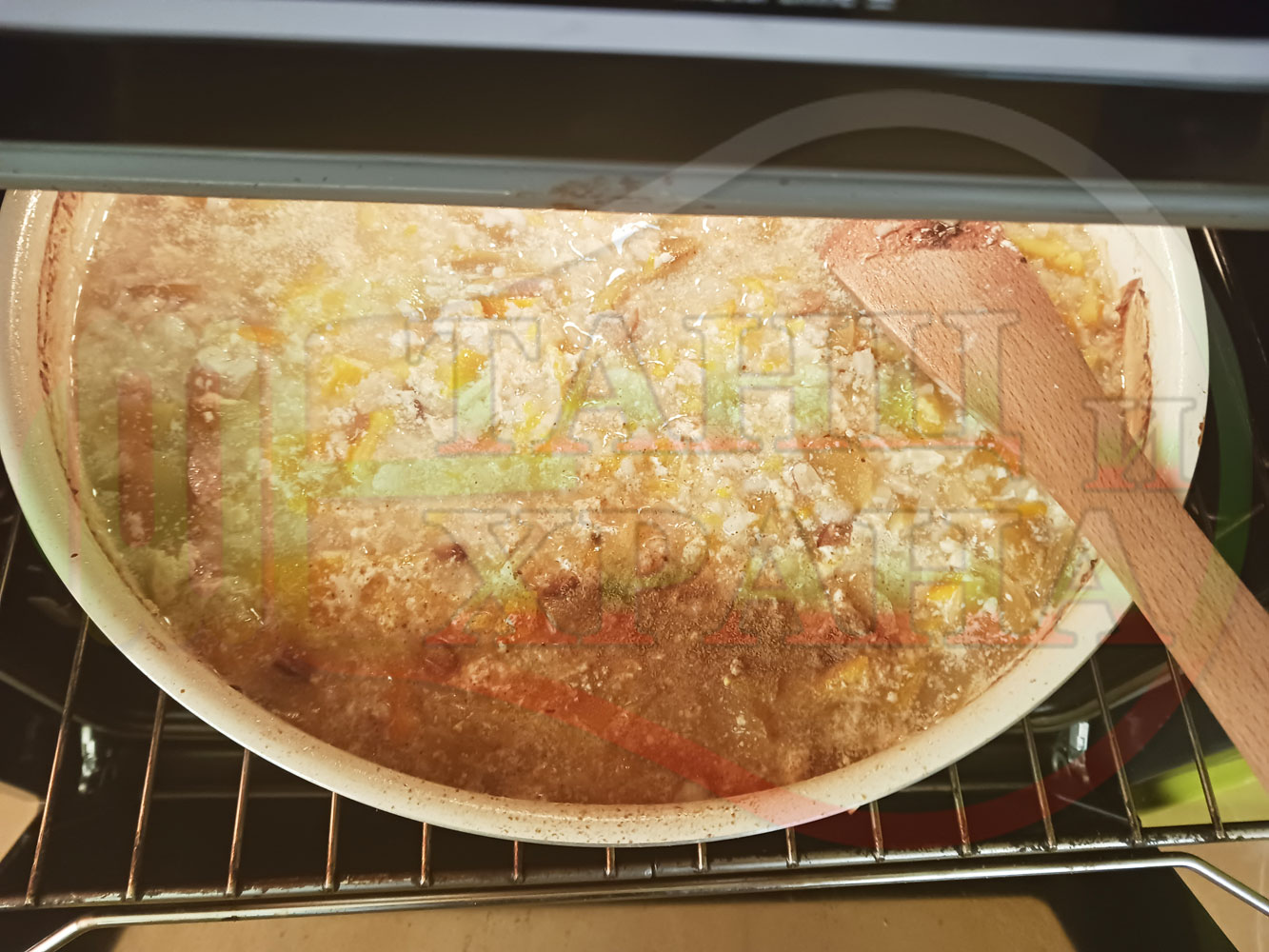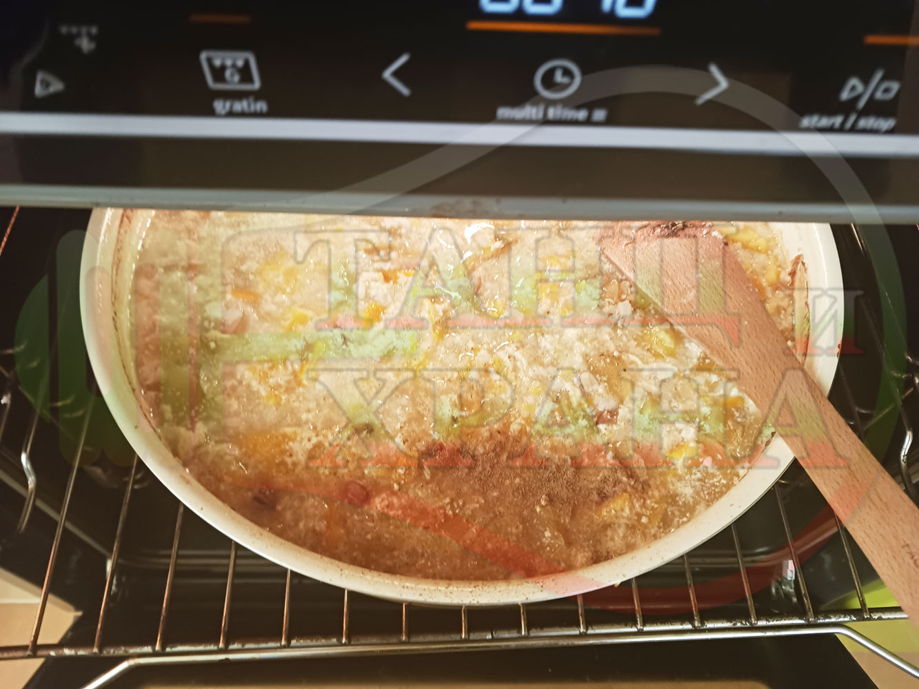 ВНИМАНИЕ: Фурните са различни и съответно времето за сваряване и запичане е ориентировъчно. Наблюдавайте процеса на запичане и при необходимост, покрийте с капак или отстранете тавата от фурната.