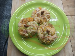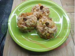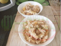 Измийте ориза поне 2 пъти и го дабавете около 10 минути след началото на зададеното време (може да го добавите заедно с плодовете).