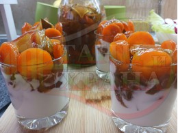 Млечен десерт "Диненоморковен" приготвен със сладко "Нешева" от кори на диня, моркови, чесън и лайка с кисело мляко от България