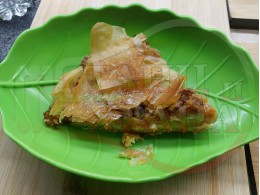 Баница "Ябълкова с тиква" приготвена от готови кори с плънка от пресни ябълки, тиква, сурови орехи, канела и слънчогледово олио подходяща за постещи хора