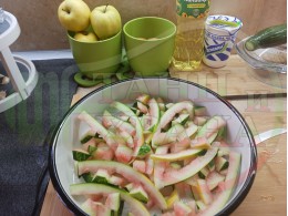 ПРОДУКТИ: Приблизителни количества за сладко "Динено с краставици и орехи" приготвено на фурна от кори на диня, пресни краставици, ванилия, натурално нишесте и сурови орехи