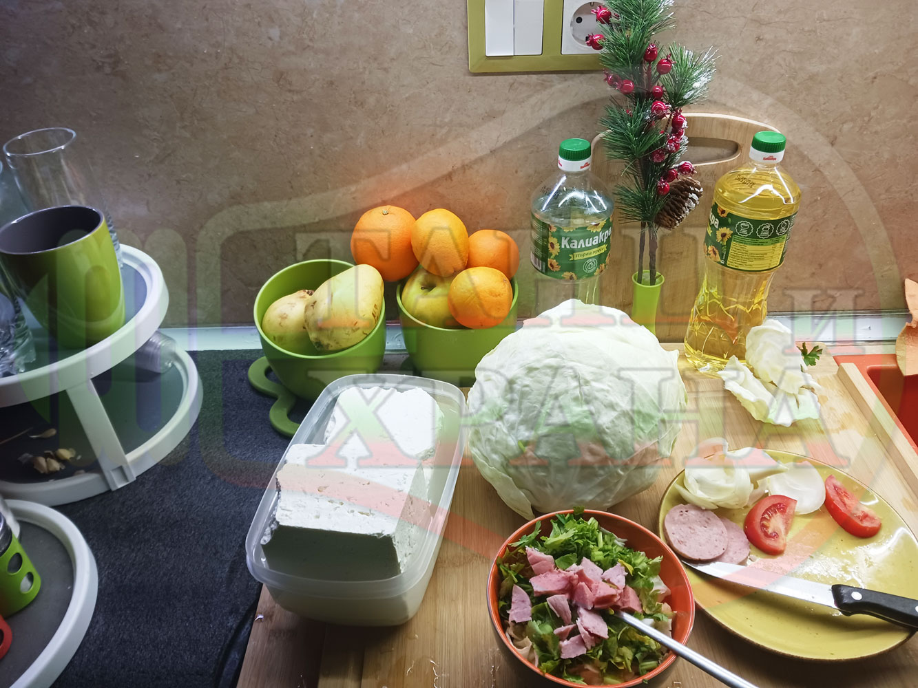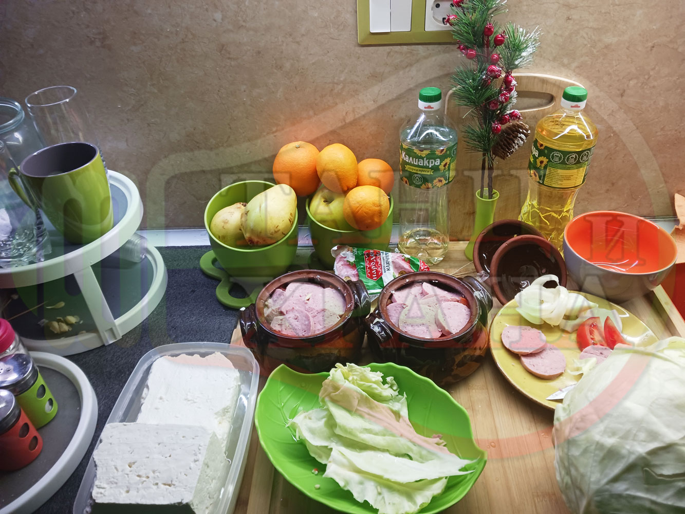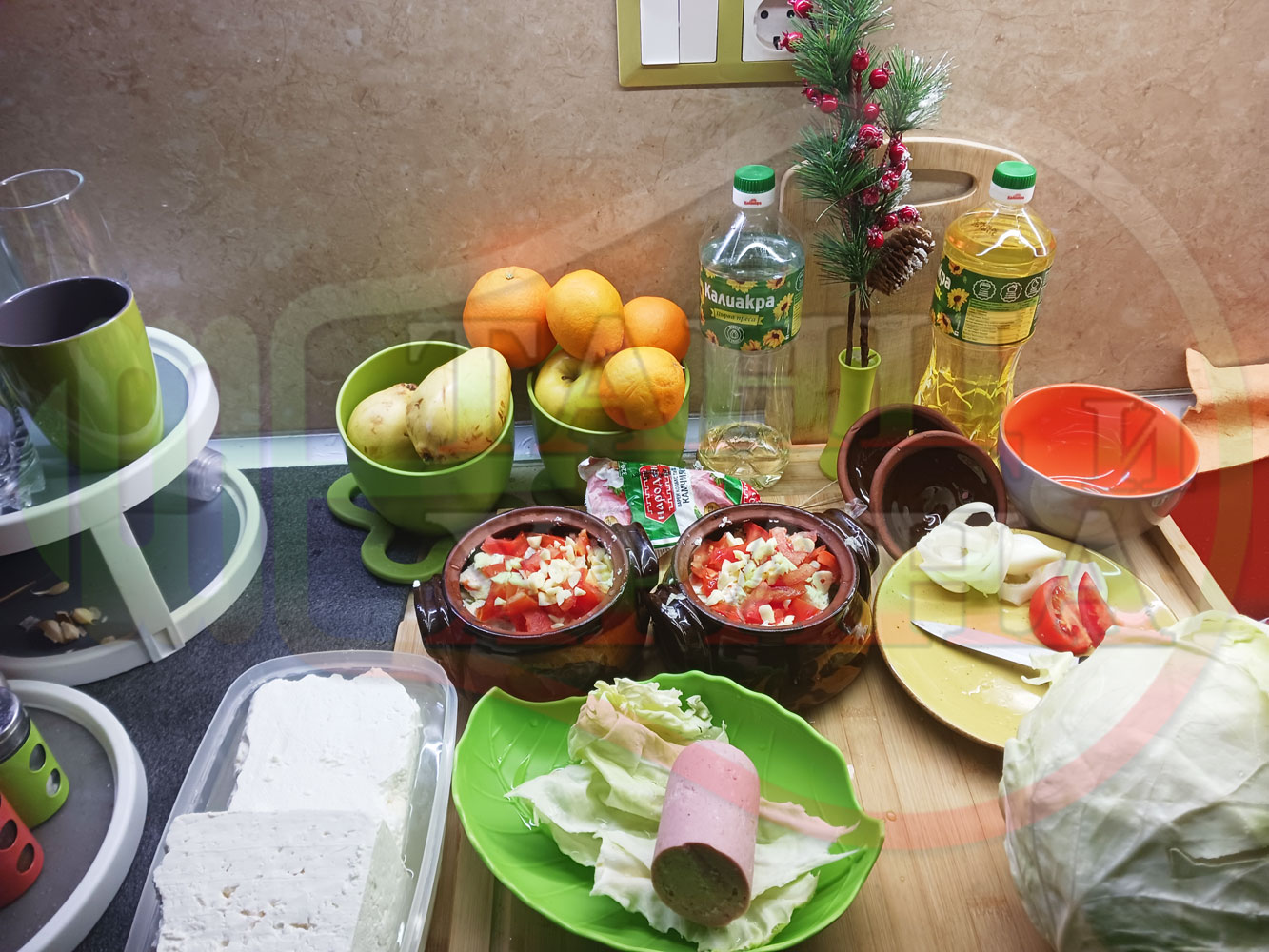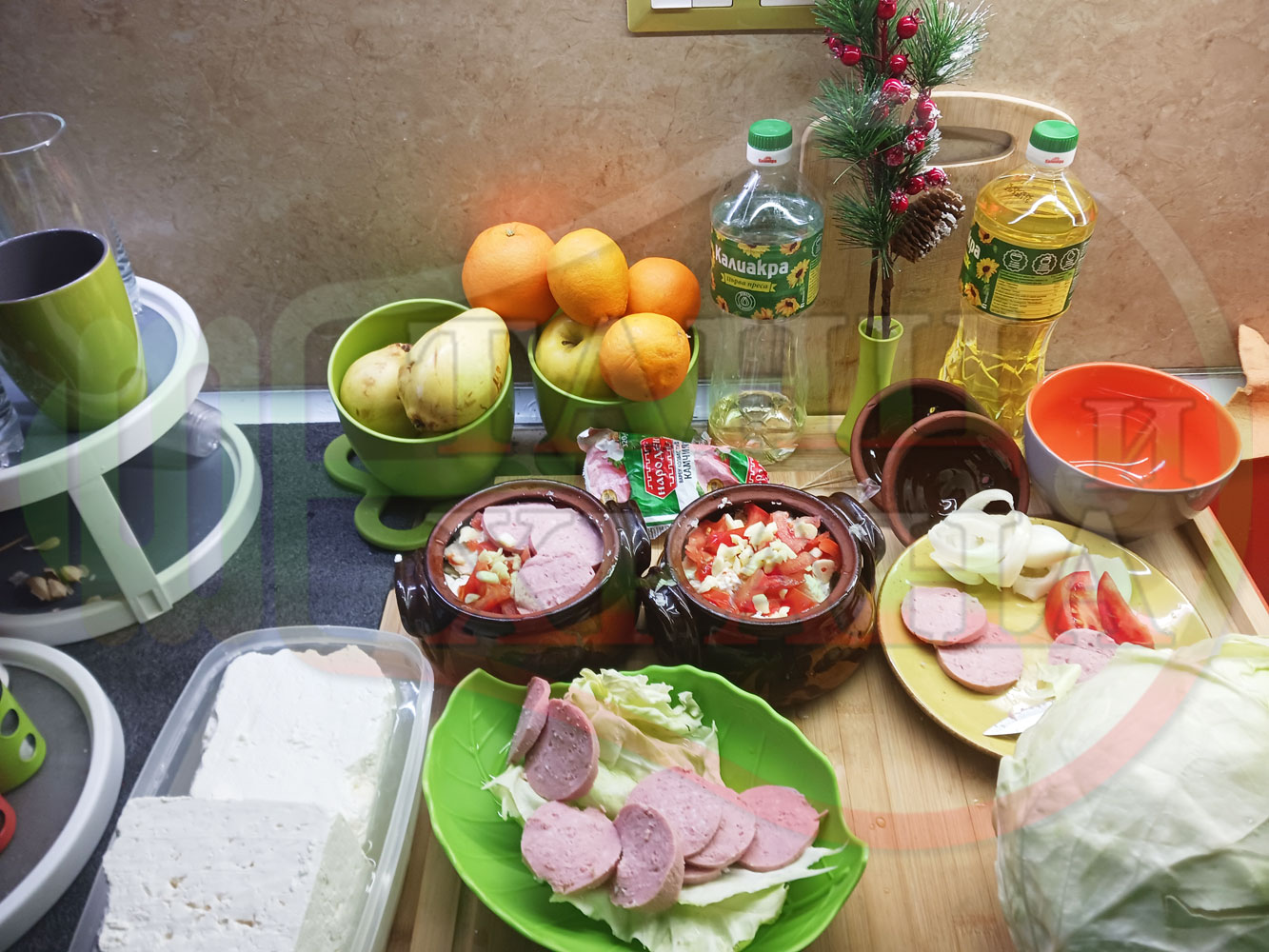 ПРОДУКТИ: Приблизителни количества за български гювечета "Пряснозелеви камчиевосаламени с БГсирене" запечени на фурна с прясно зеле, домати, лук, чесън и чеснов салам гарнирани с големи топки от сиреново зелев крем с краве бяло сирене (българско, саламурено) и магданоз - двукомпонентни