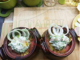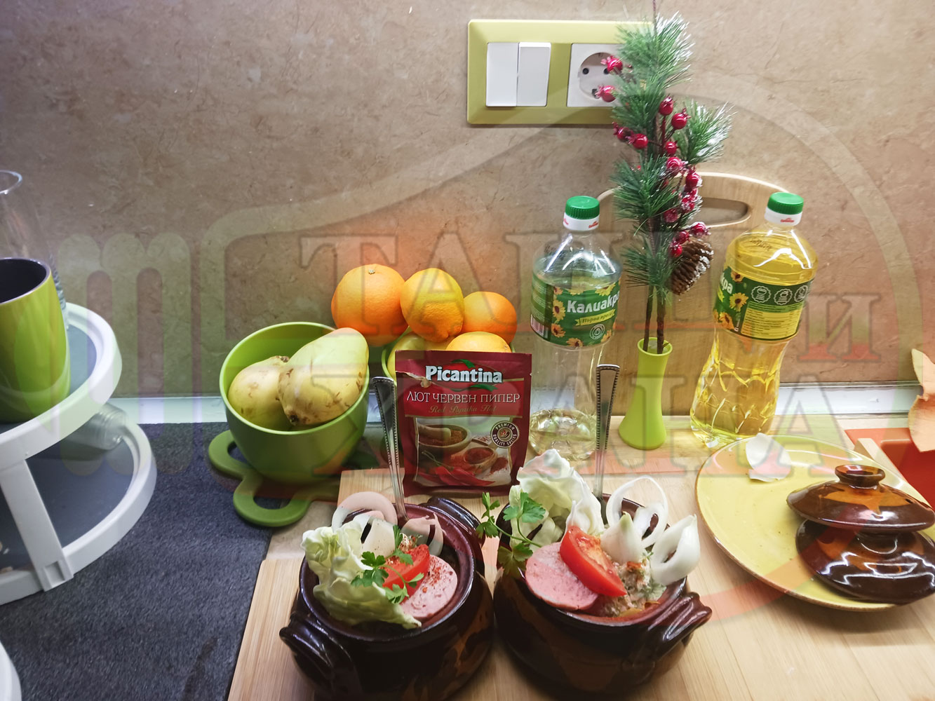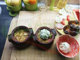 Спретнах невероятно вкусни български двукомпонентни гювечета с прясно зеле, българско краве бяло саламурено сирене, домати, кромид лук, чесън и любимият ни пикантен чеснов салам. Гювечетата са прекрасни готварски съдинки от изпечена глина, в които всяко ястие придобива неимоверен вкус, обогатен и съхранен от специфичността на изпичане на ястията. Добавих суров елемент към гювечетата от сиреново зелев крем приготвен със свеж магданоз и малка част от салама, внасящ хрупкава, ароматна и саламурена нотка от българското краве бяло сирене (саламурено). Отново се получи българско богатство с палитра от познати и обичани още от детските ни години вкусно, вкусна, вкусотии (вкуснотии). ![]()