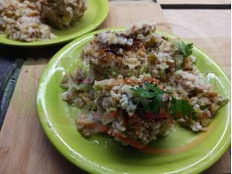 Оризовите кюфтета с кайма ги направих като вариант на манджата с кюфтета с ориз. В тази рецепта ориза е повече а каймата по-малко като количество. В добавка с празия лук се получи вкусно ястие.