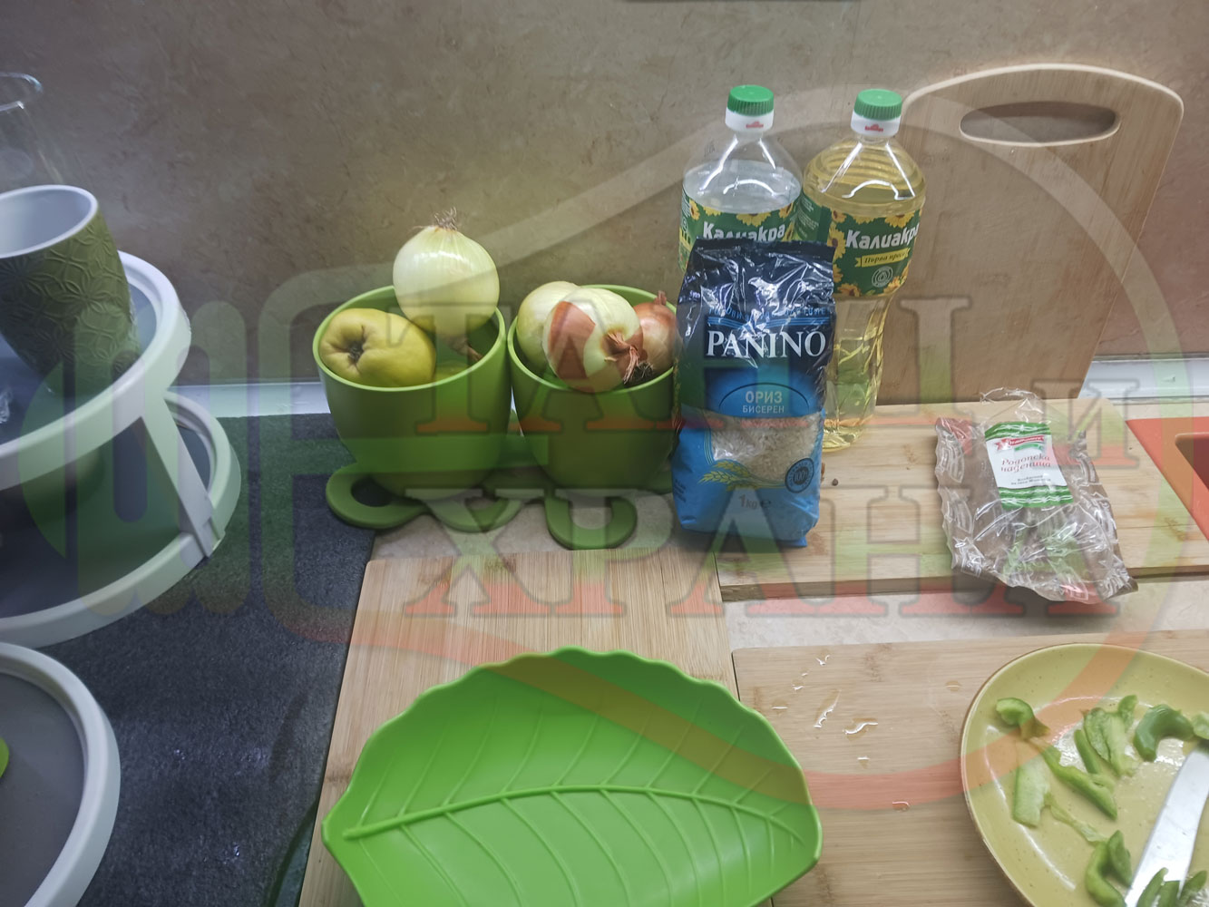 ПРОДУКТИ: Приблизителни количества за ориз "Наденицов шпикован с чушки" запечен на фурна с кромид лук, чесън и шпикована родопска наденица със зелени пресни чушки гарниран със свеж магданоз и кисело мляко от България