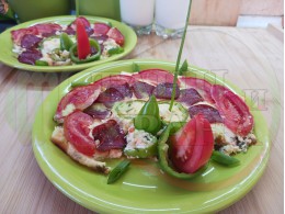 Омлет "Български омлет окото" приготвен на фурна с яйца, шунка, тиквички, краве бяло сирене, топено сирене, кромид лук и кисело мляко от България