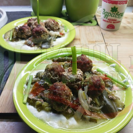 ЯСТИЯ С КАРТОФИ ЯСТИЯ С ОРИЗ РЕЦЕПТИ С КАЙМА Традиционни кюфтета, пълнени кебапчета, различни видове рула с кайма - смес. Разнообразие от вкусове. КЮФТЕТА С КАЙМА РУЛА С КАЙМА МУСАКИ С КАЙМА ТОРТИ С КАЙМА Покажи: 5 10 15 20 25 30 50 100 Всички Пълнено руло "Зелевокаймяно зеленочушково киселомлечно" приготвено от кайма с плънка от прясно зеле, зелени пресни чушки, свеж магданоз, стар чесън и домати запечено на фурна с яйчено млечна заливка с яйца и кисело мляко от България Мини топчета от свинска кайма "Пюрекаймяни картофеномагданозени киселомлечни" сварени на фурна с картофи, моркови и масло покрити с картофено пюре с магданоз и чесън, оваляни в суров сусам гарнирани с кисело мляко от България - двукомпонентни Каймяна торта "Зелевопрясна краставичнокопърова червеночушкова" приготвена с домашно овкусена кайма с краставици, прясно зеле, зелен лук и черен пипер запечена на фурна с копър и червени пресни чушки гарнирана с кисело мляко от България - производно Български къси макарони "Каймянопрободни майонезенокопърови киселомлечни" сварени на фурна с квадратни кюфтета от кайма, ронена чубрица и червен сладък пипер гарнирани с крем от майонеза, копър и чесън и кисело мляко от България - двукомпонентни Каймяна торта "Каймянодоматена кромидлучена БГмерудийна" приготвени от овкусена кайма с пресни домати, ронена чубрица, черен пипер, свежи копър и магданоз и кромид лук гарнирана със сурови краставици Мусака "Тиквичковокаймяна киселомлечна кашкавалена" приготвена на фурна с пресни тиквички, кромид лук и кайма от свинско с телешко, запечена с яйчено млечна ултратънка заливка с яйца, чесън, свеж магданоз, кашкавал и кисело мляко от България Многопластова хлебна баница "Каймянодоматена киселомлечна червеночушковоморковена" запечена на фурна с кайма, домати, червени пресни чушки и моркови с яйчено млечна заливка приготвена със свеж копър, стар чесън и кисело мляко от България Руло "Каймянокартофено червеночушководоматено" приготвено от домашно овкусена кайма с домати, черен пипер и свеж магданоз, запечено на фурна с плънка от картофи и червени пресни чушки с яйчено чеснова заливка от яйца и стар чесън Гювечета с кюфтенца "Каймянотопчести червеночушководоматени картофенолучени" запечени на фурна с картофи, кромид лук, масло и мини кюфтета от домашно овкусена кайма с червени пресни чушки, домати, черен пипер и свеж магданоз Картофена яхния с кюфтета "Кюфтечервеночушкова картофена БГмерудийна" приготвени от домашно овкусена кайма с ронена чубрица, кромид лук, черен пипер и свеж магданоз запечени на фурна с червени пресни чушки и картофи Бухтена пита "Каймянокебапчена лютенична кромидлучена" омесена с едросмляна лютеница и прясно мляко запечена на фурна с кромид лук и кебапчета от неовкусена кайма сурово гарнирана с краве бяло сирене (българско, саламурено) и пресни домати Български спагети "Каймянопрободни топчести зеленочушковолучени прясномлечни с БГсирене" сварени на фурна със зелени пресни чушки, кромид лук, прясно мляко и с топчета от кайма промушени със спагети сурово гарнирани с българско краве бяло сирене Български кладенчета на фурна "Кюфтетиквичкови лютеничноспаначени БГмерудийни" приготвени от домашно овкусена кайма с ронена чубрица, кромид лук, черен пипер и тиквички напълнени с плънка от лютеница и спанак гарнирани с кисело м