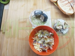 Спретнах производно ястие с маринована херинга в марината със сух копър от предварително сготвеното пиле със зеле "Пряснозелево пилешкобутчено доматеночервеночушково" (снимките от сваряването на зелето са към рецептата за пилето със зеле). Изядохме пилешките бутчета и остана голямо количество от свареното и запечено зеле и така ми хрумна да приготвя кашкавалено рибен крем с млечен кашкавал и рибно филе от маринована херинга. Отново спретнах невероятна вкусно, вкусна, вкусотия (вкуснотия). laughing Сладостта на зелето идеално хармонира с леката соленост на маринованата херинга и се допълва с млечния протеин от кашкавала.