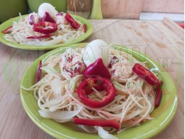 В "Свързани продукти" вижте рецептите на други видове спагети, макаронени и тестени изделия с яйца, българско краве бяло сирене, зелени и червени пресни чушки и техни"ТЕ" производни.