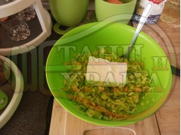 В случай, че сместта, която сте приготвили е леко течна, може да добавите филия хляб за постигане на желаната гъстота. Филията се надробява и хубаво се намачква до пълното и хомогенизиране със сместта. Прави се както при кюфтета от кайма, в които слагате хляб с тази разлика, че тук хлябът не трябва да се мокри.