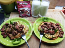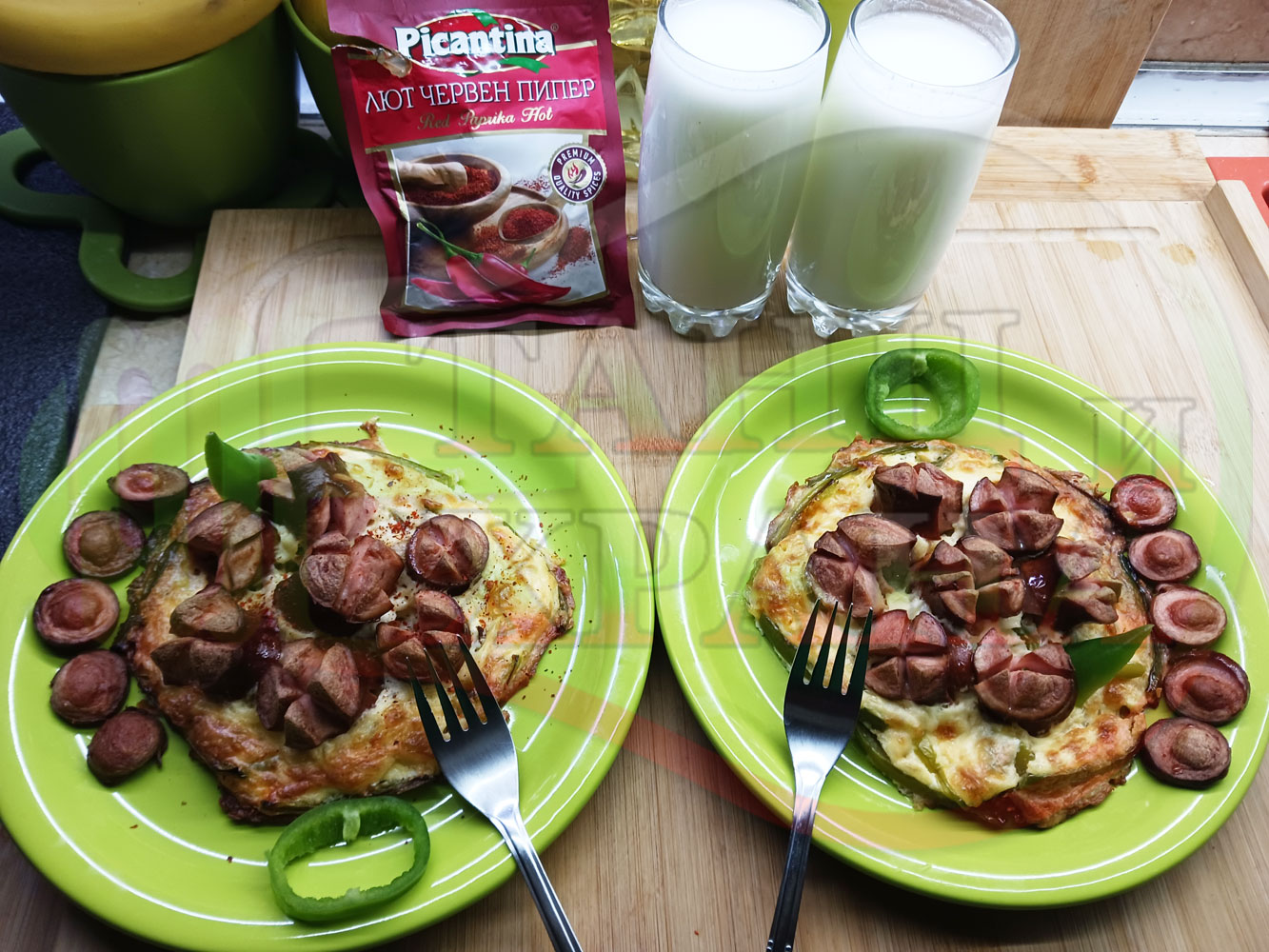 Спретнах изключително вкусни големи сиренови кюфтета, които се приготвят сравнително бързо. В кухнята се носи аромат на запечени зелени пресни чушки и кренвирши, идеално хармониращи и допълващи се с българското краве бяло саламурено сирене и млечния кашкавал. Отново се получи невероятна вкусно, вкусна, вкусотия (вкуснотия) с пикантна лютива и чеснова нотка. ![]()