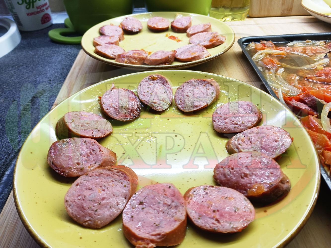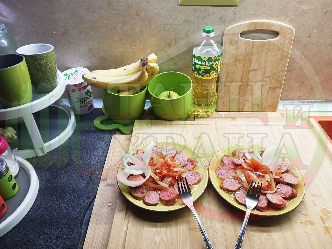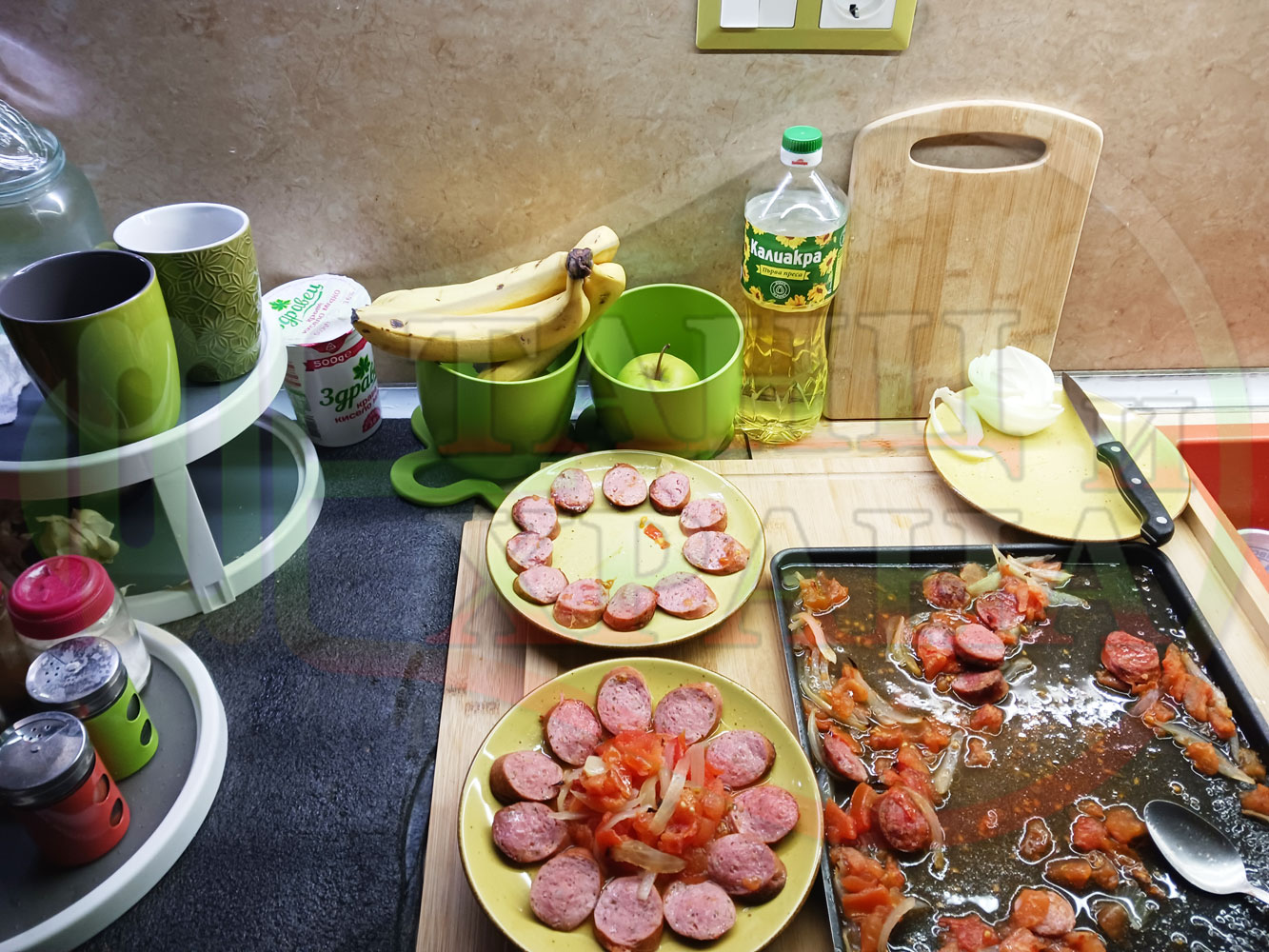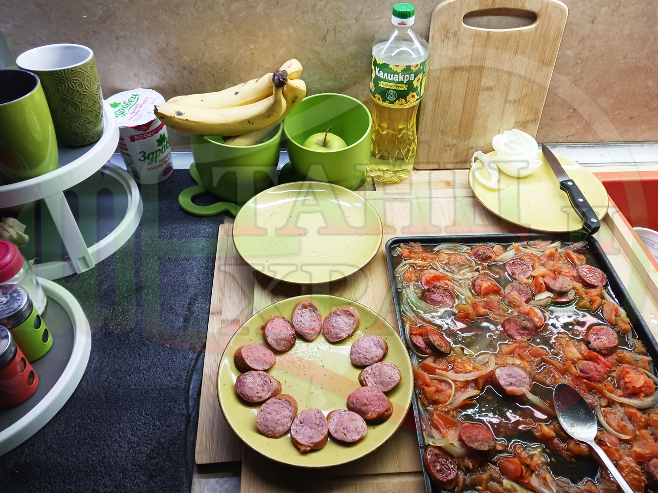 Спретнах изключително вкусна българска доматена колбасова едрососова яхния, приготвена с вкусната родопска наденица с мерудии, кромид лук, слънчогледово олио и пресни домати (само с 3 основни продукти). Ммммм... в кухнята се носи аромат на запечена, цвърчаща наденица, овкусена от соковете на доматите и сладостта на леко запечения кромид лук и отново се получи невероятна вкусно, вкусна, вкусотия (вкуснотия), подходяща за вечеря, обяд и дори като следобедно ястие. ![]()