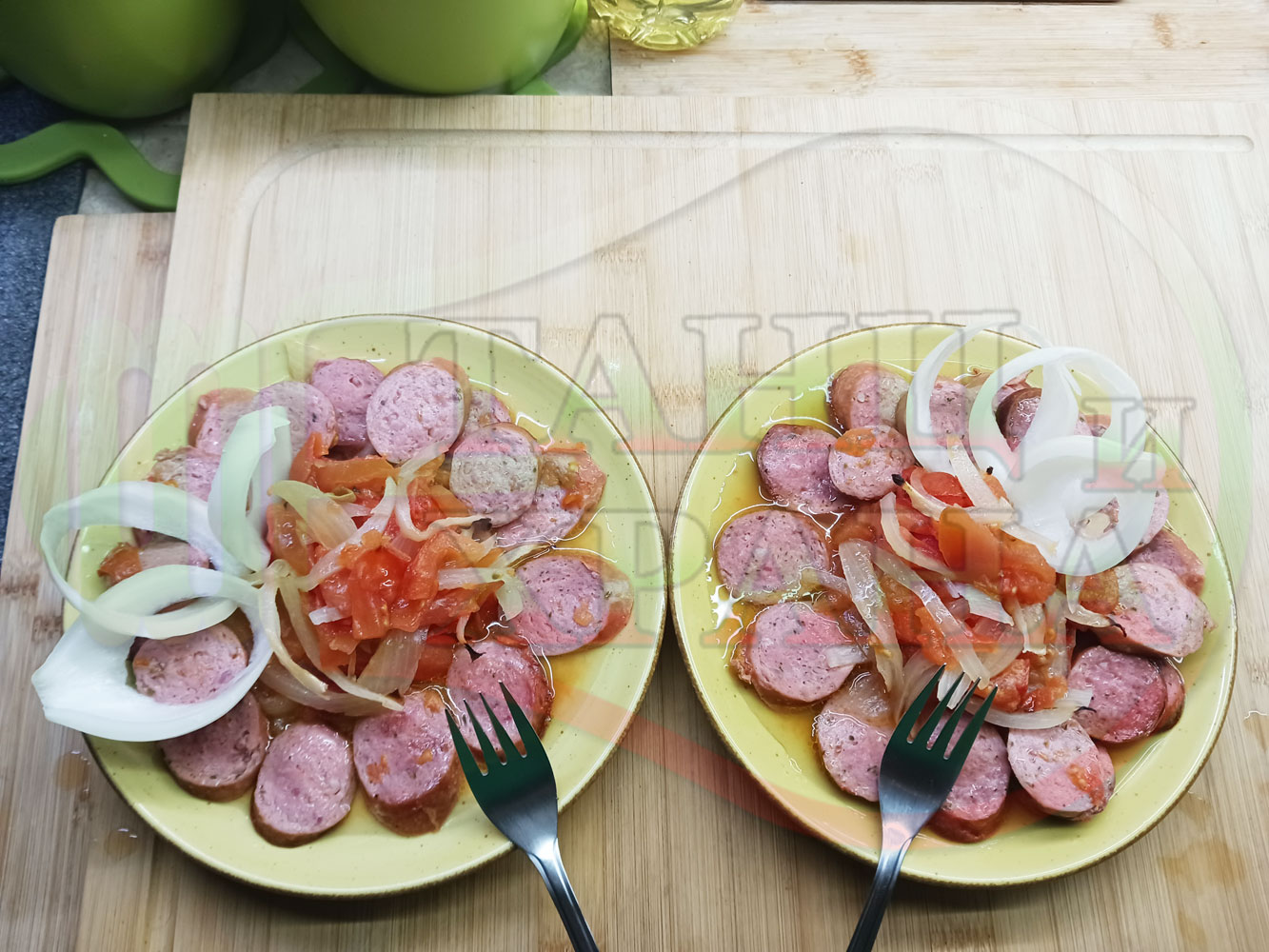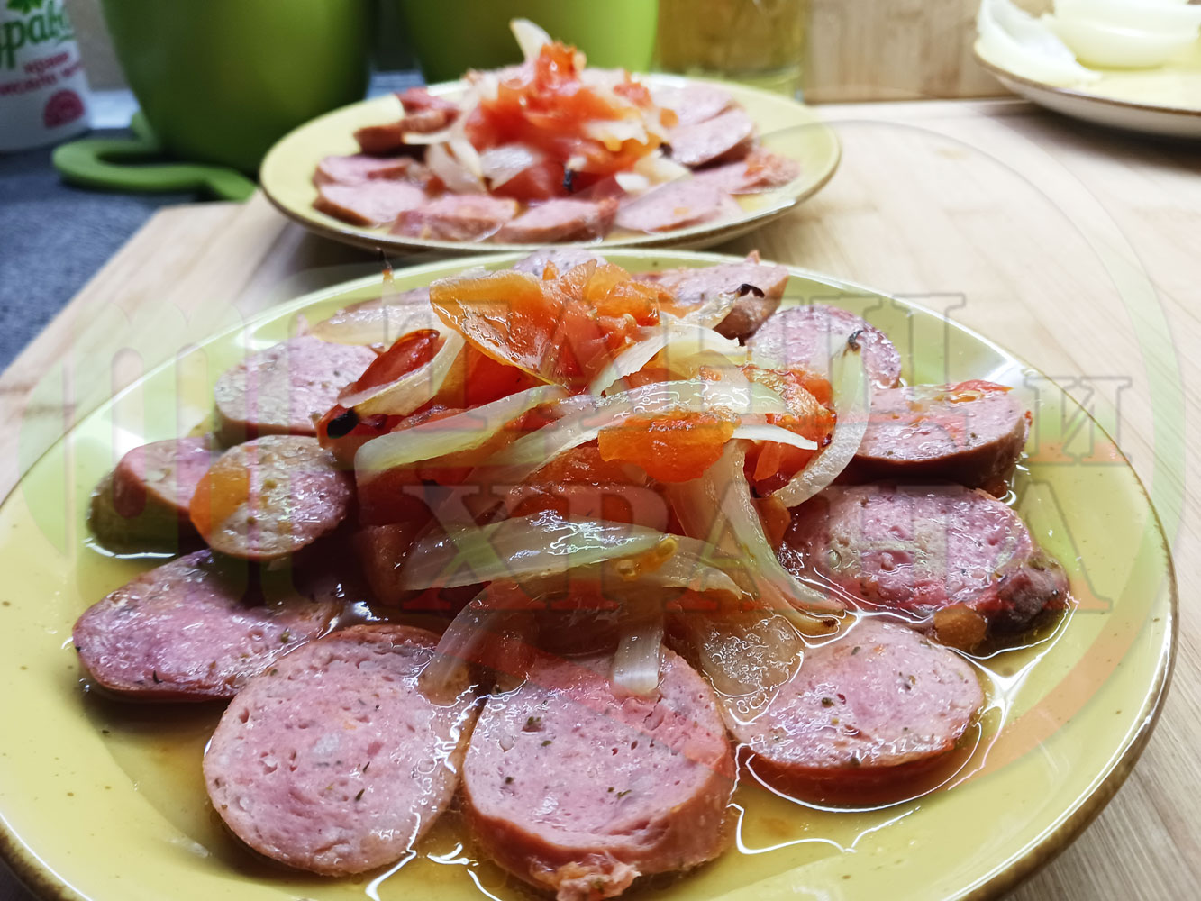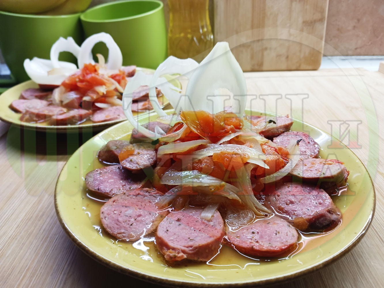 В "Свързани продукти" вижте рецептите на други видове доматени яхнии с колбаси, двукомпонентни супи, яхнии и техни"ТЕ" производни.