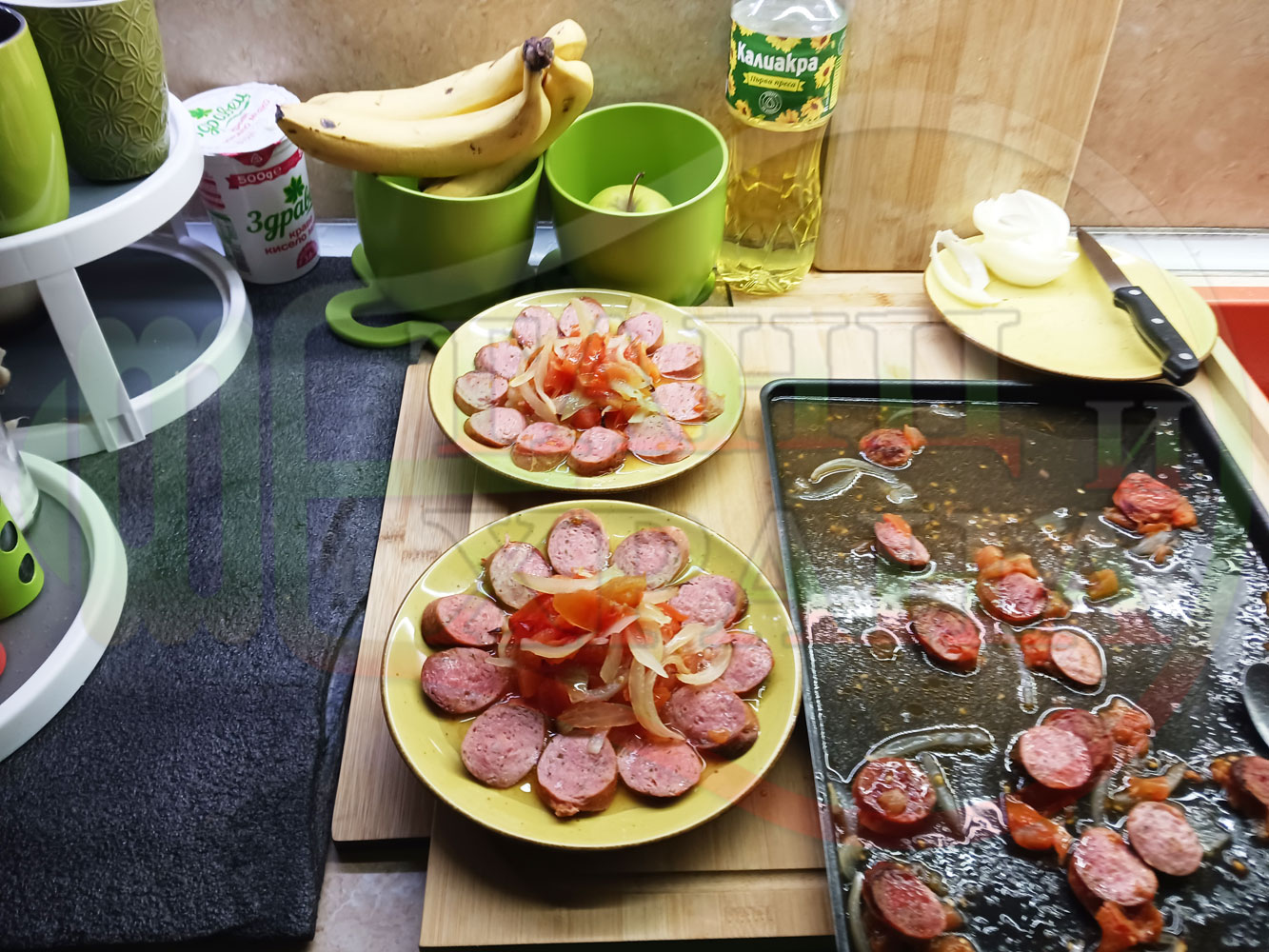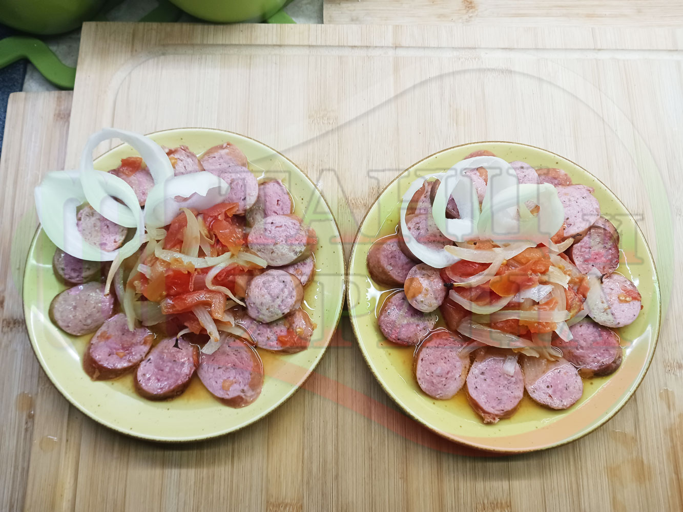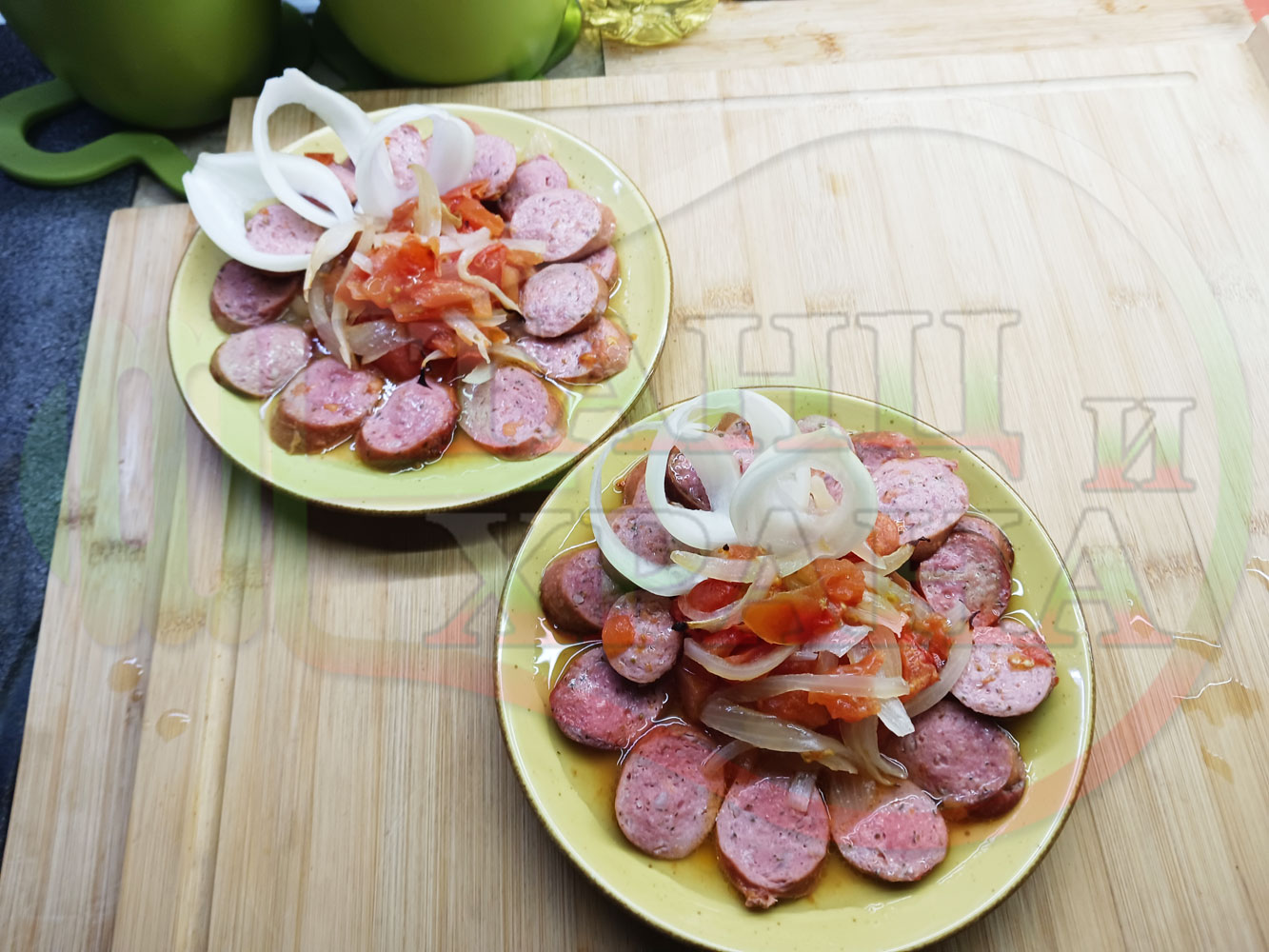 В "Свързани продукти" вижте рецептите на други видове доматени яхнии с колбаси, двукомпонентни супи, яхнии и техни"ТЕ" производни.