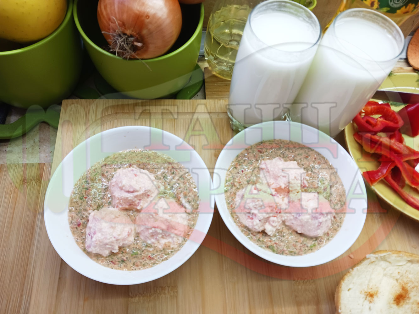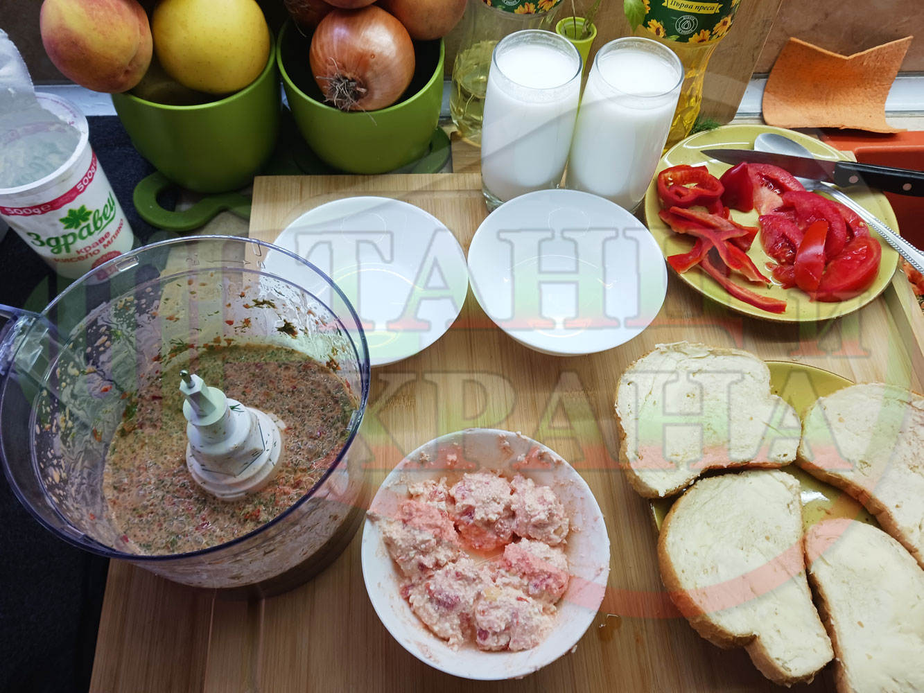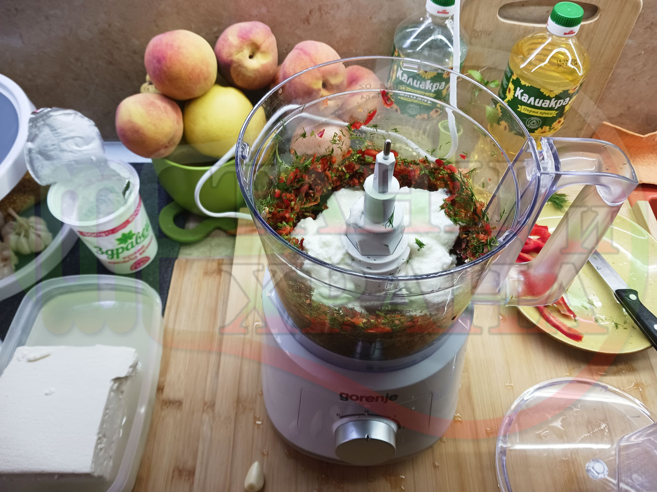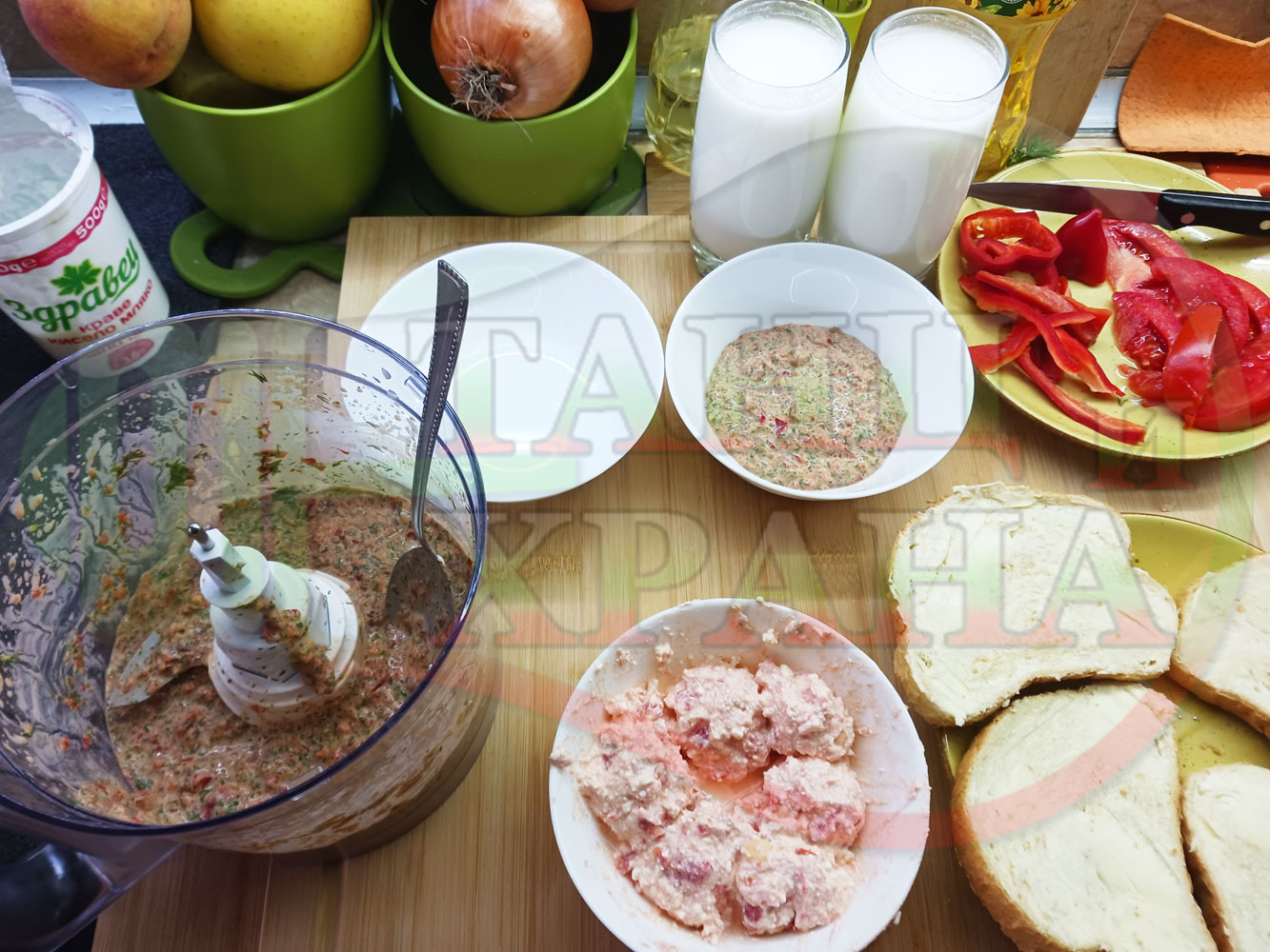 Българската червеночушкова сурова, млечна супа, която сътворих се оказа доста вкусна и се спретва буквално за "нула" време с чопър. Гарнирах супата с топчета от сиреново доматен крем приготвени с българско краве бяло саламурено сирене, стар чесън и пресни домати и се получи най-вкусната сурова супа, която сме хапвали (поредната най-вкусна сурова супа (всичките сурови супи са вкусни по свой си начин според продуктите, които са включени в тях)). Двукомпонентността на супите (в голямата си част са авторски с иновативен метод на представяне и комбиниране на продуктите (прилагам метода на двукомпонентността в почти всички видове ястия, които приготвям)), позволява да се комбинират различни сурови и/или запечени продукти, с което осъвременявам и обогатявам традиционни български вкусове за приготвянето на супи, ястия, печива и различни гозби. Сиреновите топчета овкусяват супата с неповторимия вкус, който носят в идеална хармония с червеночушковокопъровата супа с кисело мляко от България и за пореден път се получи голяма вкусно, вкусна, вкусотия (вкуснотия), която е изключително полезна, обединяваща млечните протеини, минерали и микроелементи с богатството от полезни съставки на чушките, чесъна и свежия копър.