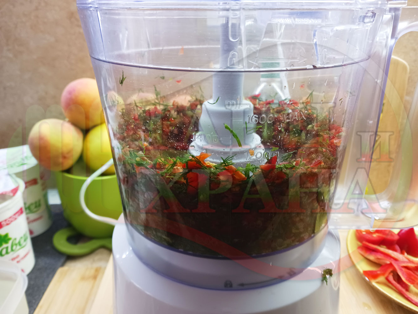 Измийте чушките, почистете ги от семките чрез т.нар. "изтърбушване", нарежете ги на едро и ги сипете в чопър заедно с измития и нарязан на едро копър (нарежете част от чушките на "обръчи" и ивички и заделете връхчетата и стръкчета от копъра за украса). Разбийте с чопъра продуктите за да се овкусят взаимно, сипете киселото мляко и отново разбийте с чопъра до образуване на средно гъста червеночушковокопърова, хомогенизирана смес с българско кисело мляко (червеночушковокопърова супа).