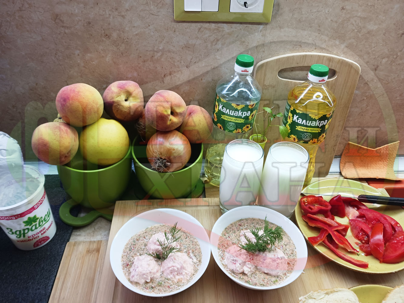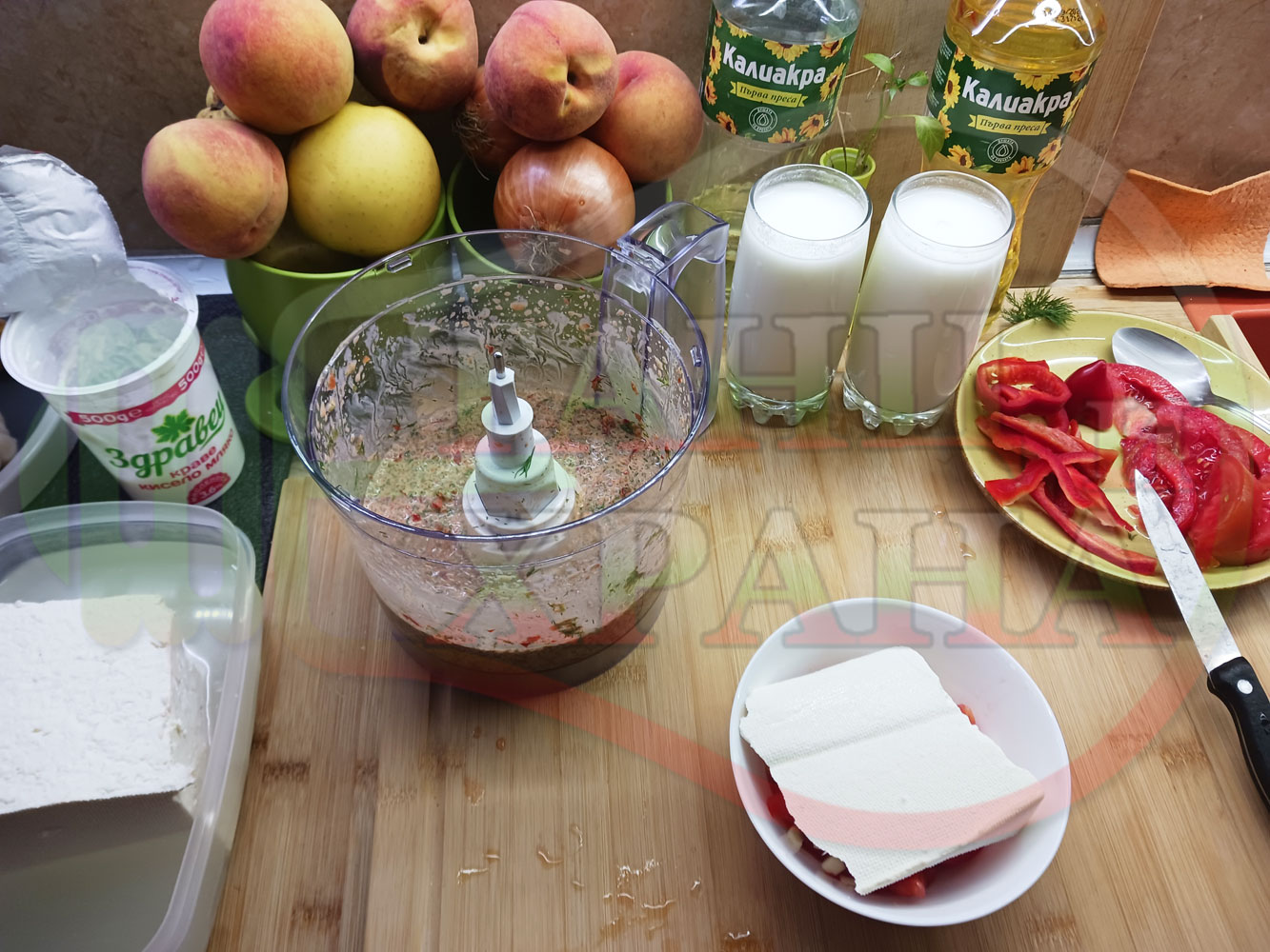 ПРОДУКТИ: Приблизителни количества за българска сурова супа "Червеночушковокопърова киселомлечна с БГсирене" приготвена от червени пресни чушки, копър и кисело мляко от България гарнирана с топчета от сиреново доматен крем с домати, чесън и краве бяло сирене - двукомпонентна