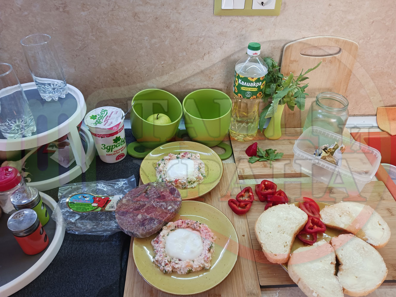 ПРОДУКТИ: Приблизителни количества за българска млечна сурова салата "Саздърмоводоматена с БГсирене" приготвена с домати, свеж магданоз, чесън, червени пресни чушки и краве бяло сирене оформена като кладенче напълнено с кисело мляко от България гарнирана със саздърма