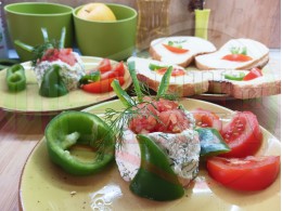 Изключително вкусна и полезна българска, сурова, млечна, спаначено яйчена салата приготвена със свеж спанак, червени пресни чушки и варени яйца. Оформих вариращия компонент от салатата като кладенче, което напълних с кисело мляко от България и гарнирах с по 1 цяло варено яйце. Комбинацията от свежест, протеини, сладост от чушката и леката възкисела нотка от българското мляко е ненадмината... Мммм... голяма, полезна вкусно, вкусна, вкусотия (вкуснотия). ![]()