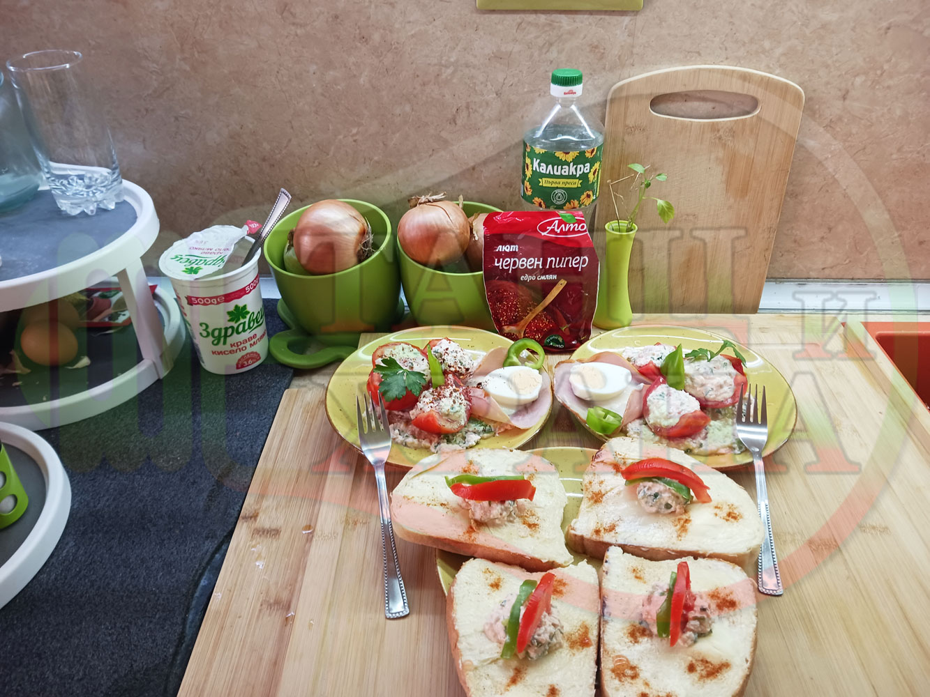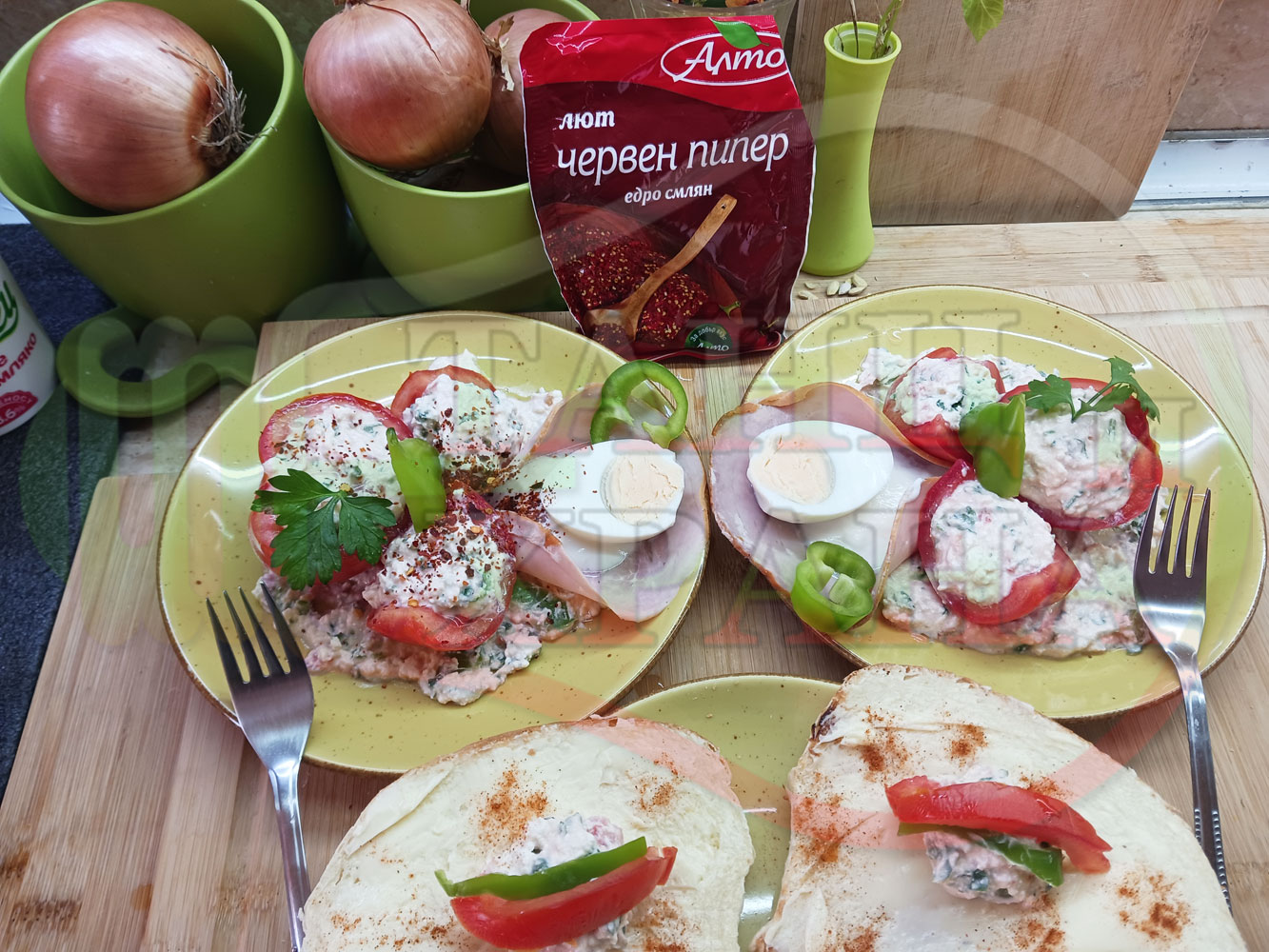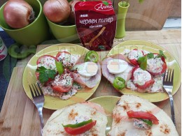 1. Червен пипер - поръсва се на вкус (сладък и/или лют)