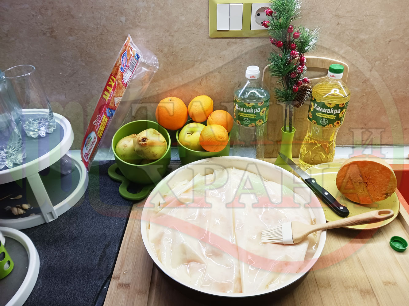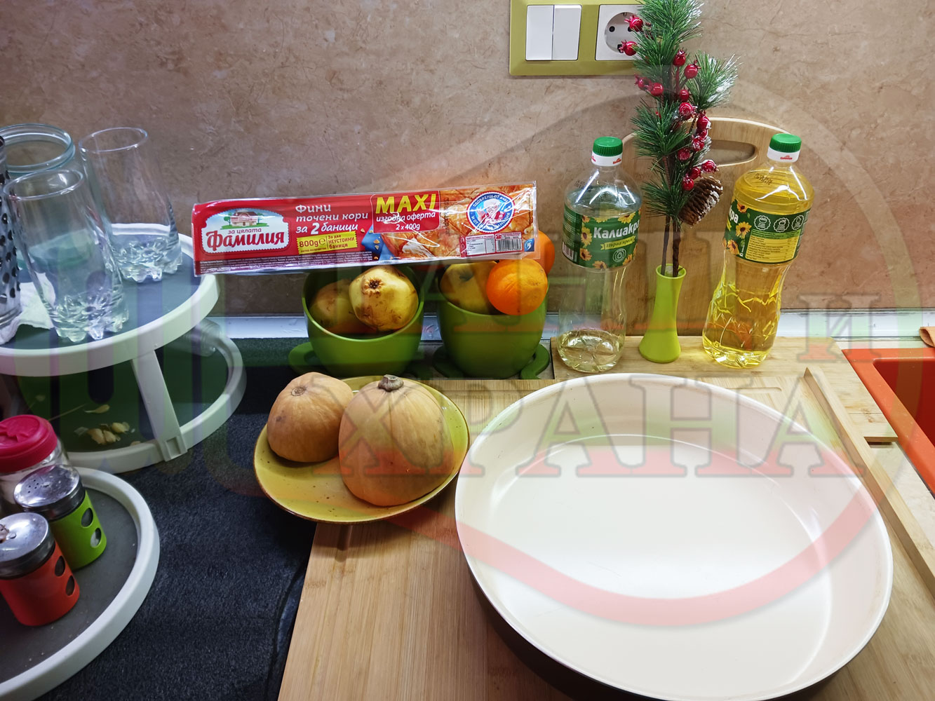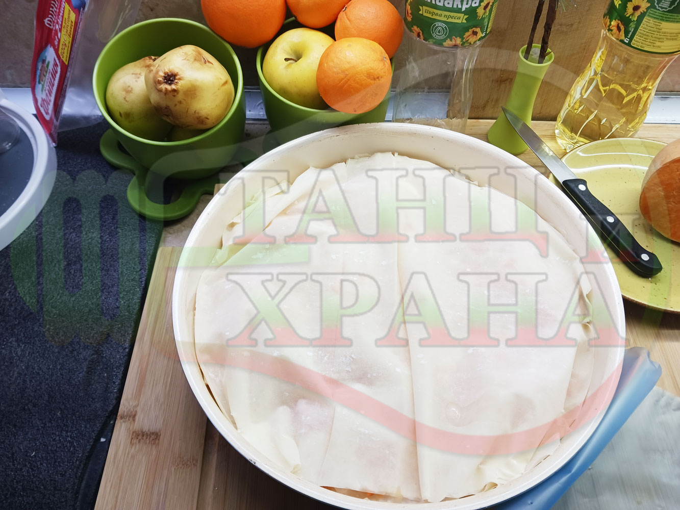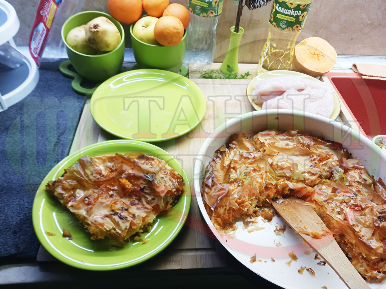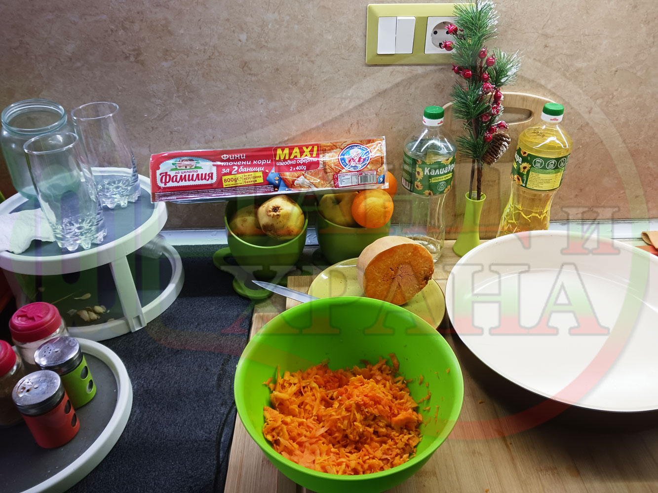 ПРОДУКТИ: Приблизителни количества за сладка баница за Бъдни вечер и Коледа 2025 г. "Тиквеноморковена" приготвена от готови кори запечена на фурна с плънка от прясна тиква, моркови, кристална захар и слънчогледово олио подходяща за постещи хора