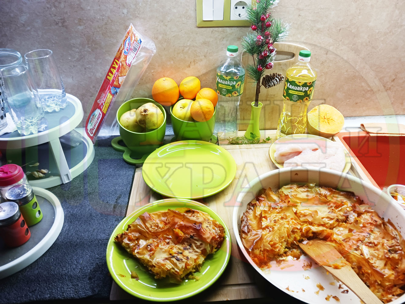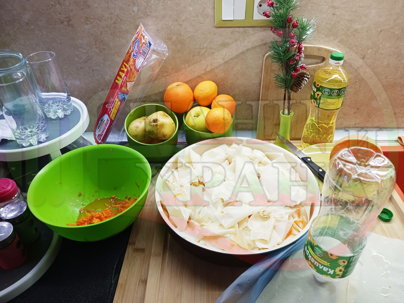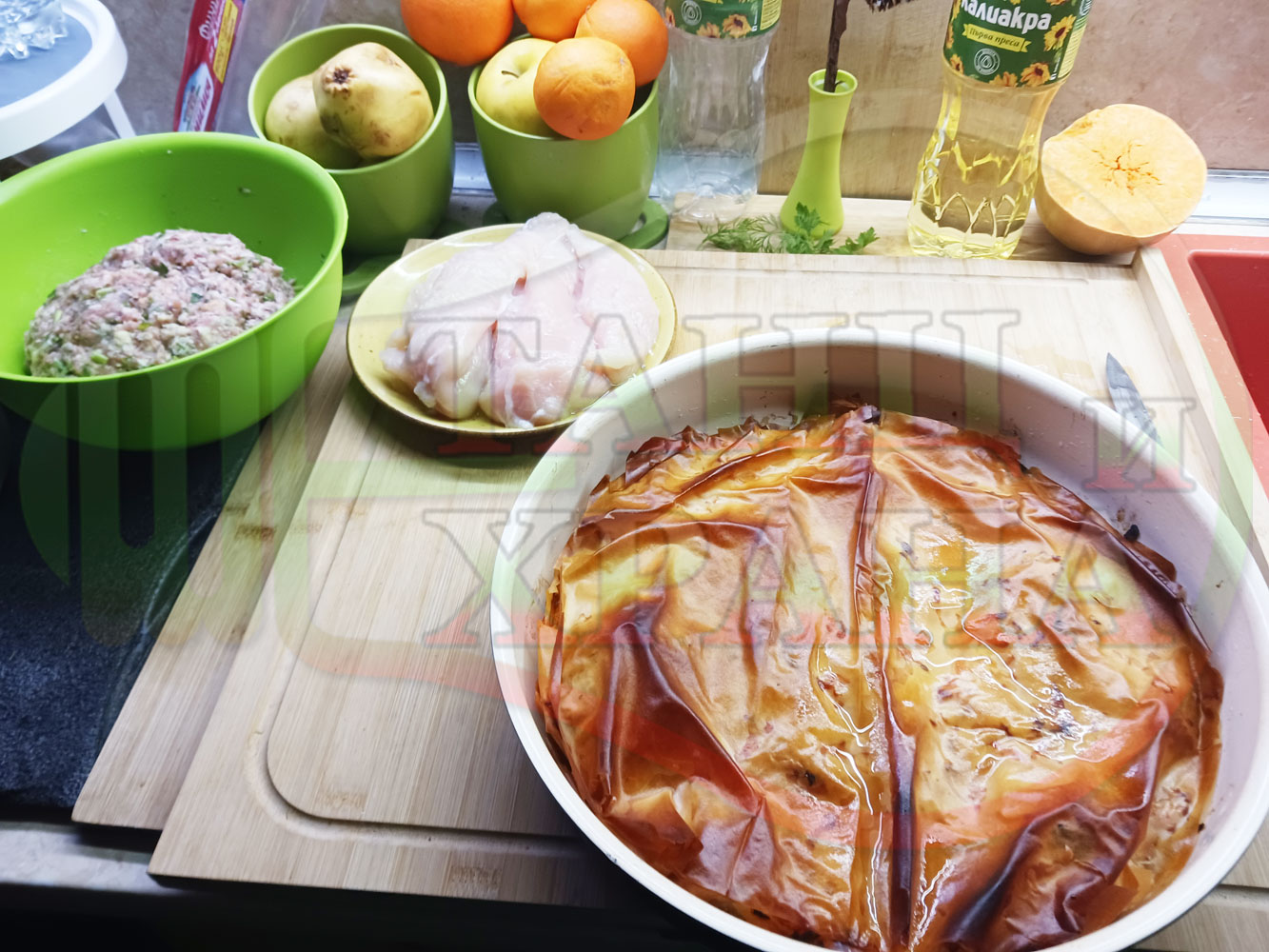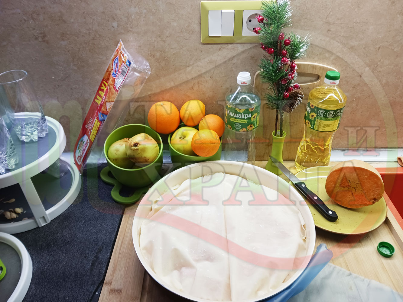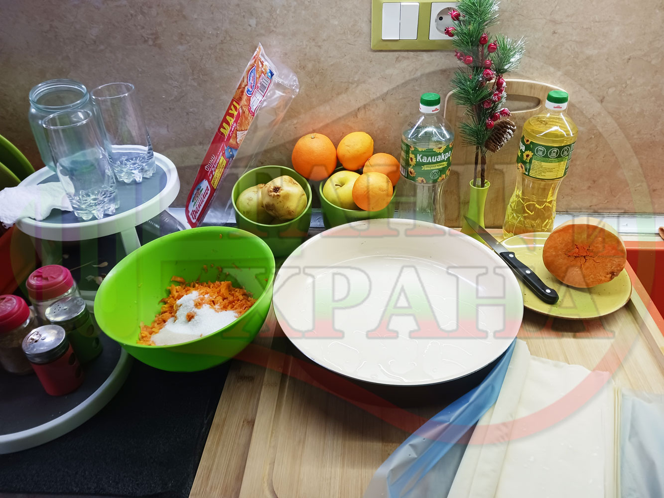 ПРОДУКТИ: Приблизителни количества за сладка баница за Бъдни вечер и Коледа 2025 г. "Тиквеноморковена" приготвена от готови кори запечена на фурна с плънка от прясна тиква, моркови, кристална захар и слънчогледово олио подходяща за постещи хора