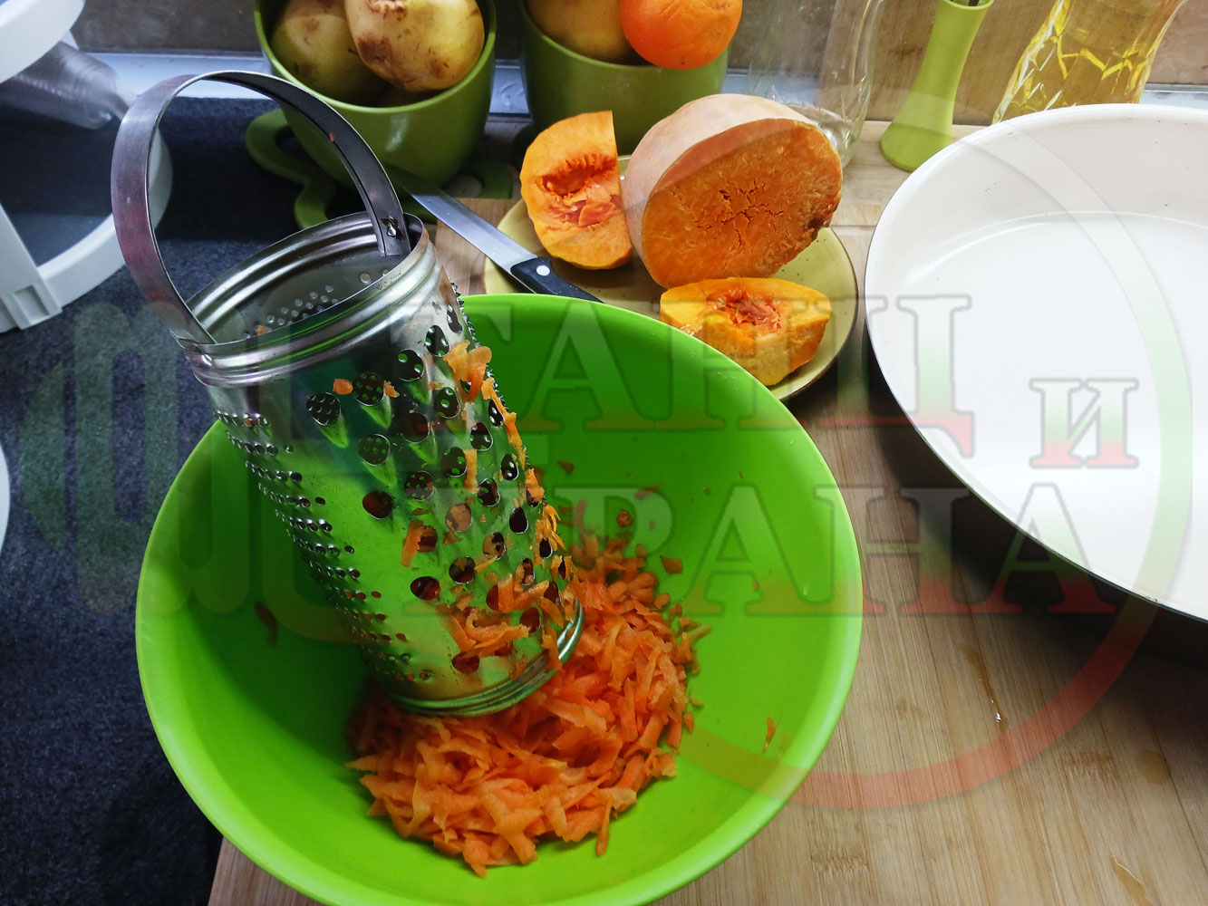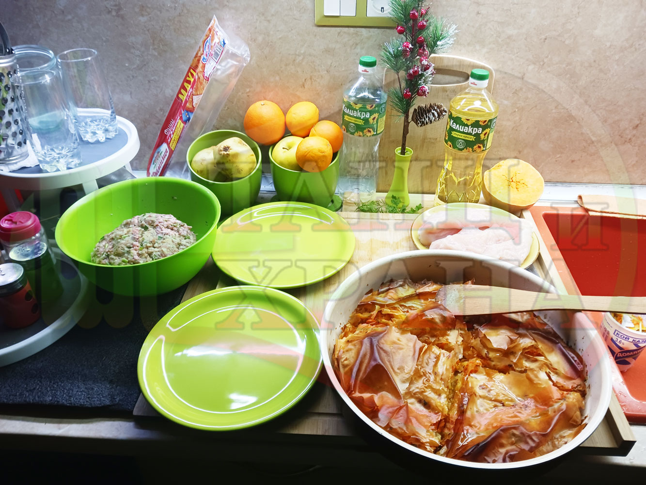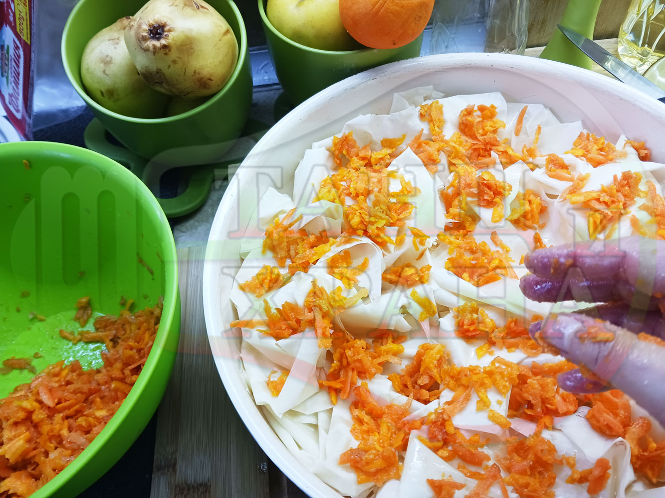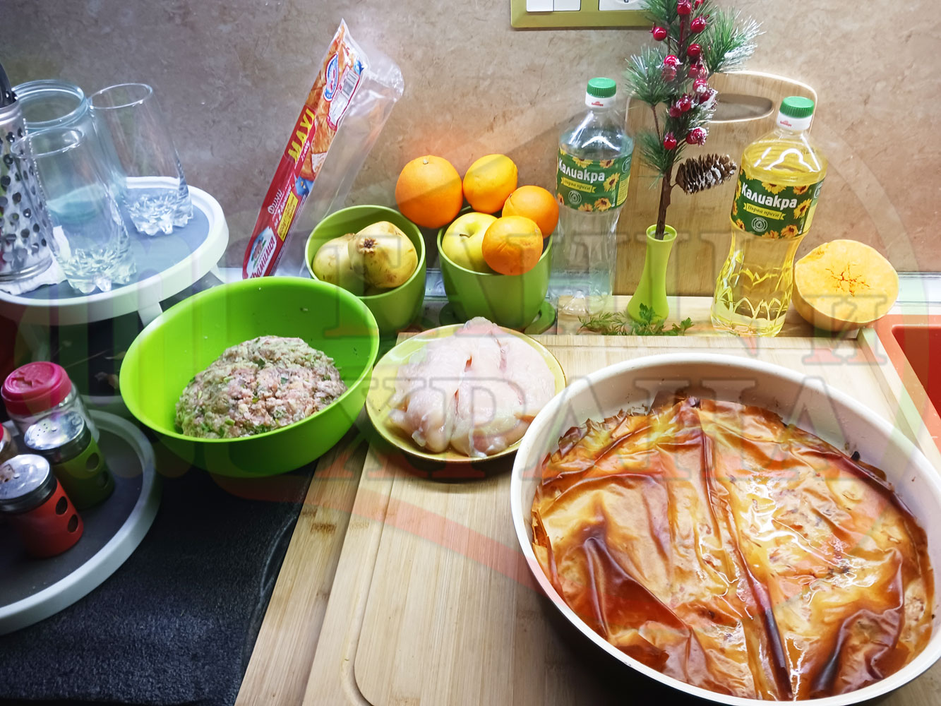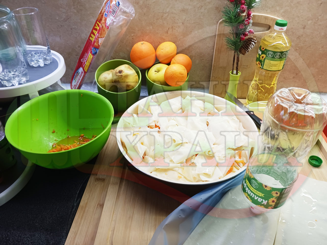 ПРОДУКТИ: Приблизителни количества за сладка баница за Бъдни вечер и Коледа 2025 г. "Тиквеноморковена" приготвена от готови кори запечена на фурна с плънка от прясна тиква, моркови, кристална захар и слънчогледово олио подходяща за постещи хора