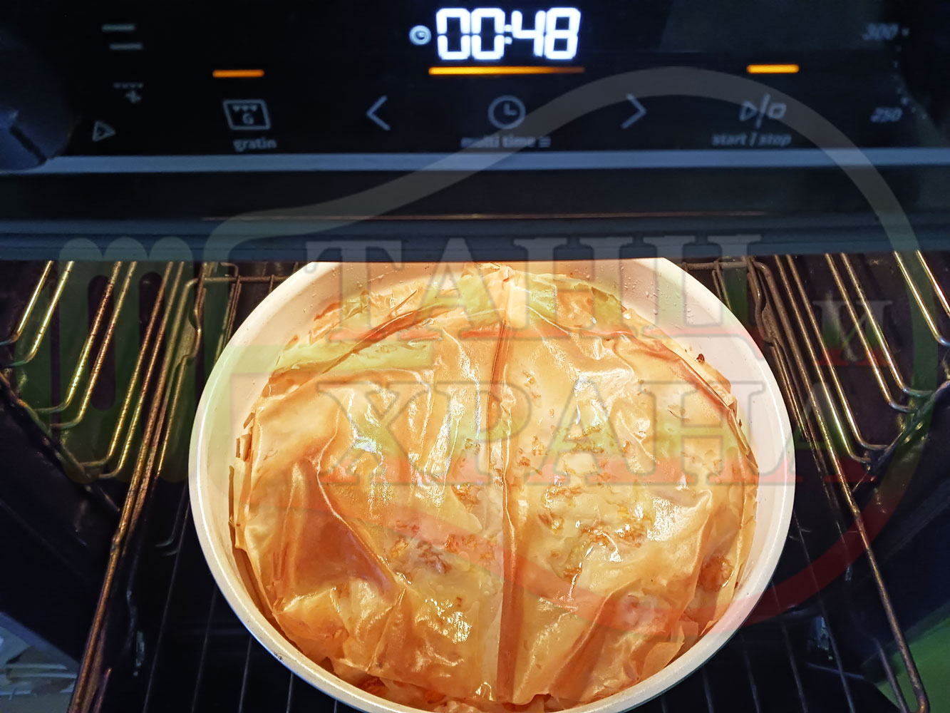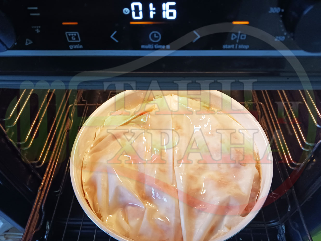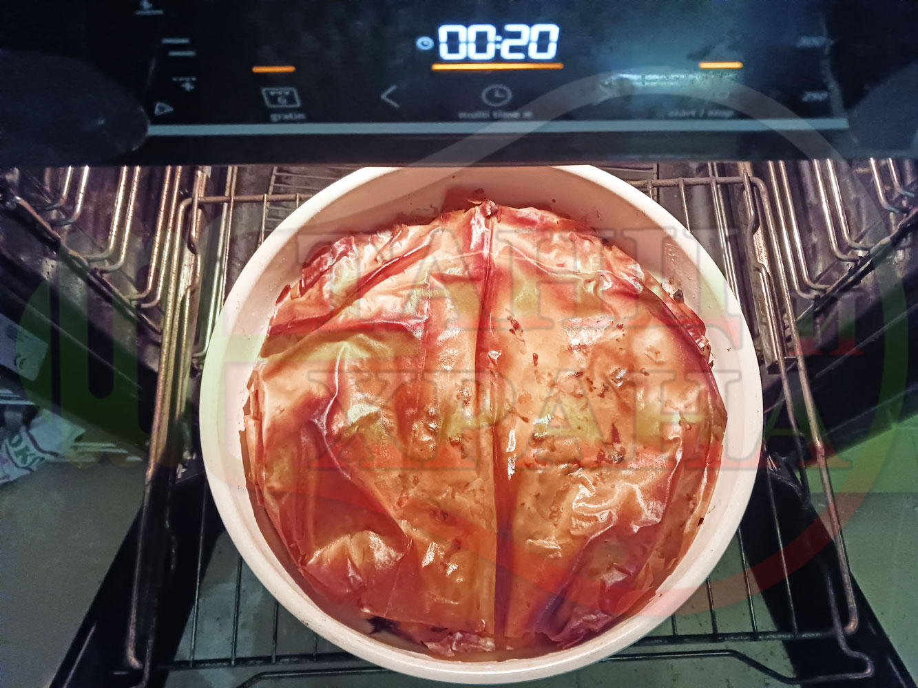 ВНИМАНИЕ: Фурните са различни и съответно времето за запичане е ориентировъчно. Наблюдавайте процеса на запичане и при необходимост, покрийте с хартия или фолио за печене. За по-равномерно изпичане е желателно да покриете баницата след 15-та минута.