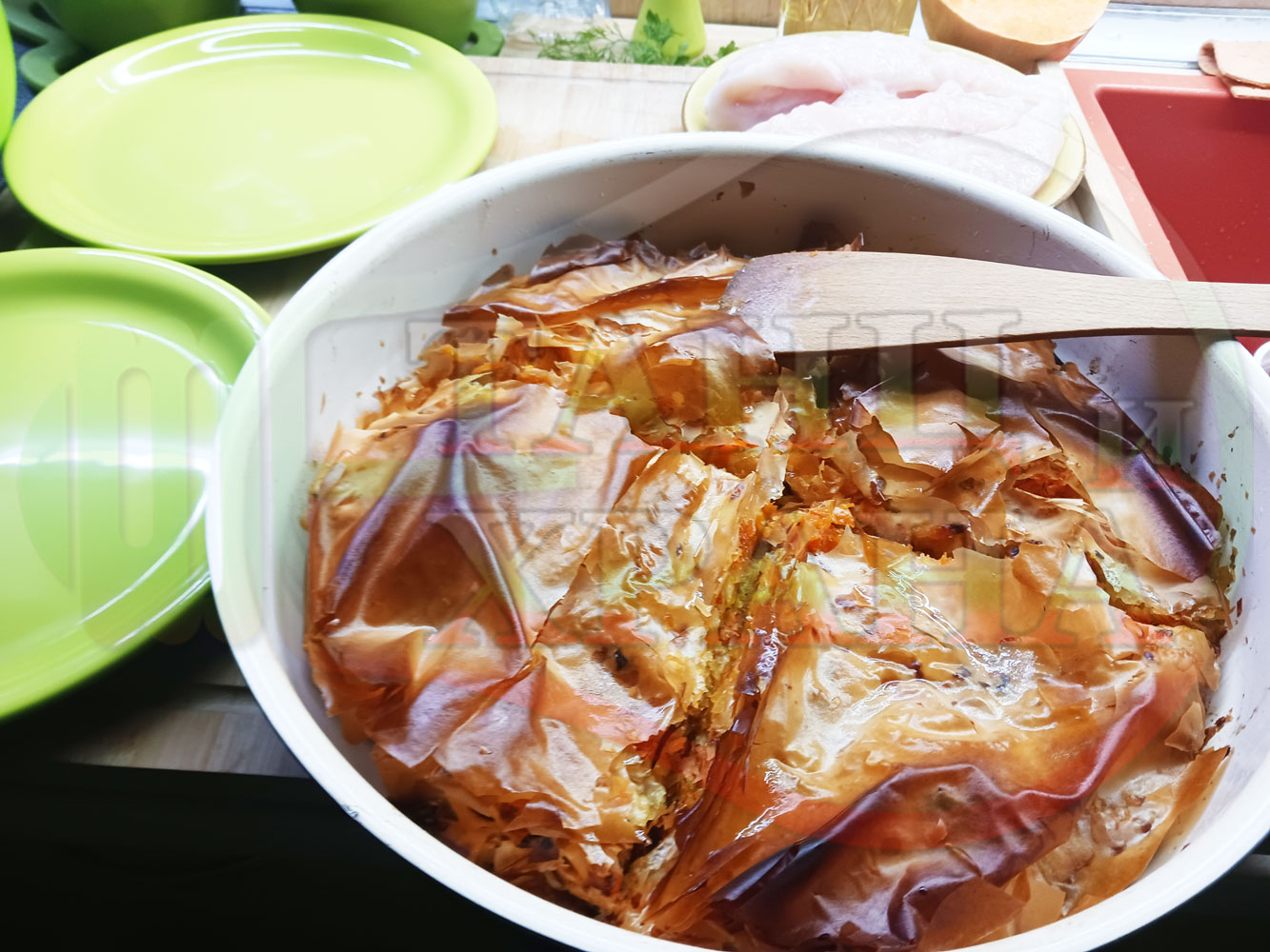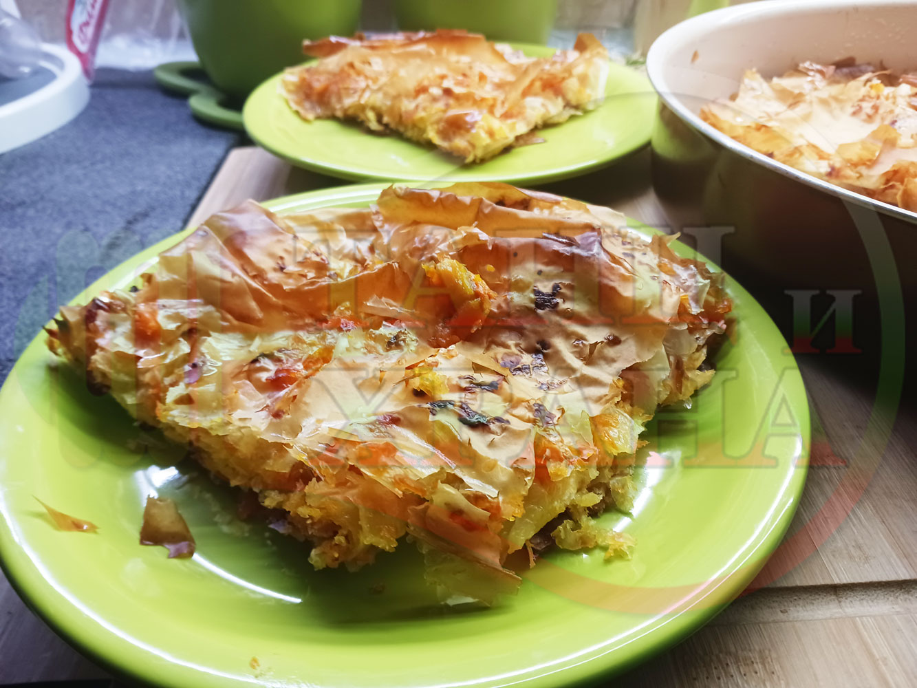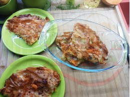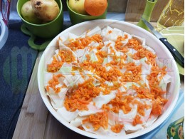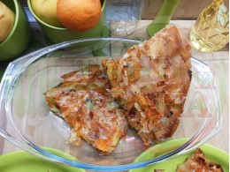 Сладка баница за Бъдни вечер и Коледа 2025 г. "Тиквеноморковена" приготвена от готови кори запечена на фурна с плънка от прясна тиква, моркови, кристална захар и слънчогледово олио подходяща за постещи хора