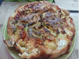 Солена торта "Колбасованадо" запечена на фурна с плънка от родопска наденица, пресни домати и краве бяло сирене омесена с яйца и краве кисело мляко от България