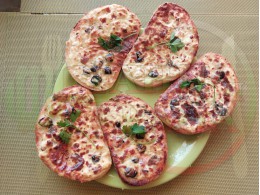 С повече масло филиите стават по-вкусни, сочни и ароматни. Преценявайте гъстотата на яйчено сиреновата плънка за да не станат филийките прекалено сухи и доста солени (зависи от големината на яйцата, солеността на българското краве бяло сирене и черните маслини).